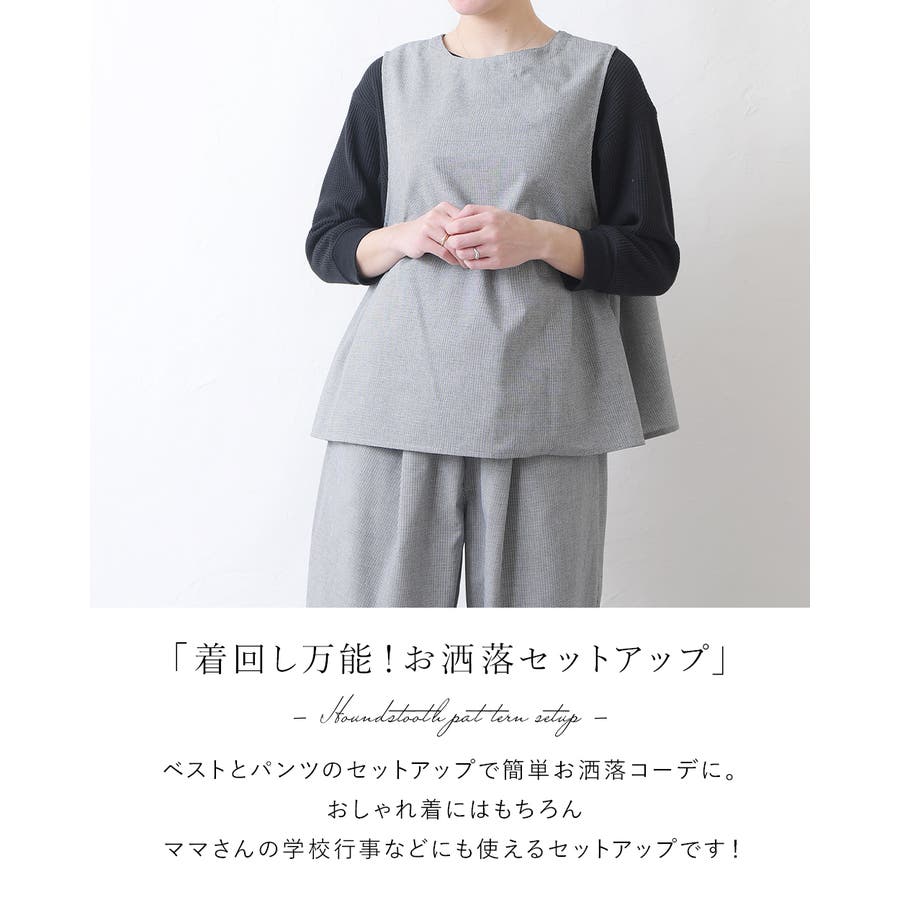 2024春新作 千鳥柄 セットアップ ベスト パンツ 2点セット 上下セット 2way ギャザー グレンチェック セレモニー フォーマル 入学式 卒業式 入園式 卒園式 オフィス 通勤 OL 謝恩会 カジュアル ゆったり ナチュラル 春 パンツスーツ 韓国ファッション