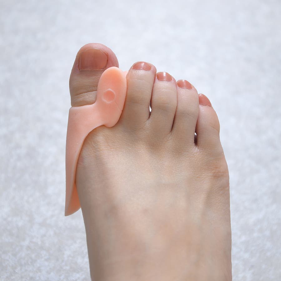 親指の付け根に差し込むだけで、親指と人差し指の足指間をやさしく開き、靴と擦れやすい部分を保護します。