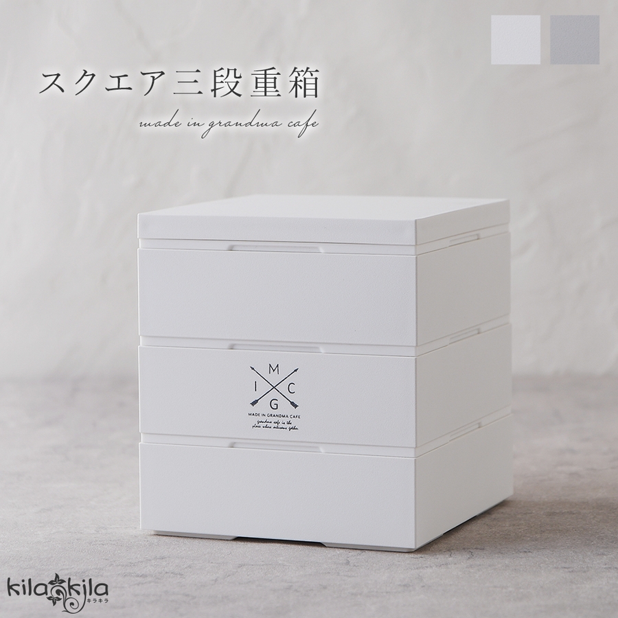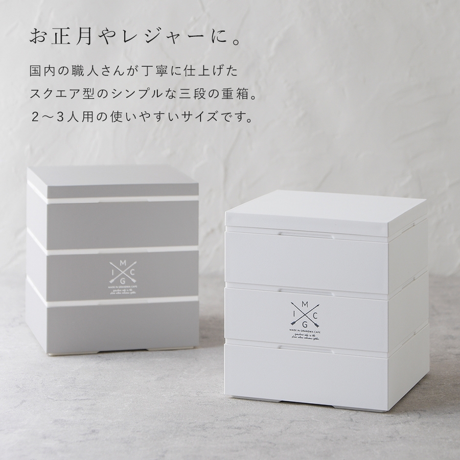 重箱 3段 スクエア シール中蓋付き お重箱 日本製 国産 運動会 お正月 お花見 行楽 ひな祭り お花見 子供の日 ピクニック レジャー弁当箱 おしゃれ スタイリッシュ ホワイト 白 グレー