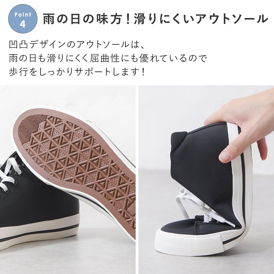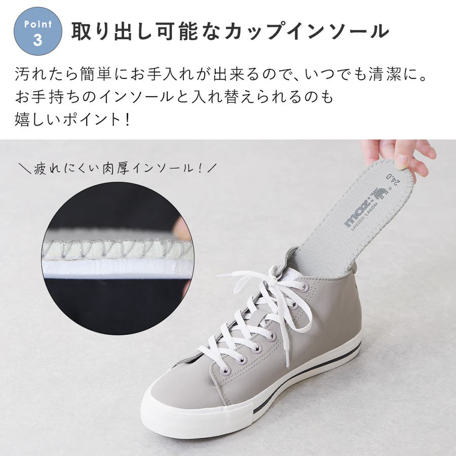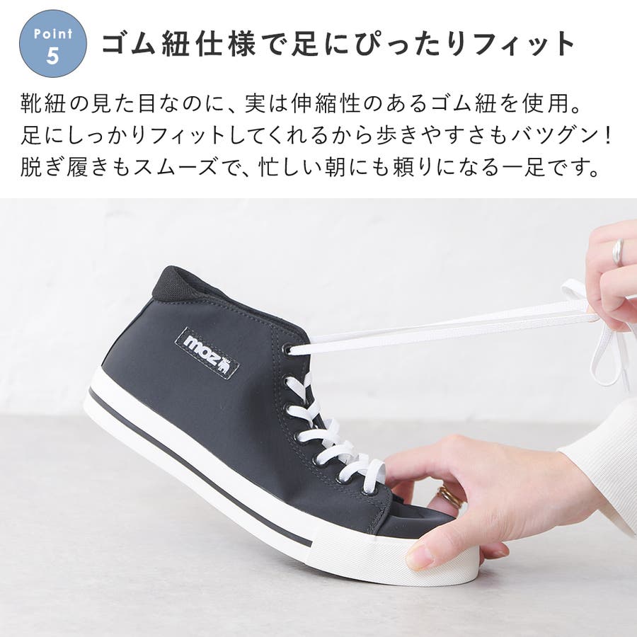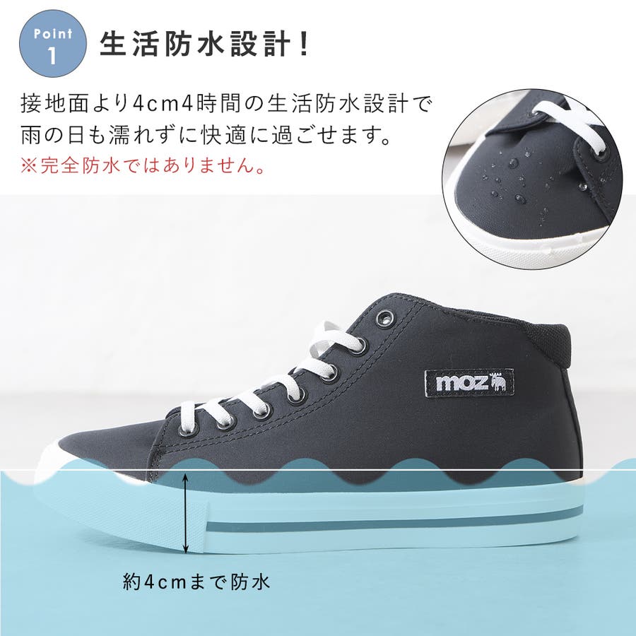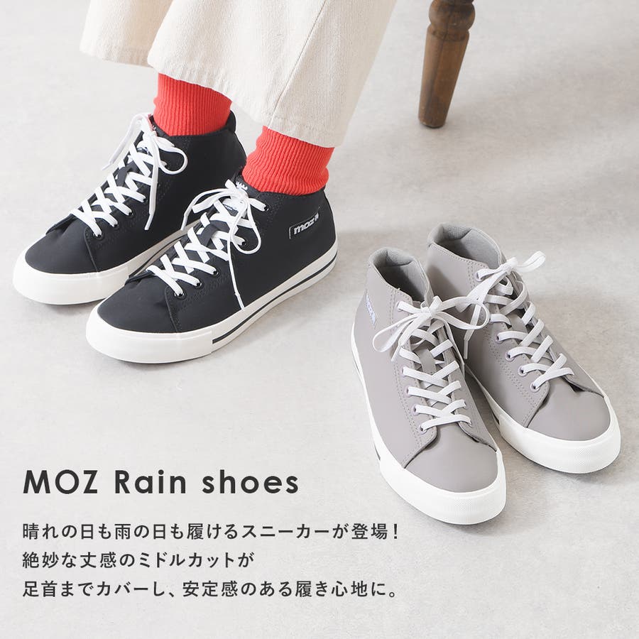 レインスニーカー レインシューズ レディース スニーカー ハイカット ローヒール ぺたんこ 痛くない 柔らかい 長時間 疲れない 歩きやすい 走れる おしゃれ きれいめ かわいい 靴 軽量 レイン 防水 雨靴 雨 雨の日 台風 梅雨 黒 ブラック 通勤 仕事用 立ち仕事 MOZ モズ 濡れない
