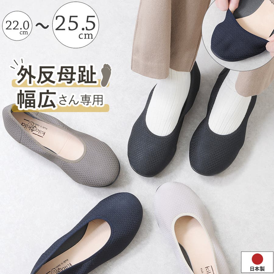 パンプス フラットシューズ ローヒール ぺたんこ フラット ラウンドトゥ 痛くない 柔らかい 長時間 疲れない 歩きやすい 走れる おしゃれ かわいい 日本製 大きいサイズ 25cm 25.5cm 幅広 3E 外反母趾 黒 ブラック 軽量 立ち仕事 通勤 メッシュ