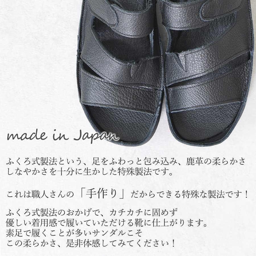 革靴 レディース 本革 鹿革 シューズ サンダル 靴 ストラップ 甲ストラップ マジックテープ ジビエ カジュアル シンプル 日本製 国産 軽量 軽い 歩きやすい 疲れない 柔らかい 痛くない 通勤 仕事用 立ち仕事 レディース靴 黒 ブラック 白 ホワイト
