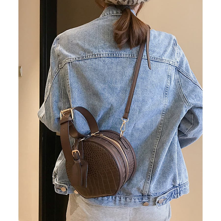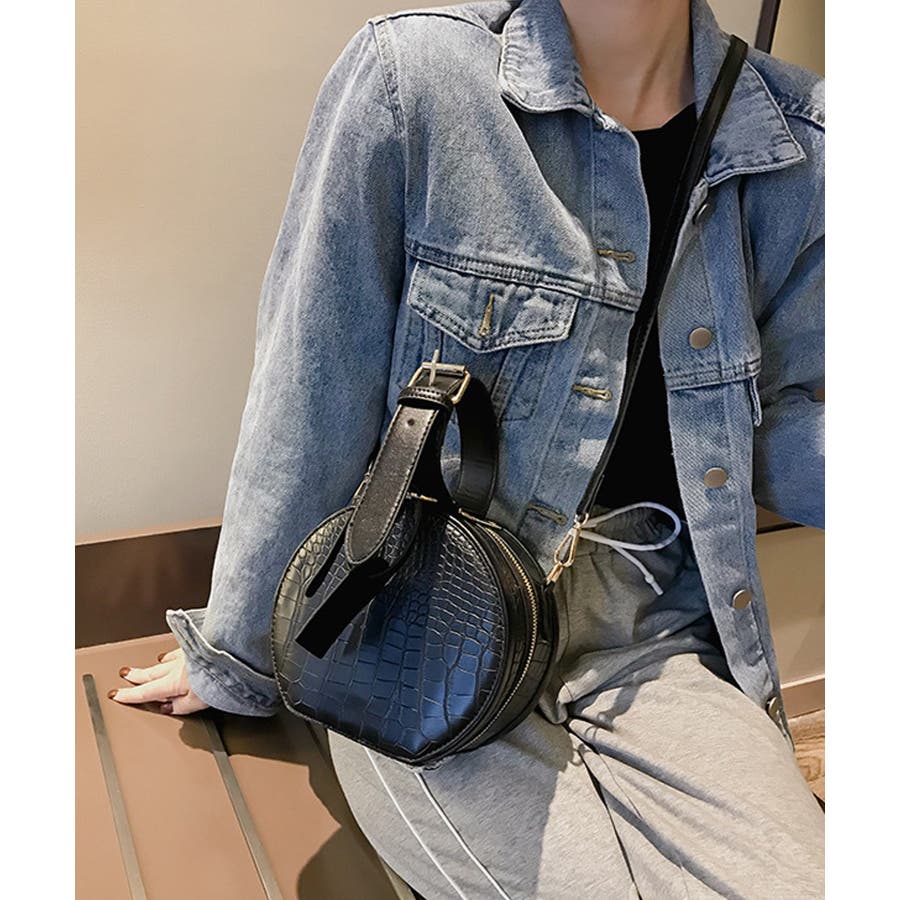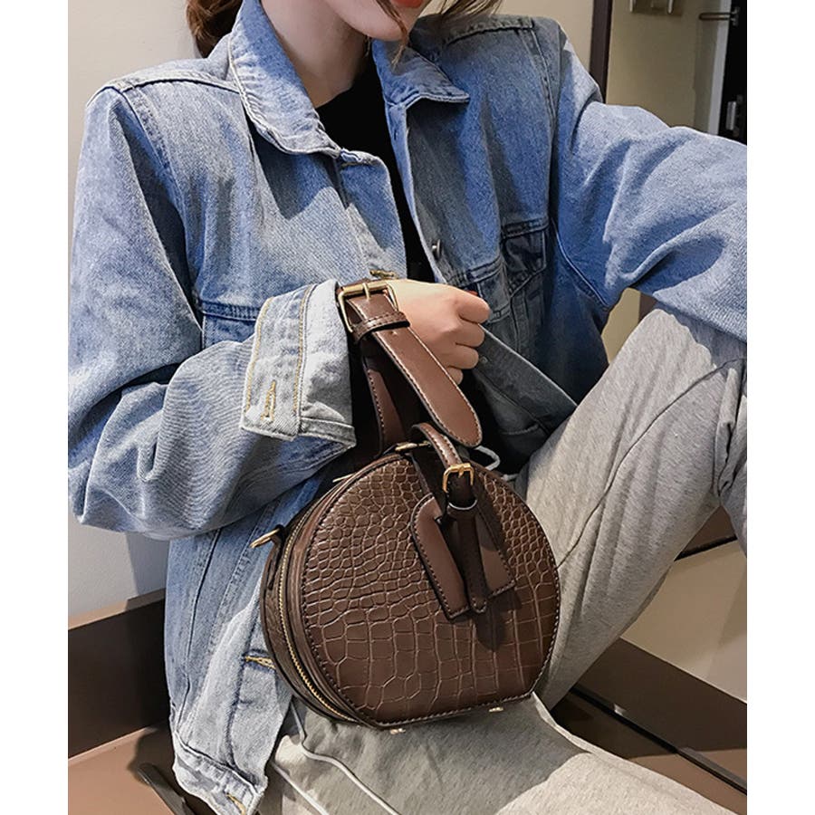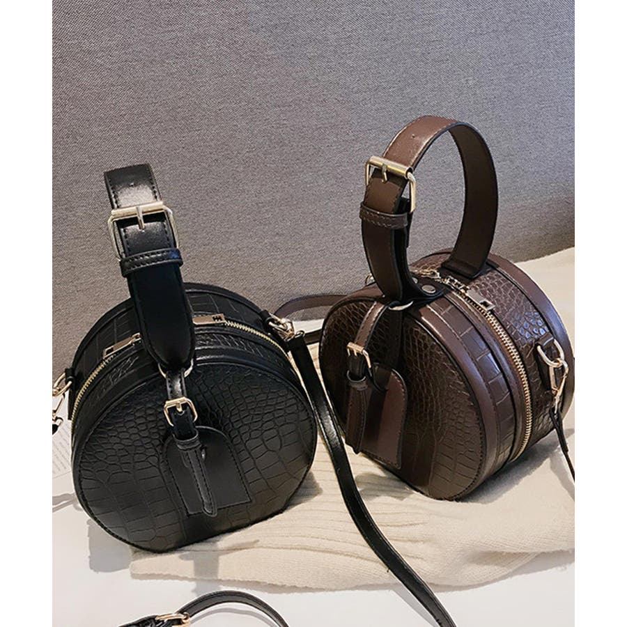 春新作 クロコ調ラウンドバッグ バッグ