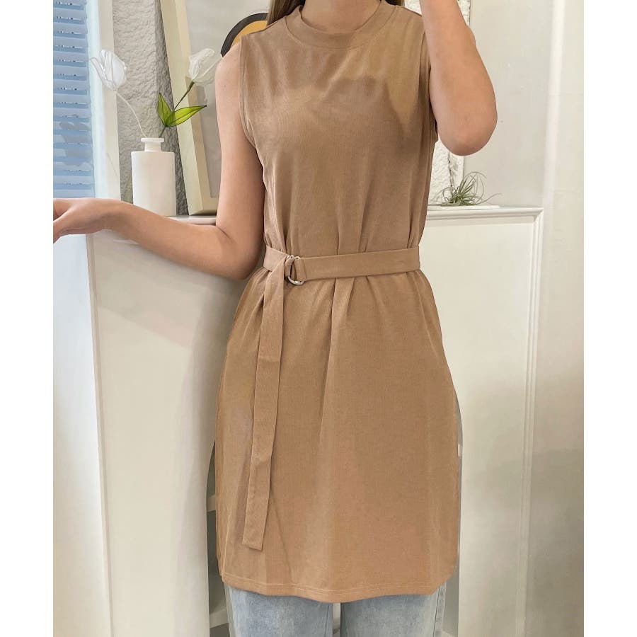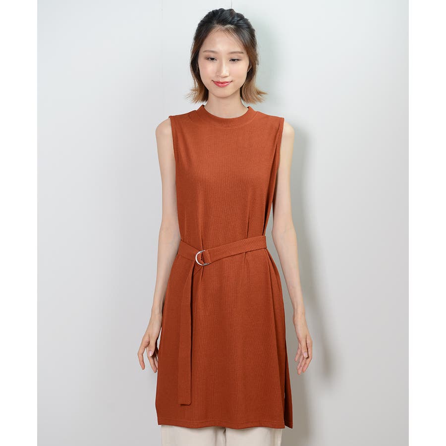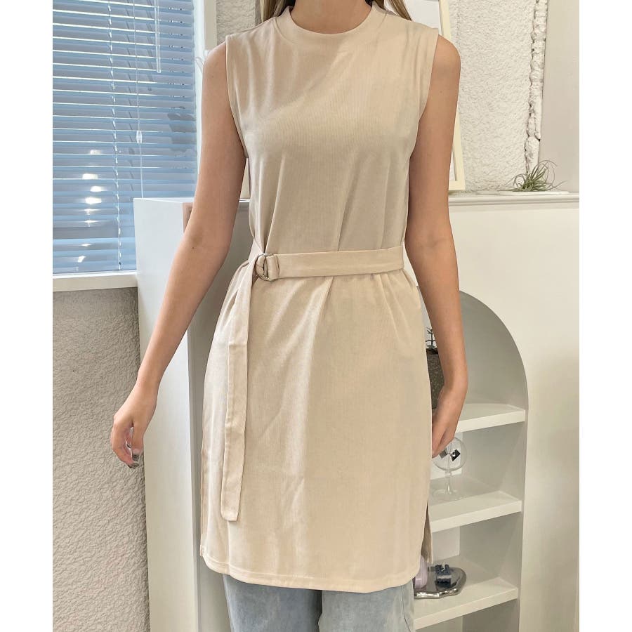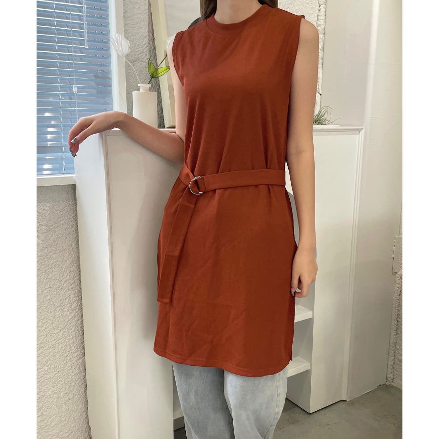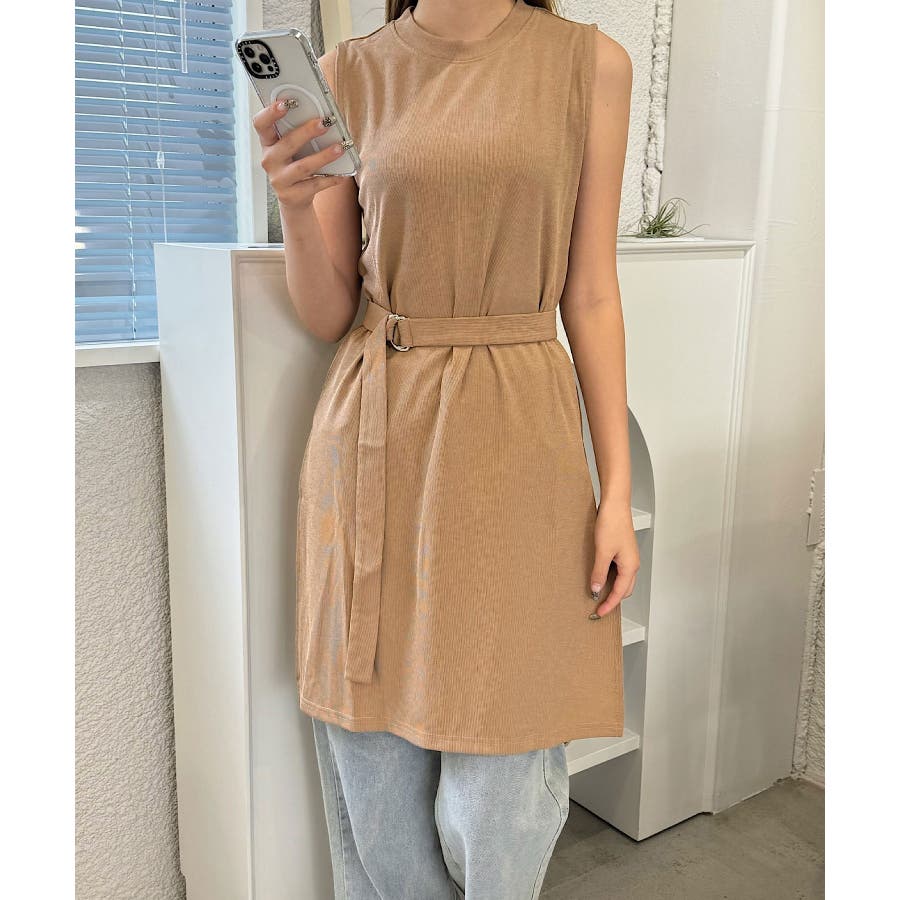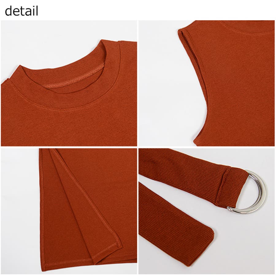 冬新作 ベルト付き細リブスリットチュニック シンプル