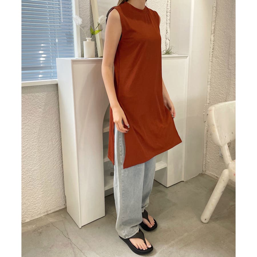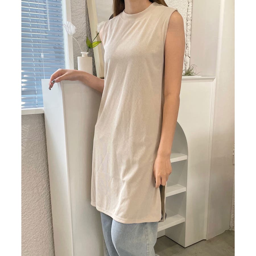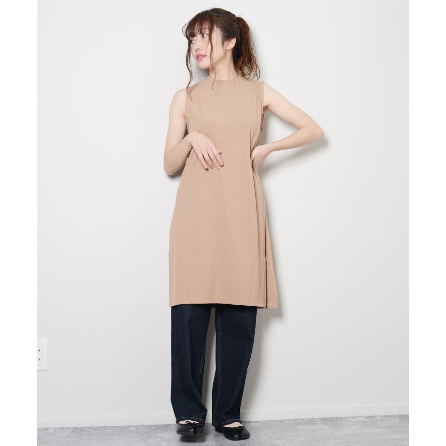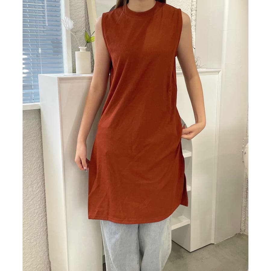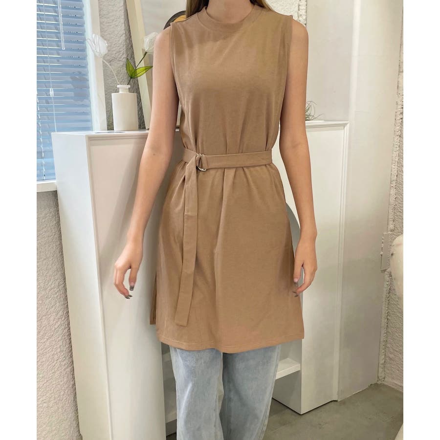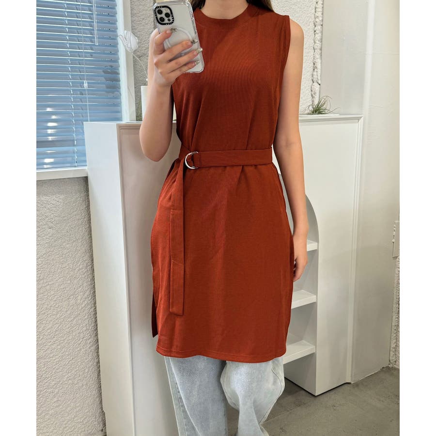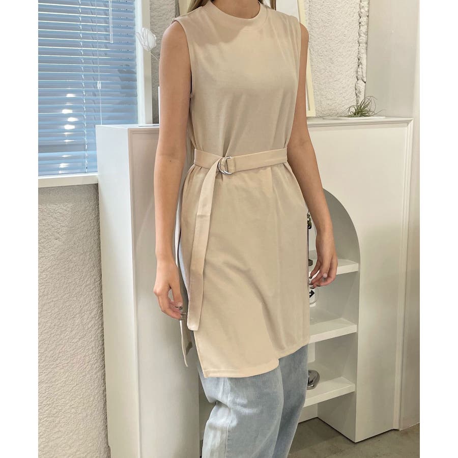 冬新作 ベルト付き細リブスリットチュニック シンプル