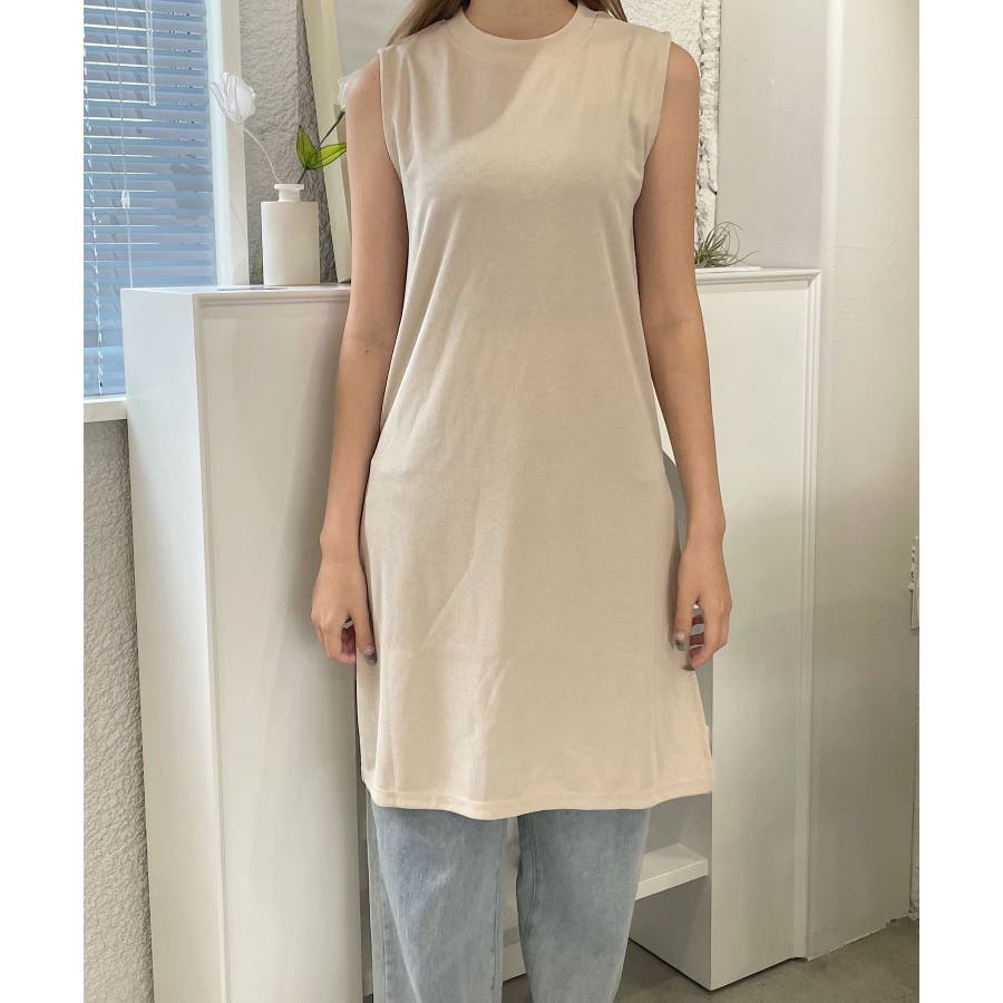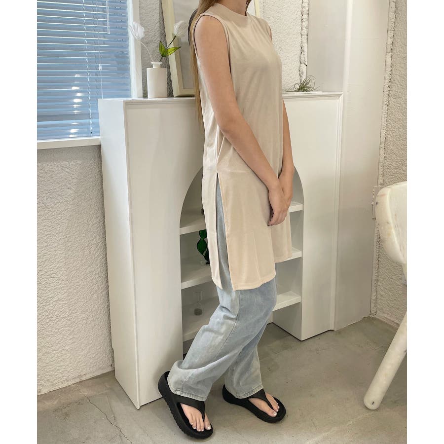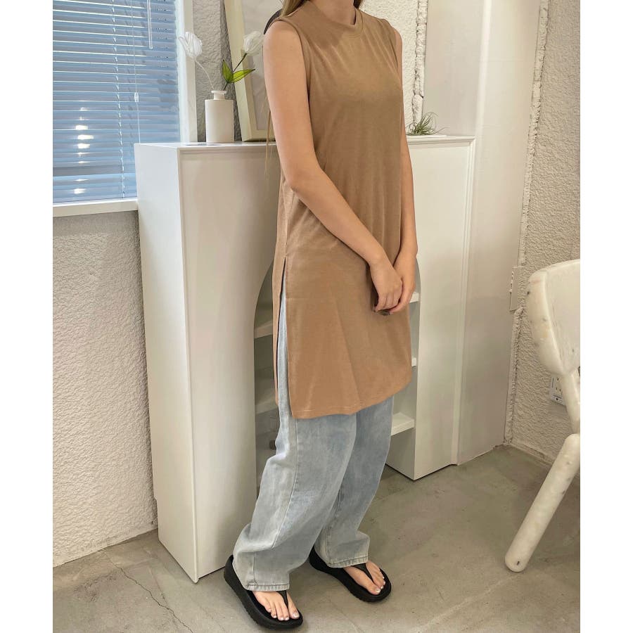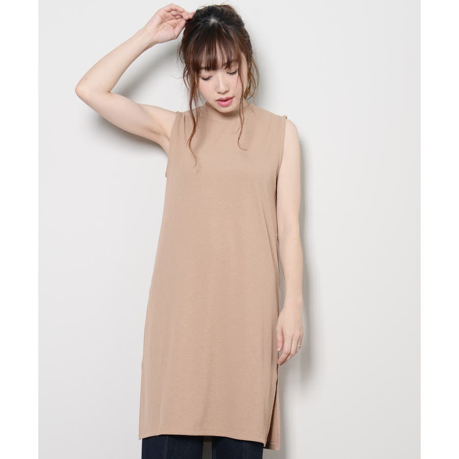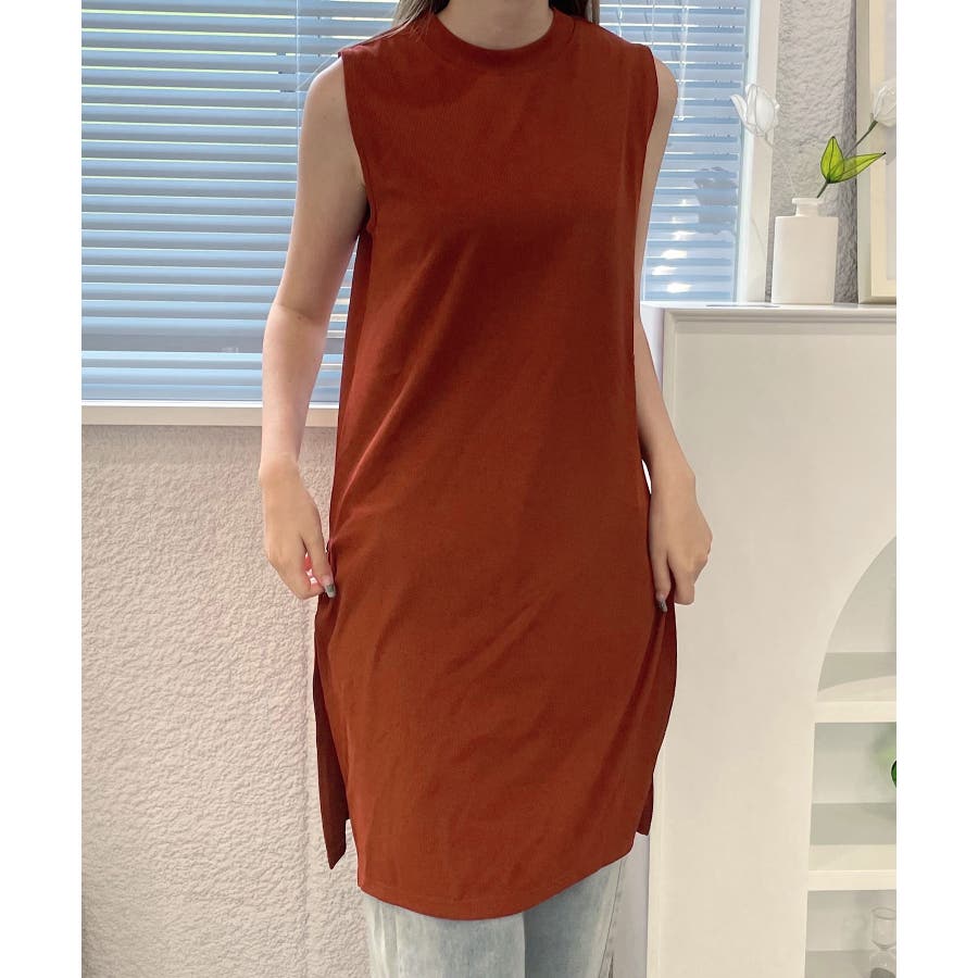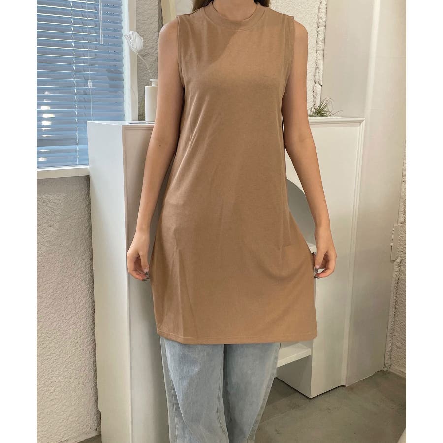 冬新作 ベルト付き細リブスリットチュニック シンプル
