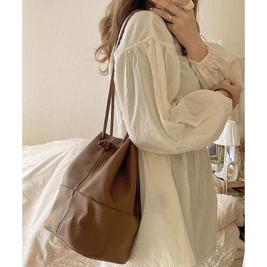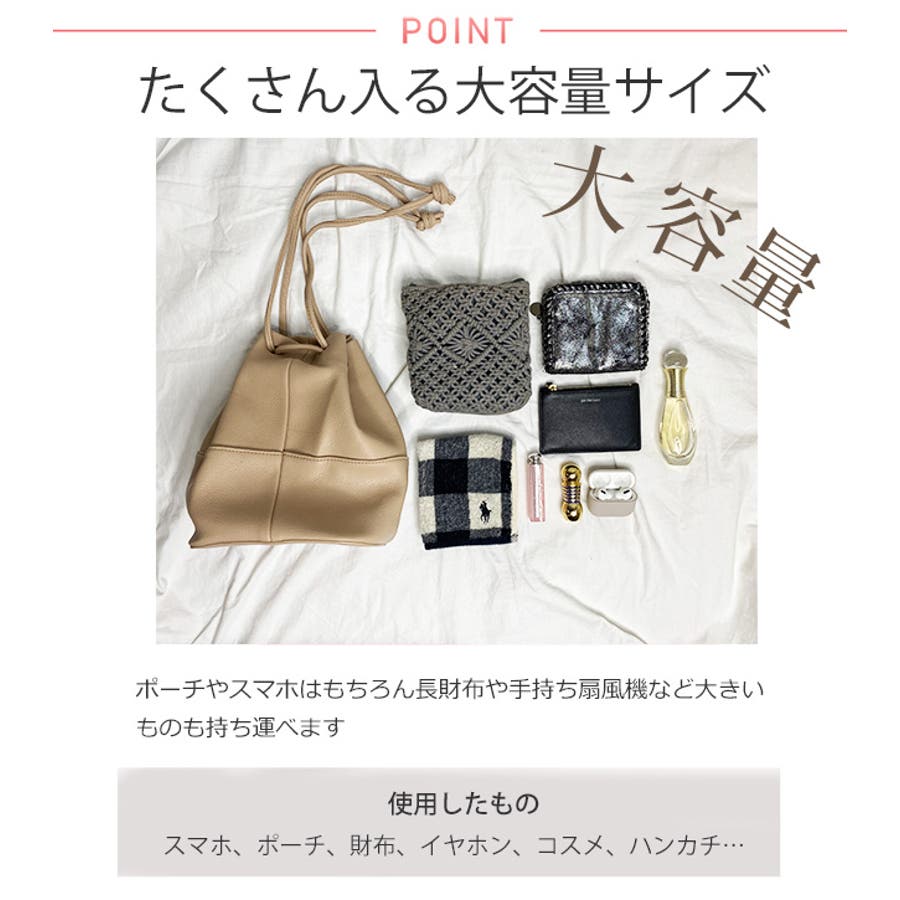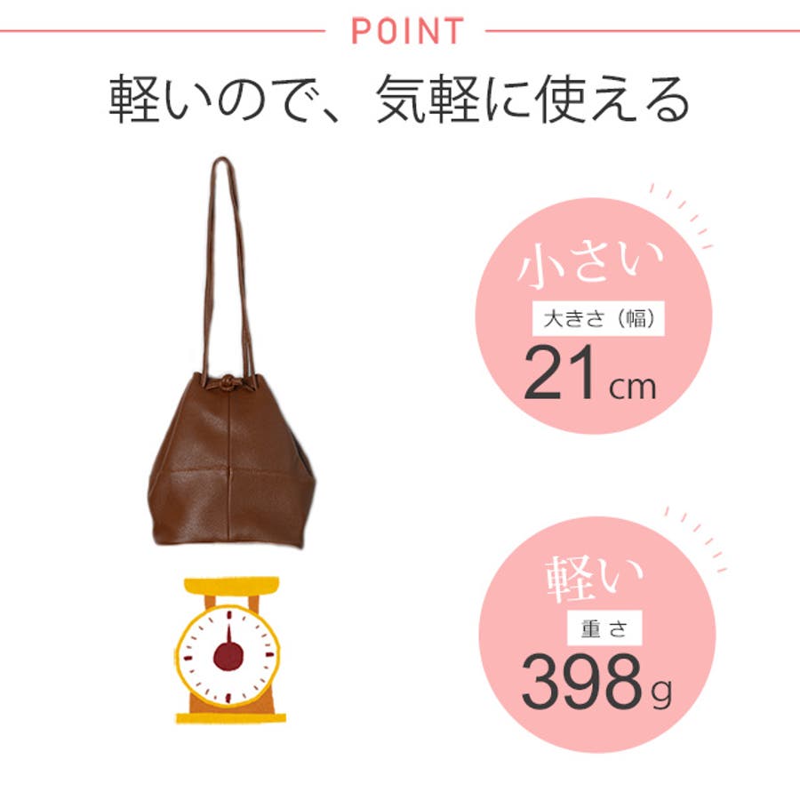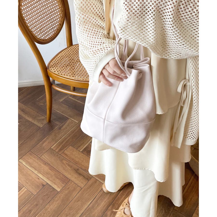 シンプルでどんなコーデにも合わせやすい巾着バッグ。