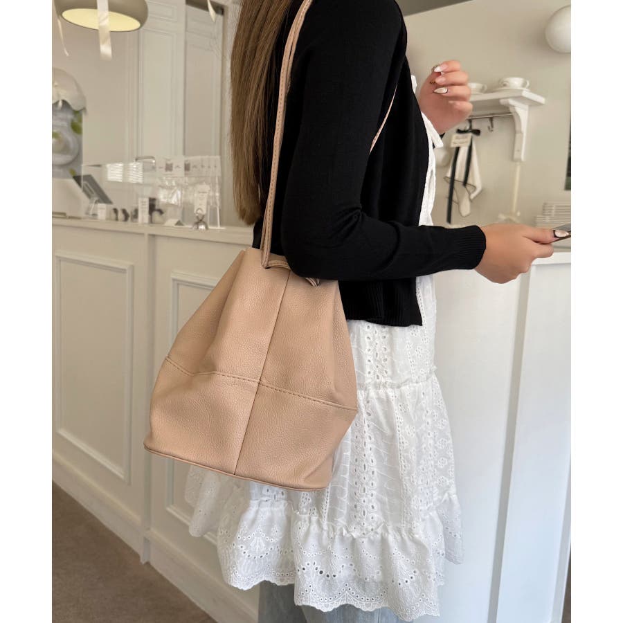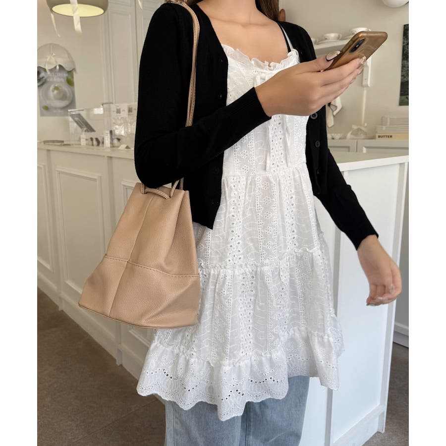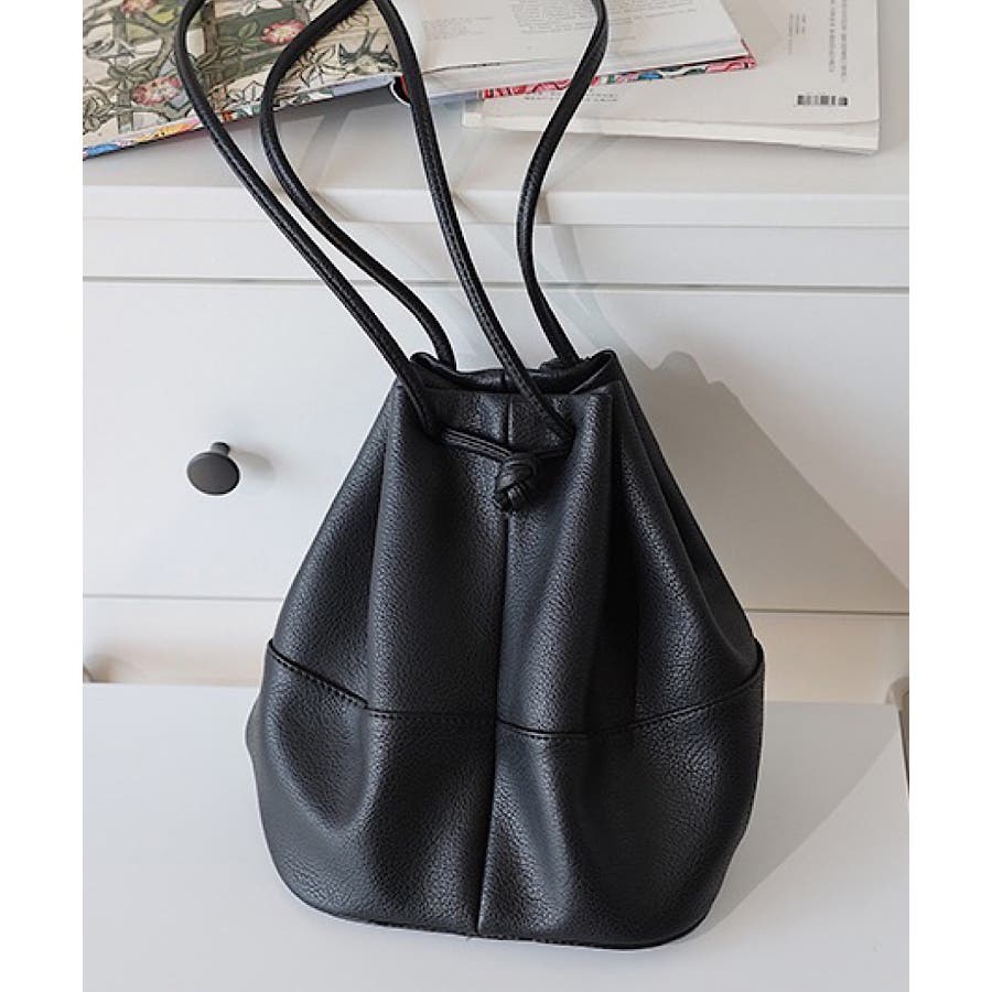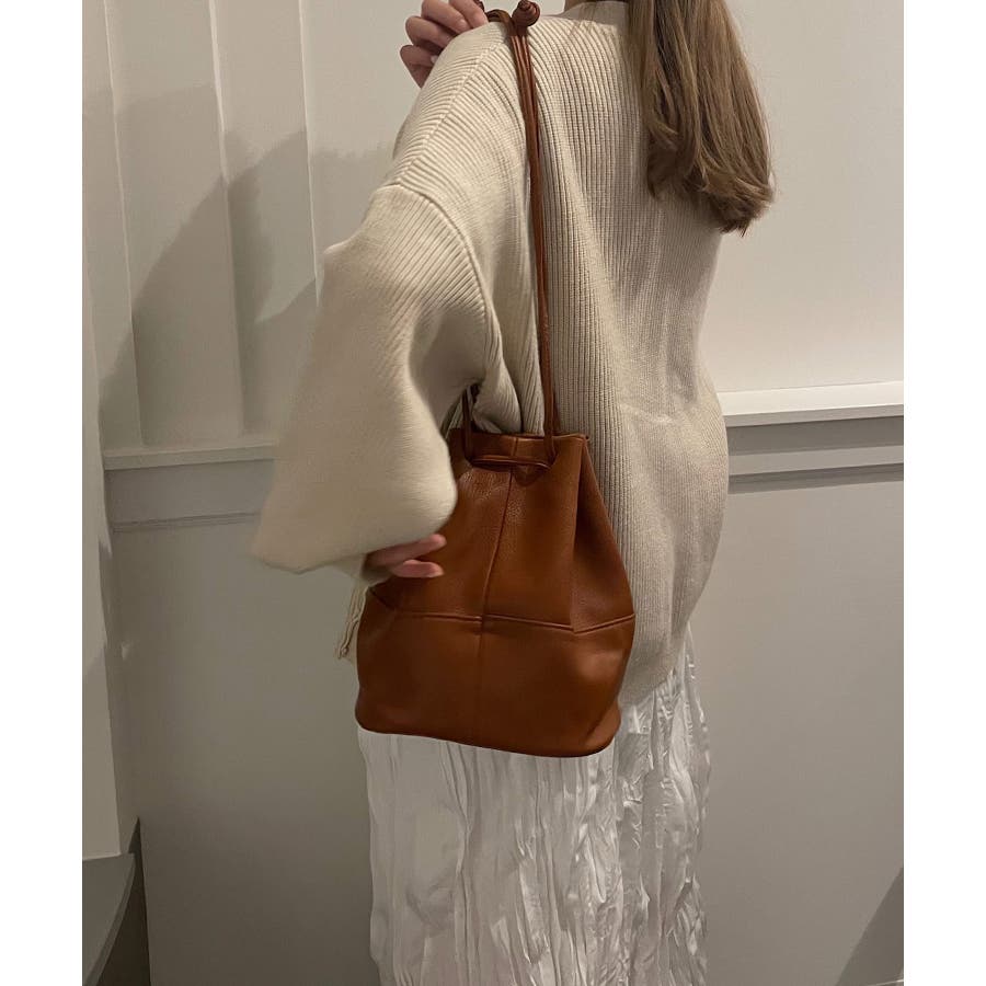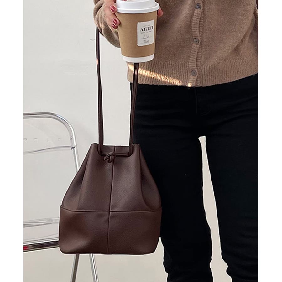 シンプルでどんなコーデにも合わせやすい巾着バッグ。