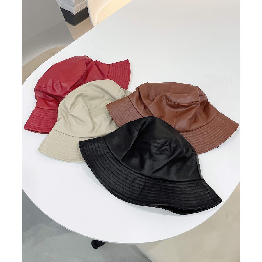 冬新作 フェイクレザー バケットハット