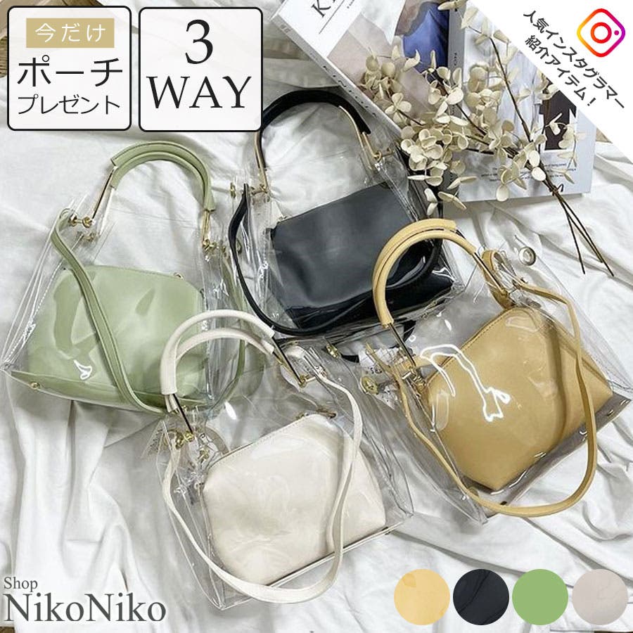 大人気!実用性も兼ね揃えた3wayクリアバッグ。