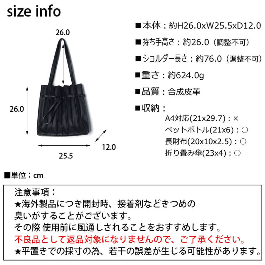 縦:約26cm 幅:約25.5cm マチ:約12cm 持ち手高さ:約26cm ショルダー長さ:約76cm(調整不可)