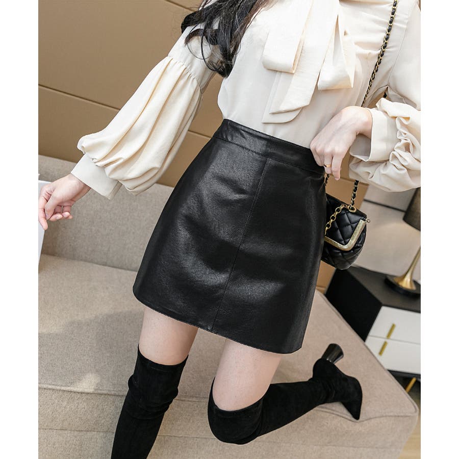 【インパン付きのレザー台形ミニスカート】