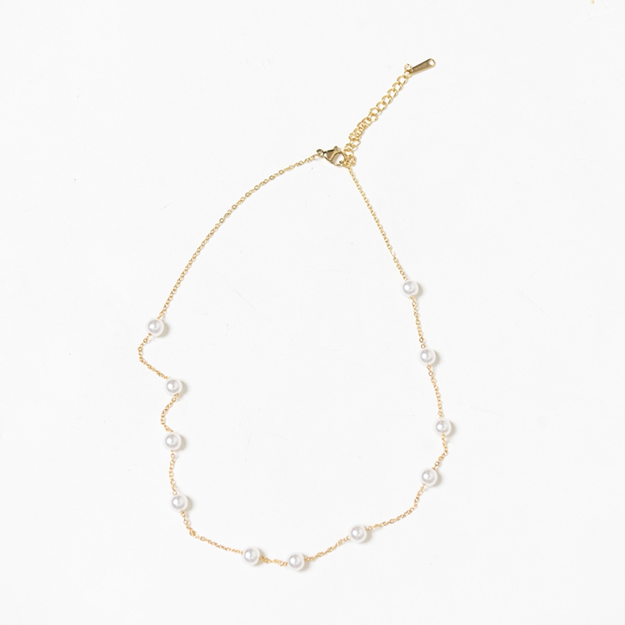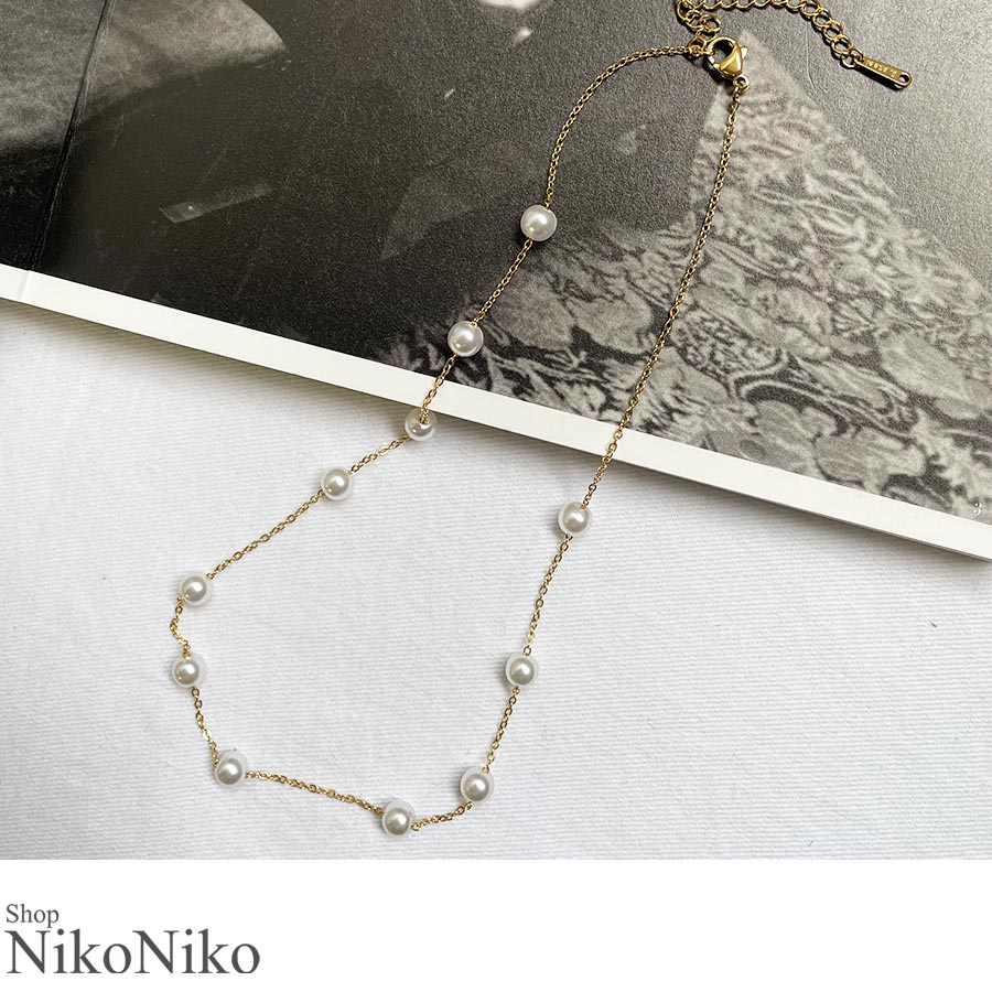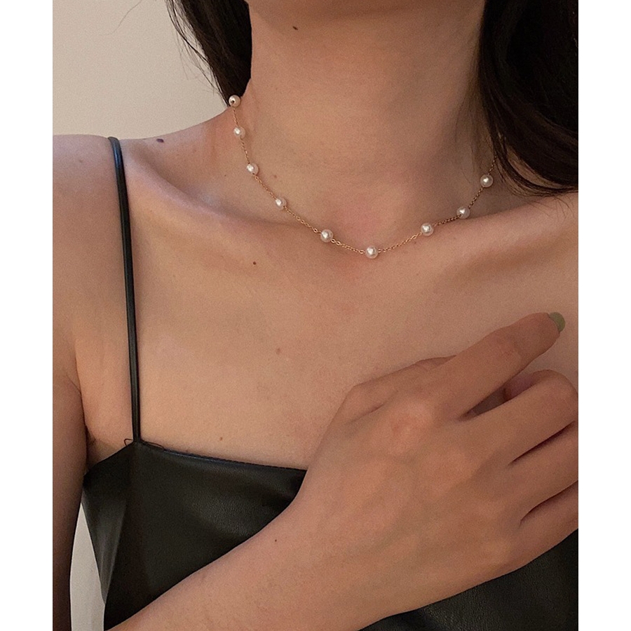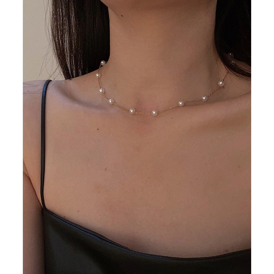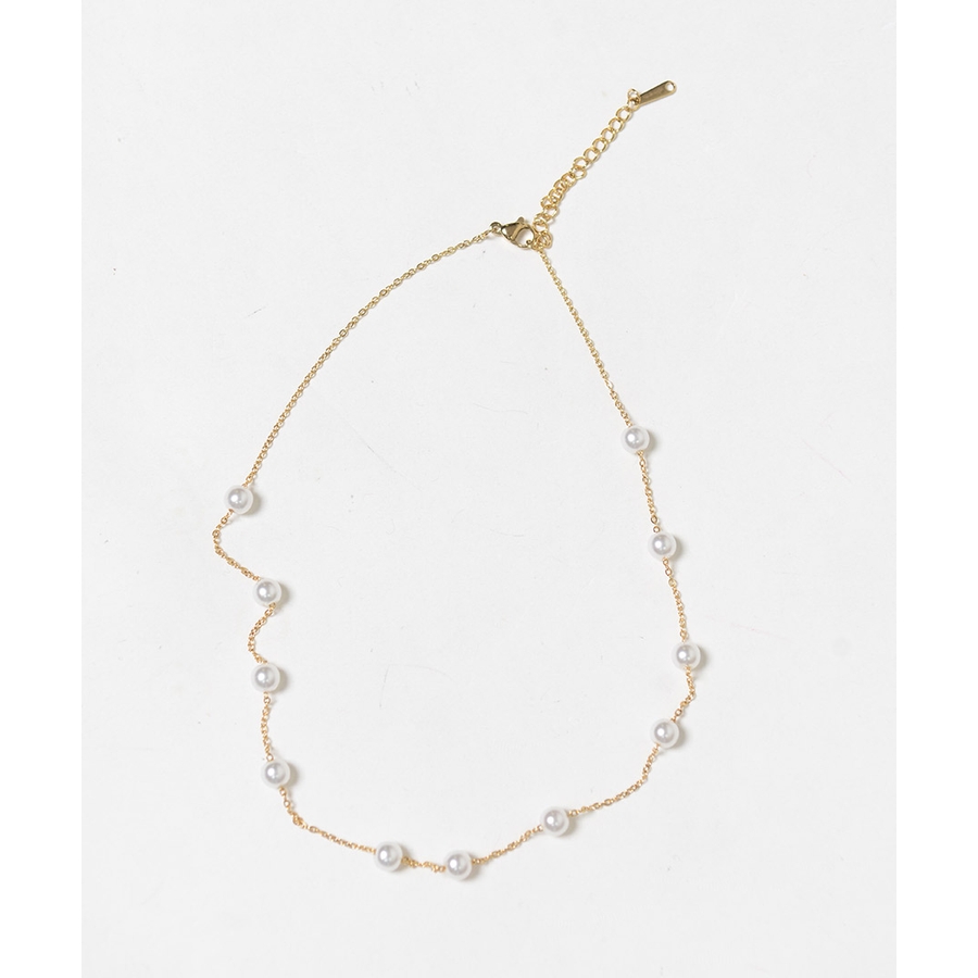 小さめな真珠が等間隔にデザインされた、シンプルかつ華やかさもあるチョーカー風ネックレス♪