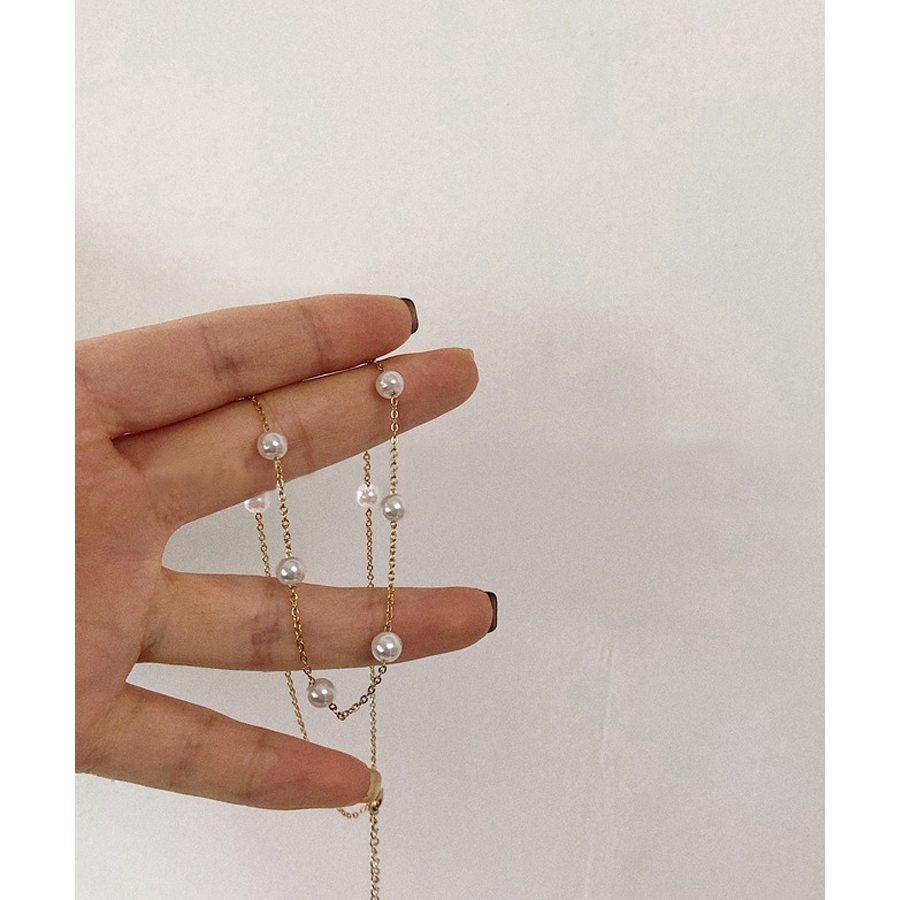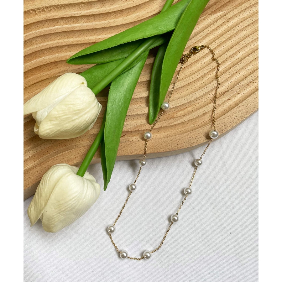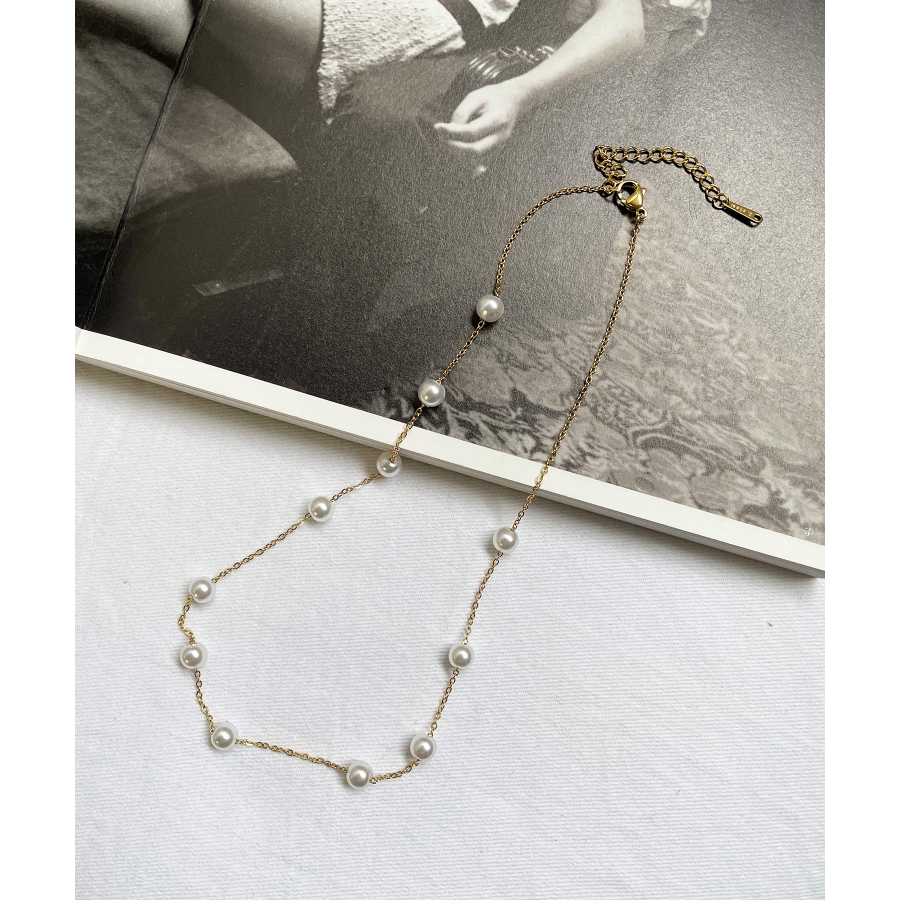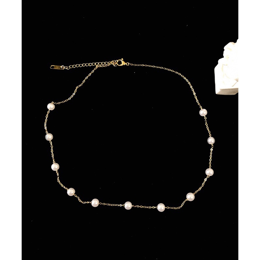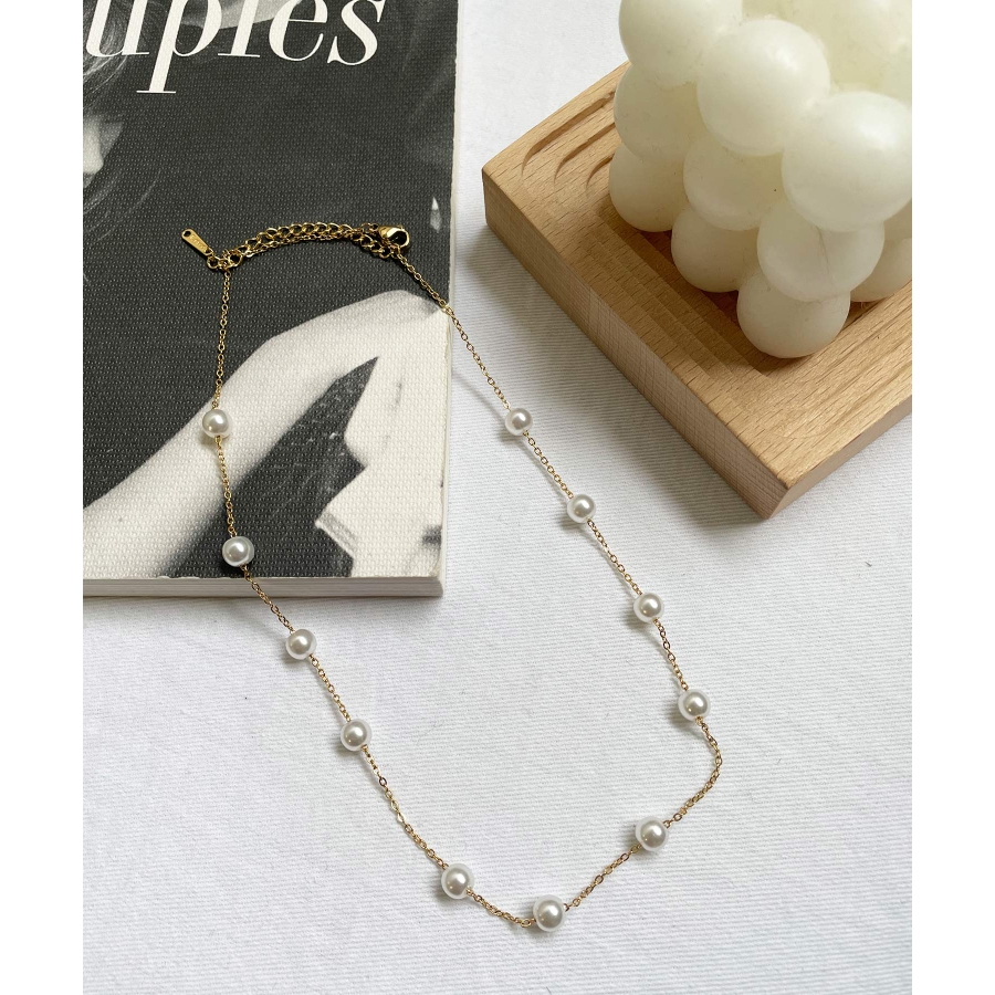 小さめな真珠が等間隔にデザインされた、シンプルかつ華やかさもあるチョーカー風ネックレス♪