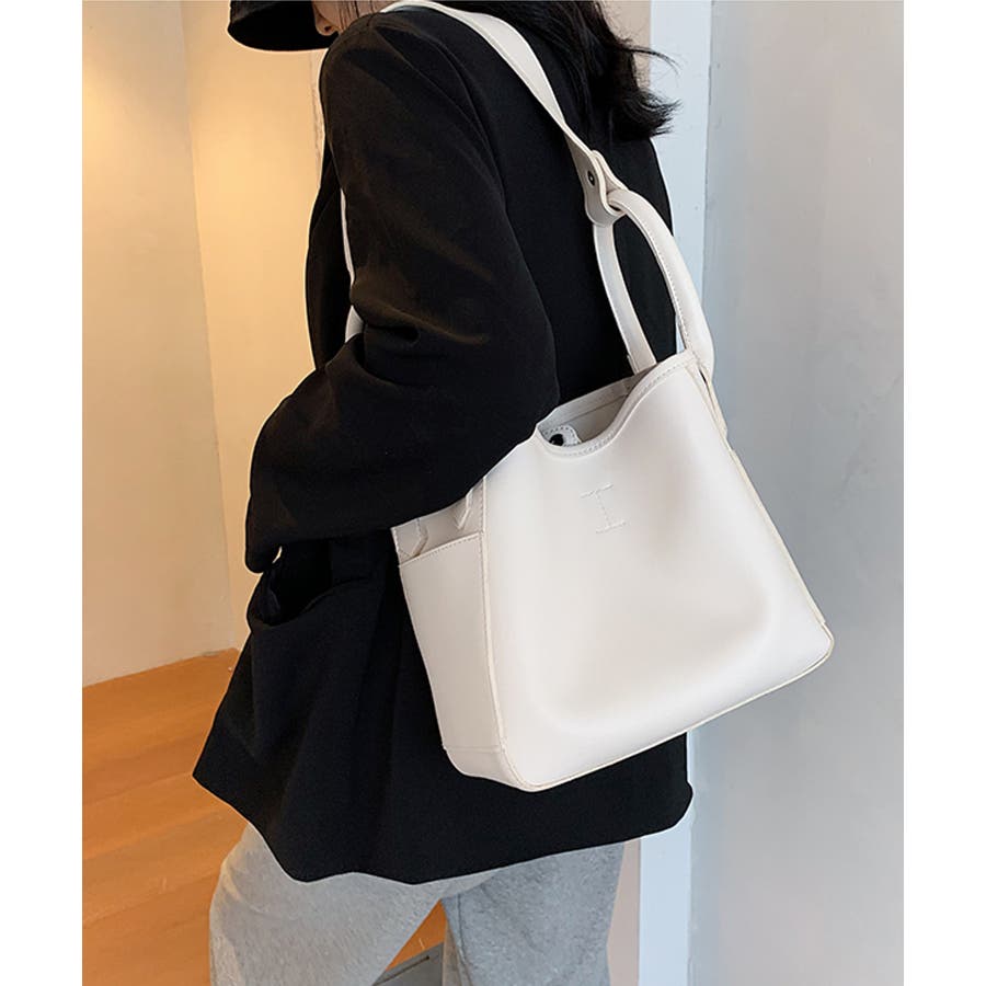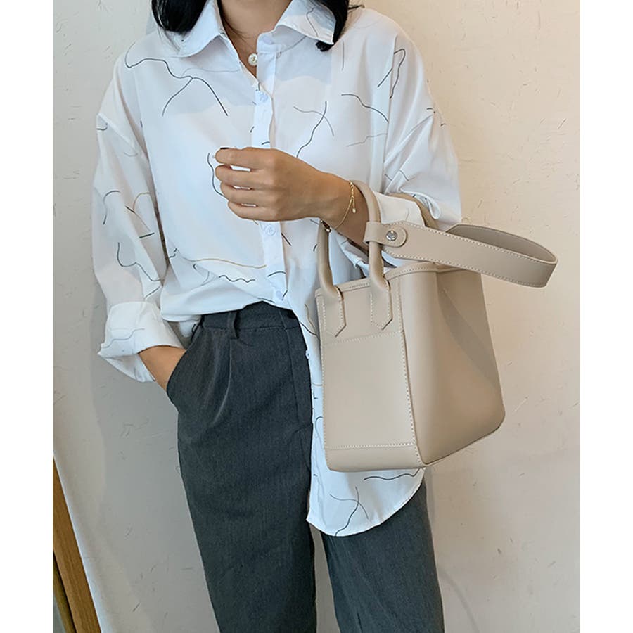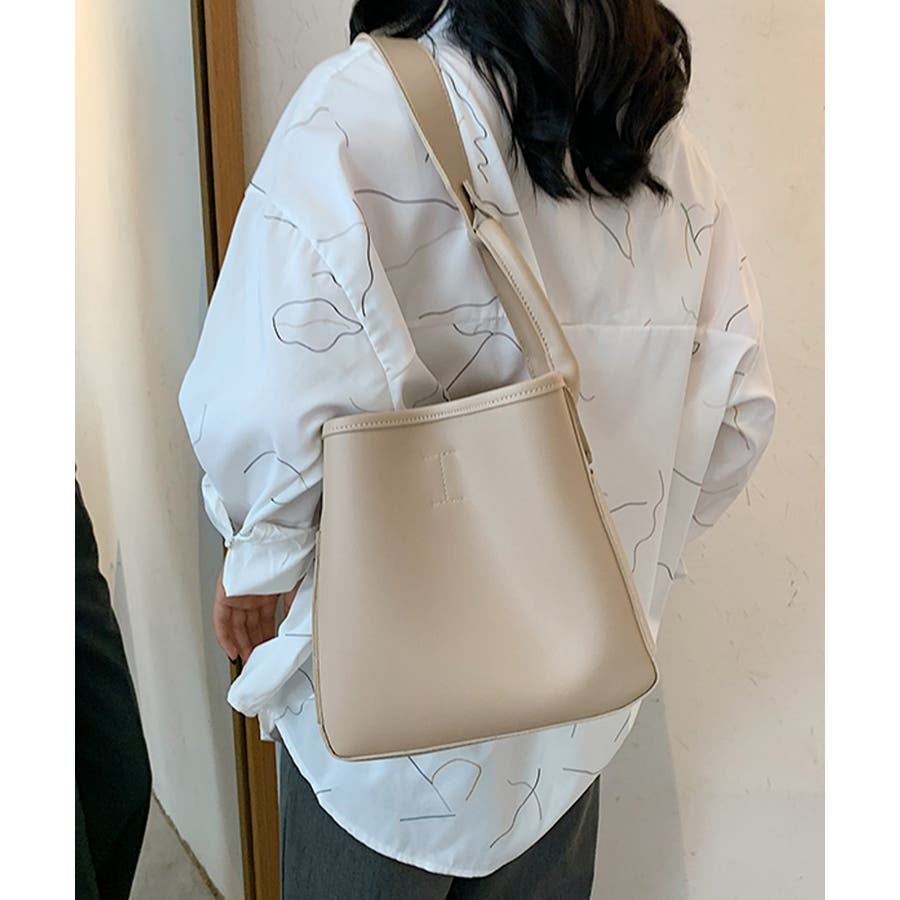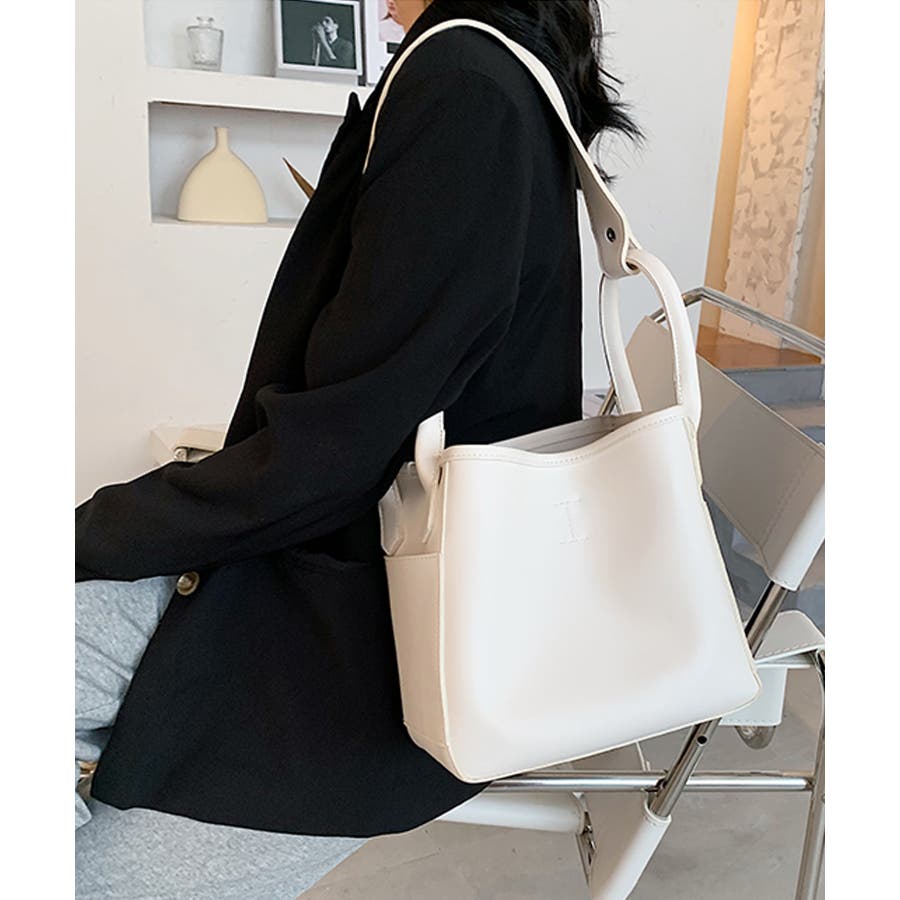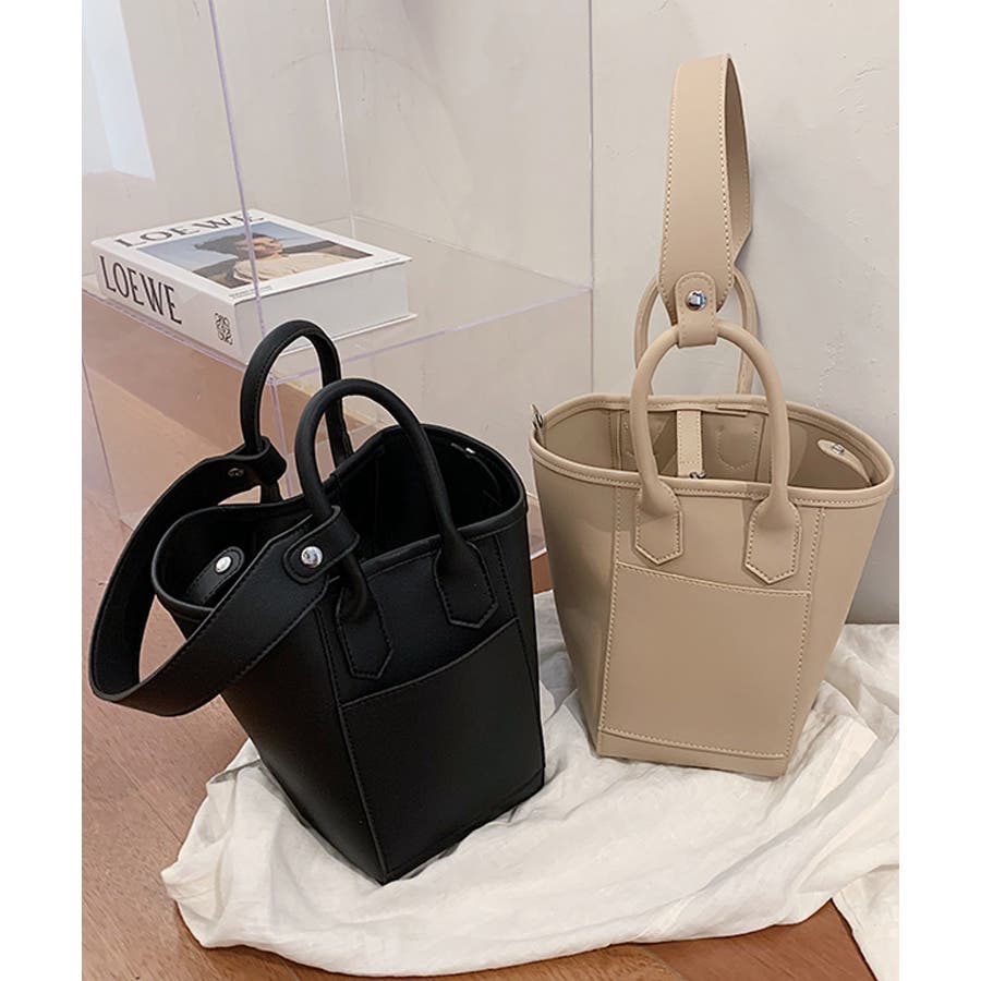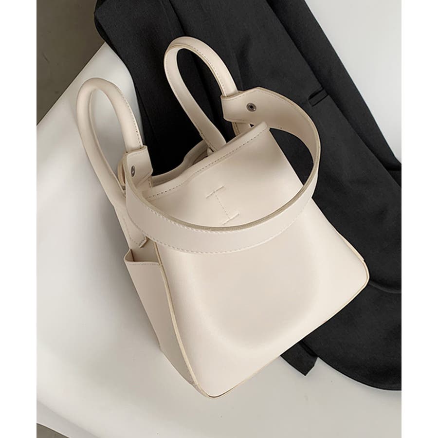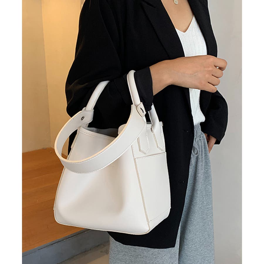 バケット型のスクエアフォルムがおしゃれなバッグ。