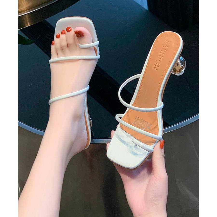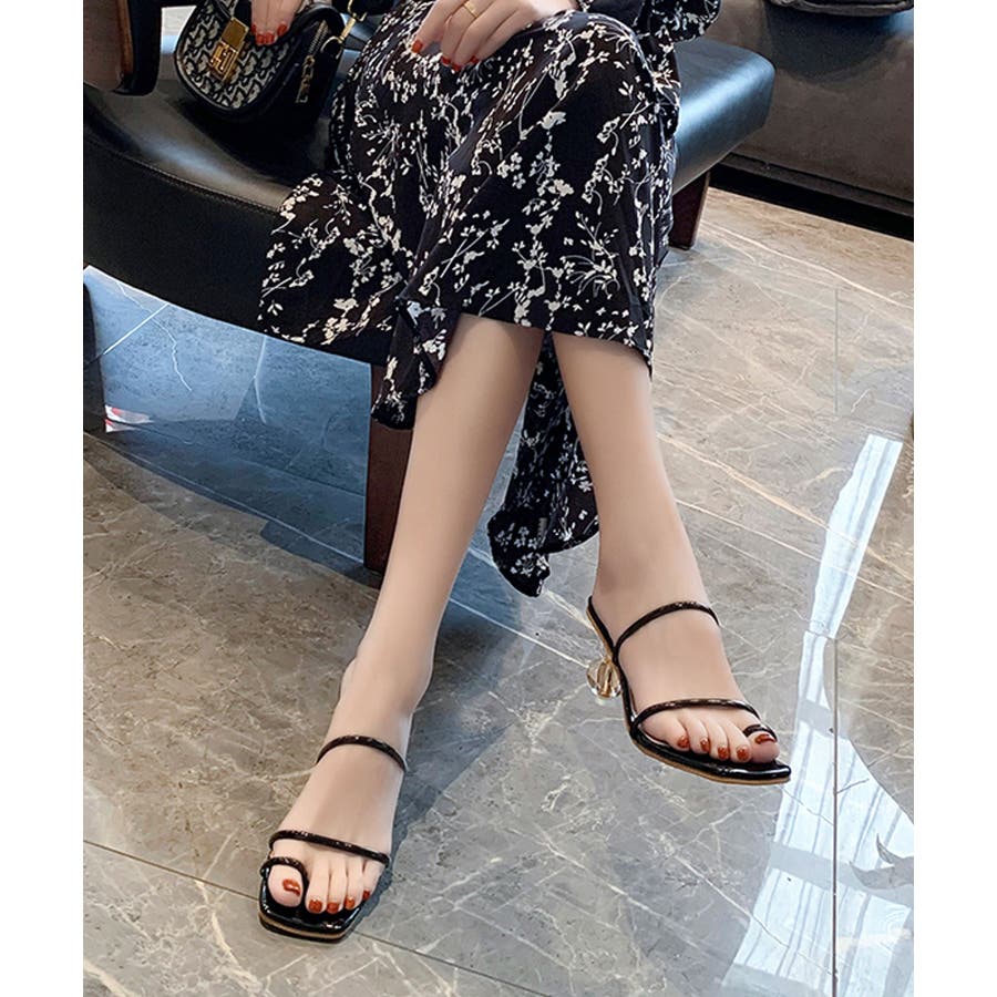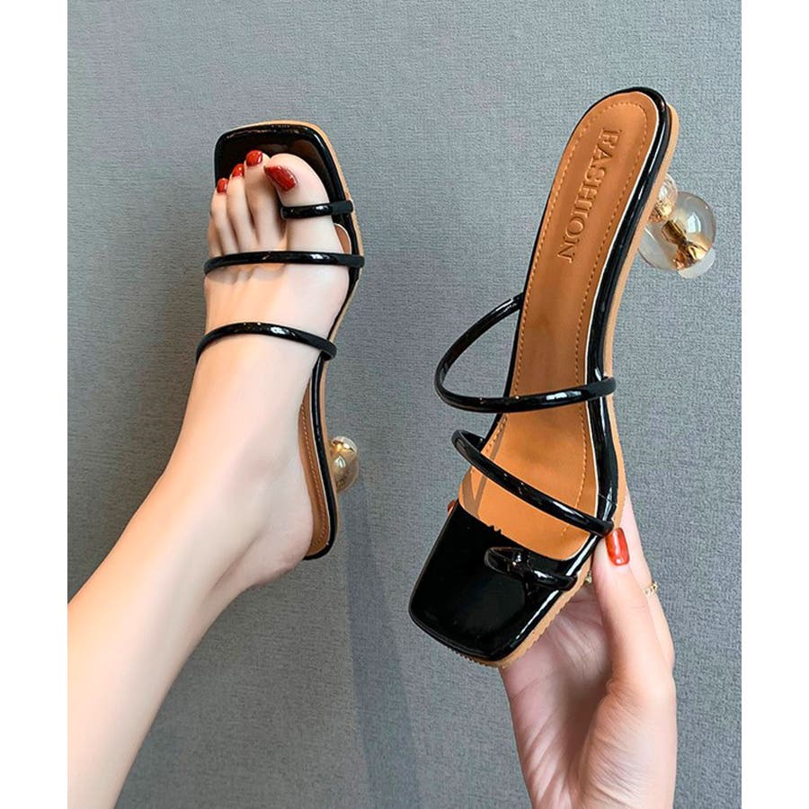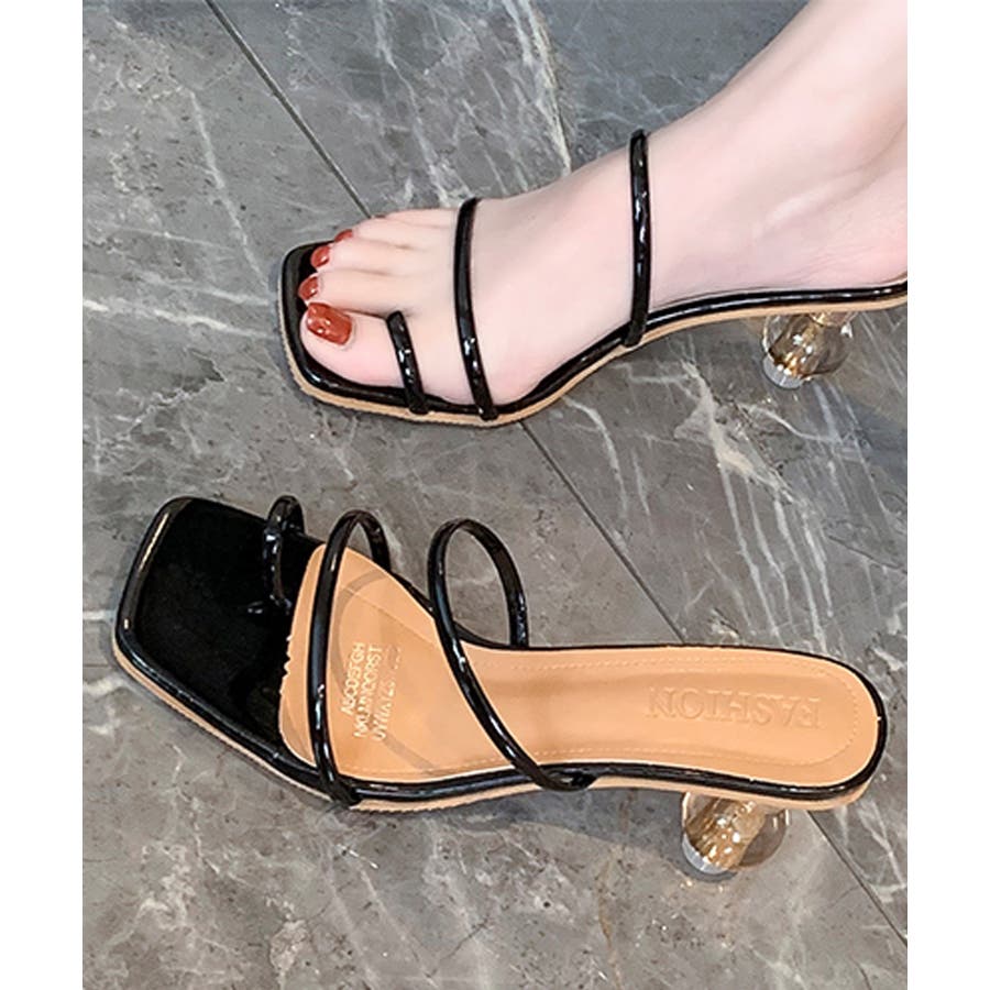 流行りのスクエアトゥのクリアヒールサンダル♪