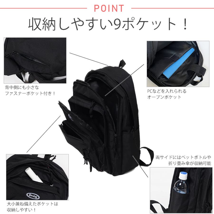 収納に便利なポケットは9個もありA4サイズやノートパソコンなどたくさん入ります。
