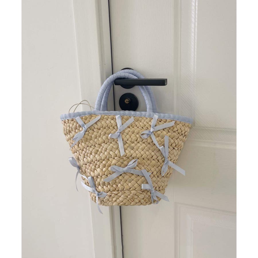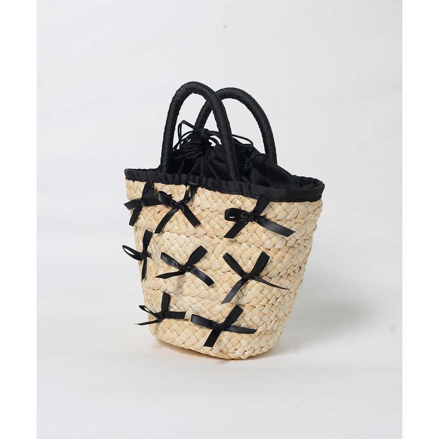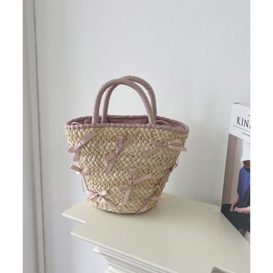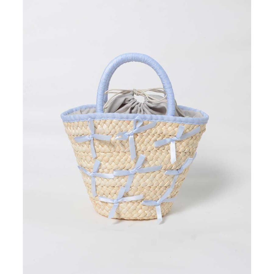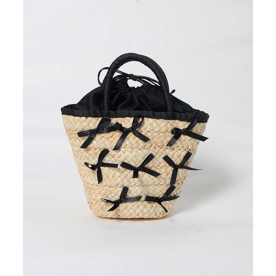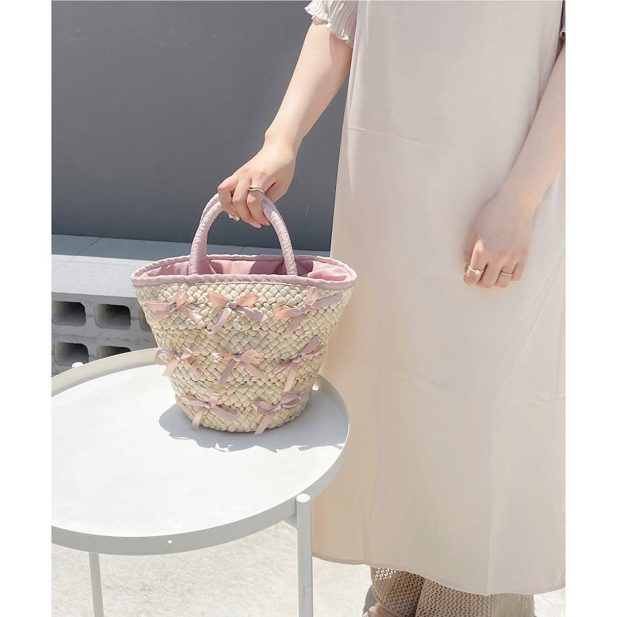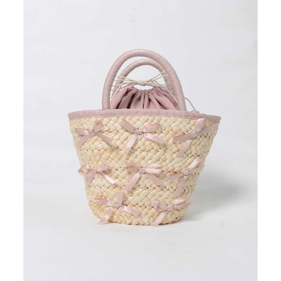 シンプルなかごバッグにリボンがデコレーションされたかわいいバッグ。