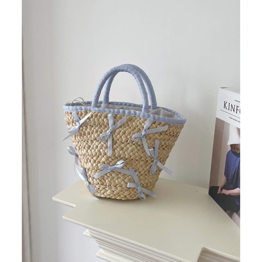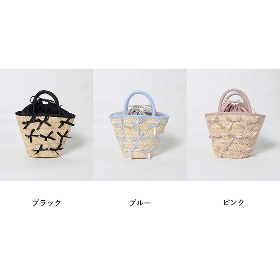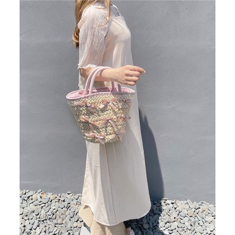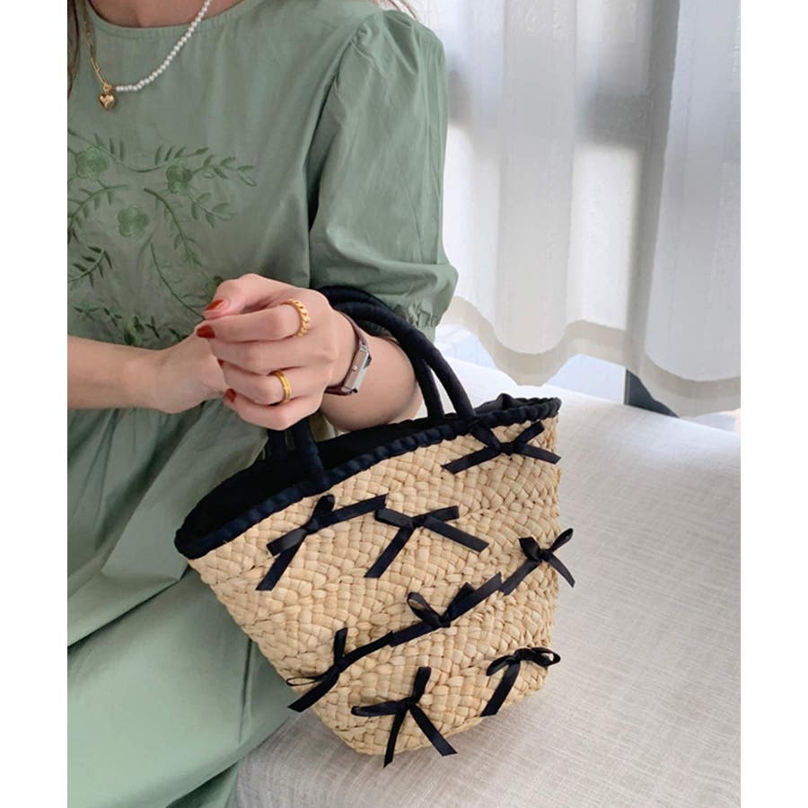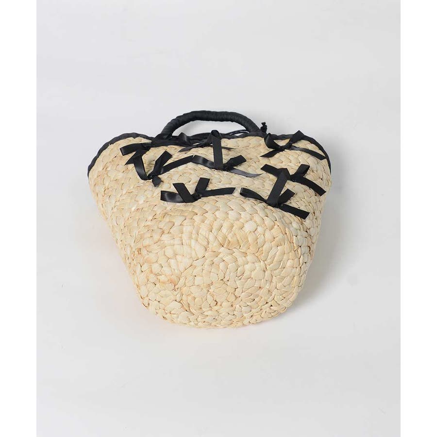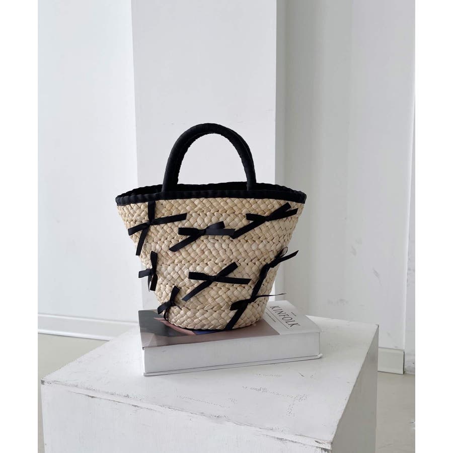 シンプルなかごバッグにリボンがデコレーションされたかわいいバッグ。
