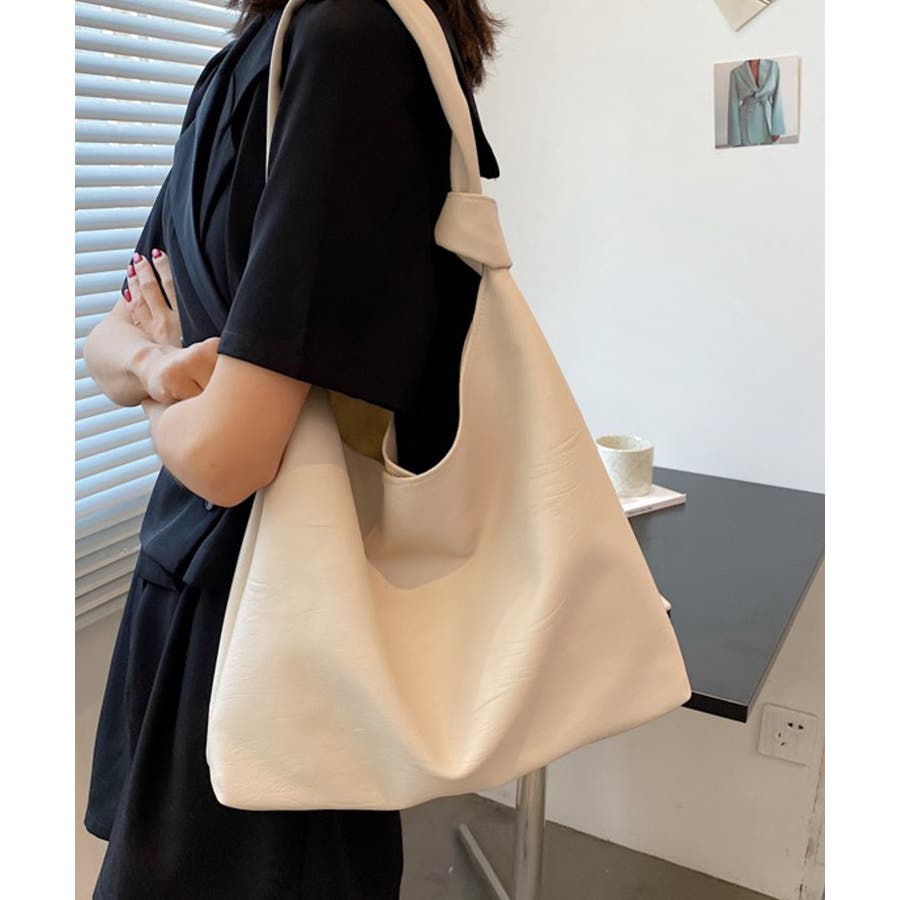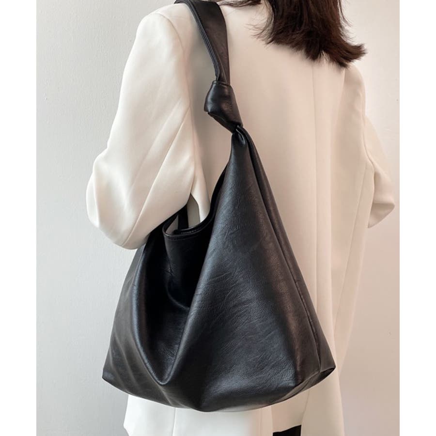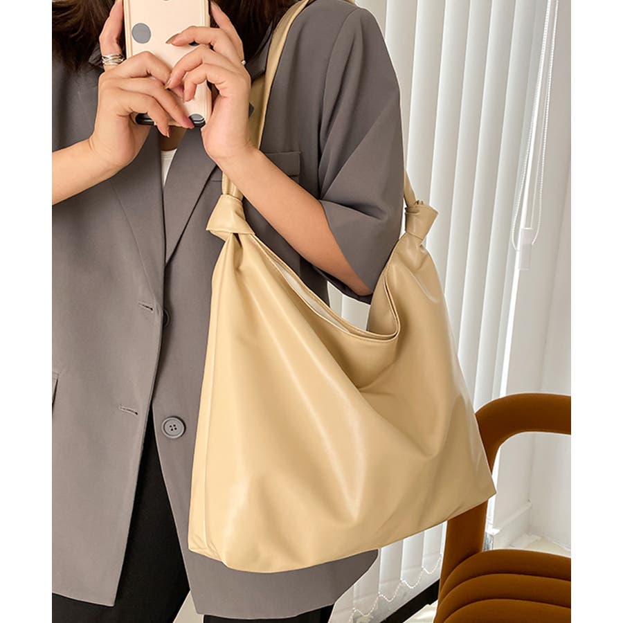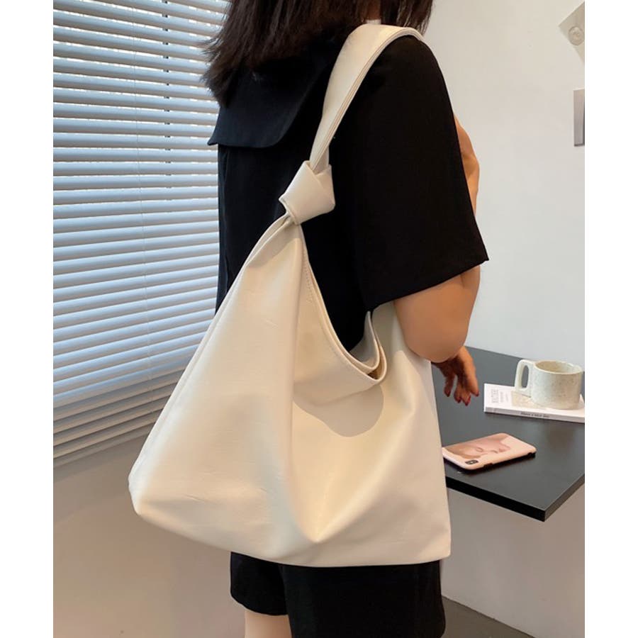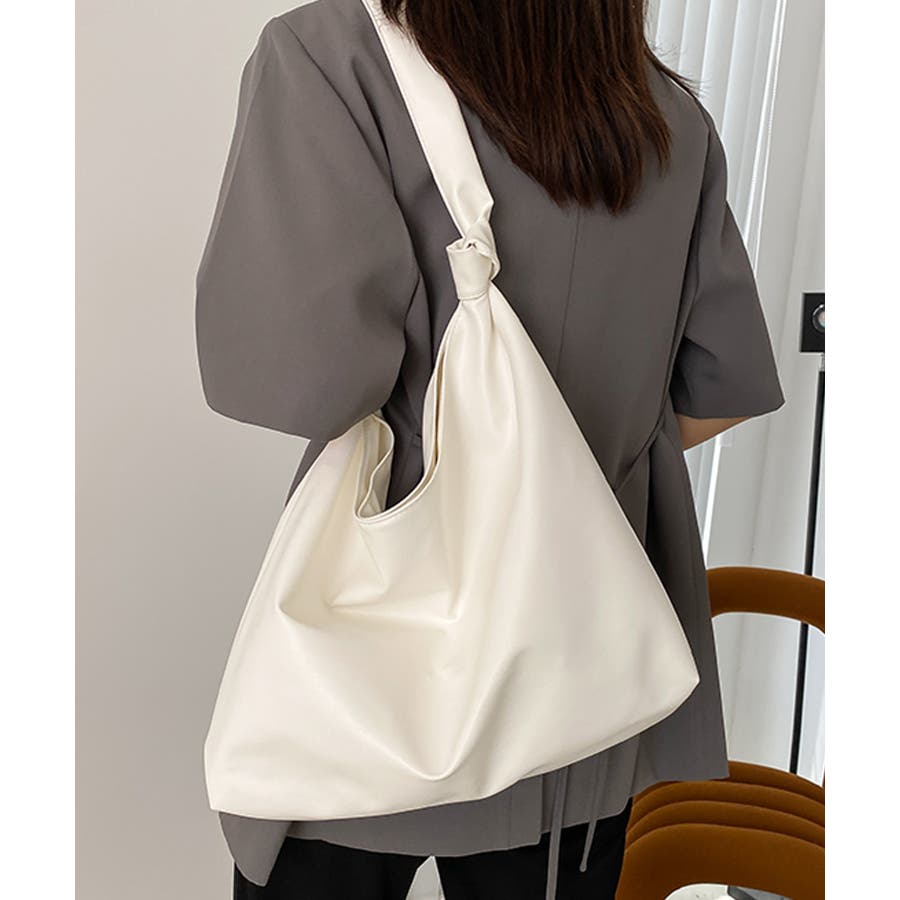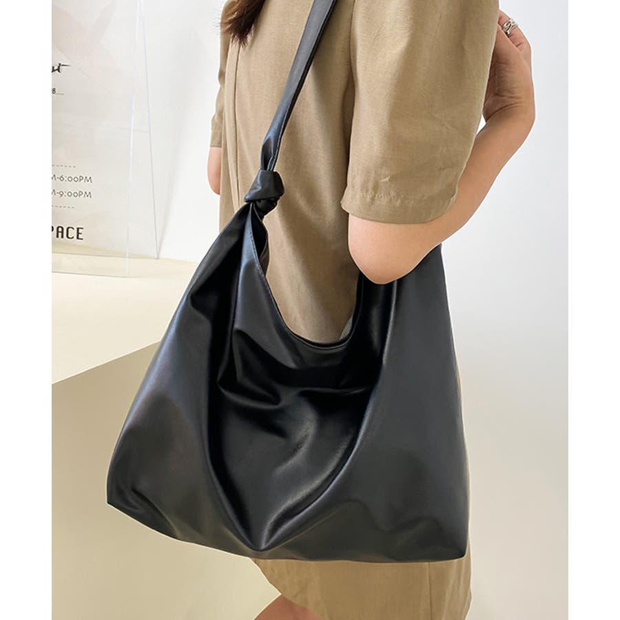 シンプルなデザインの中にボディとストラップを結んだノットデザインがアクセントに。