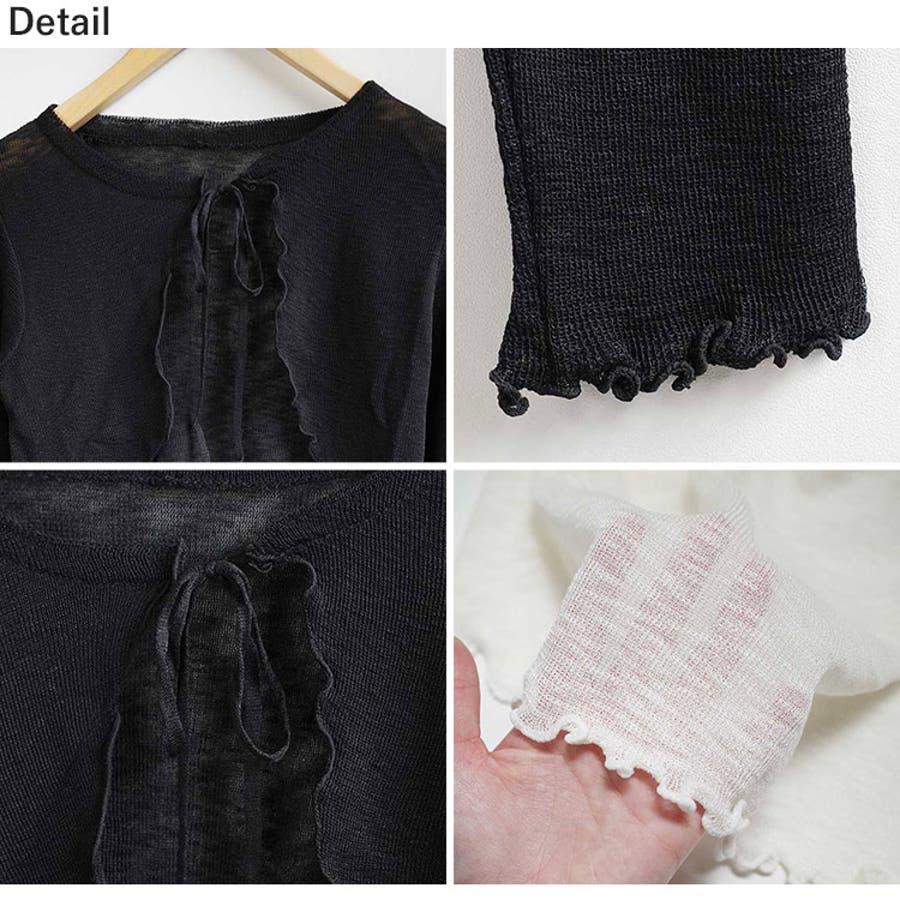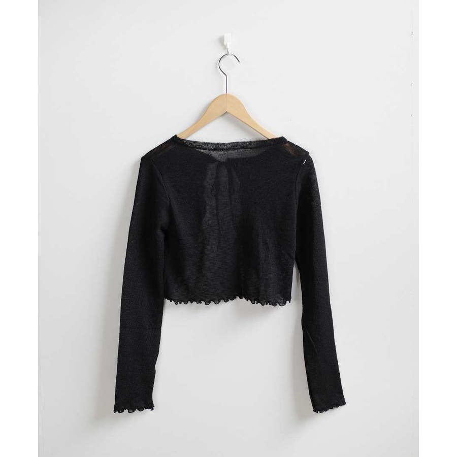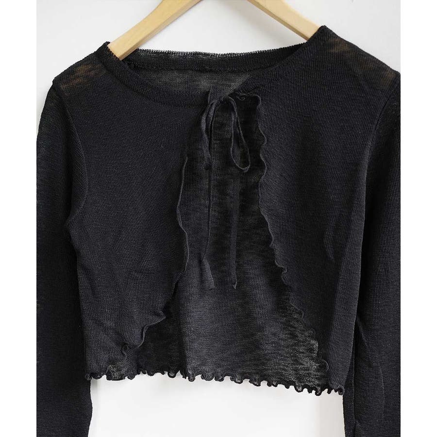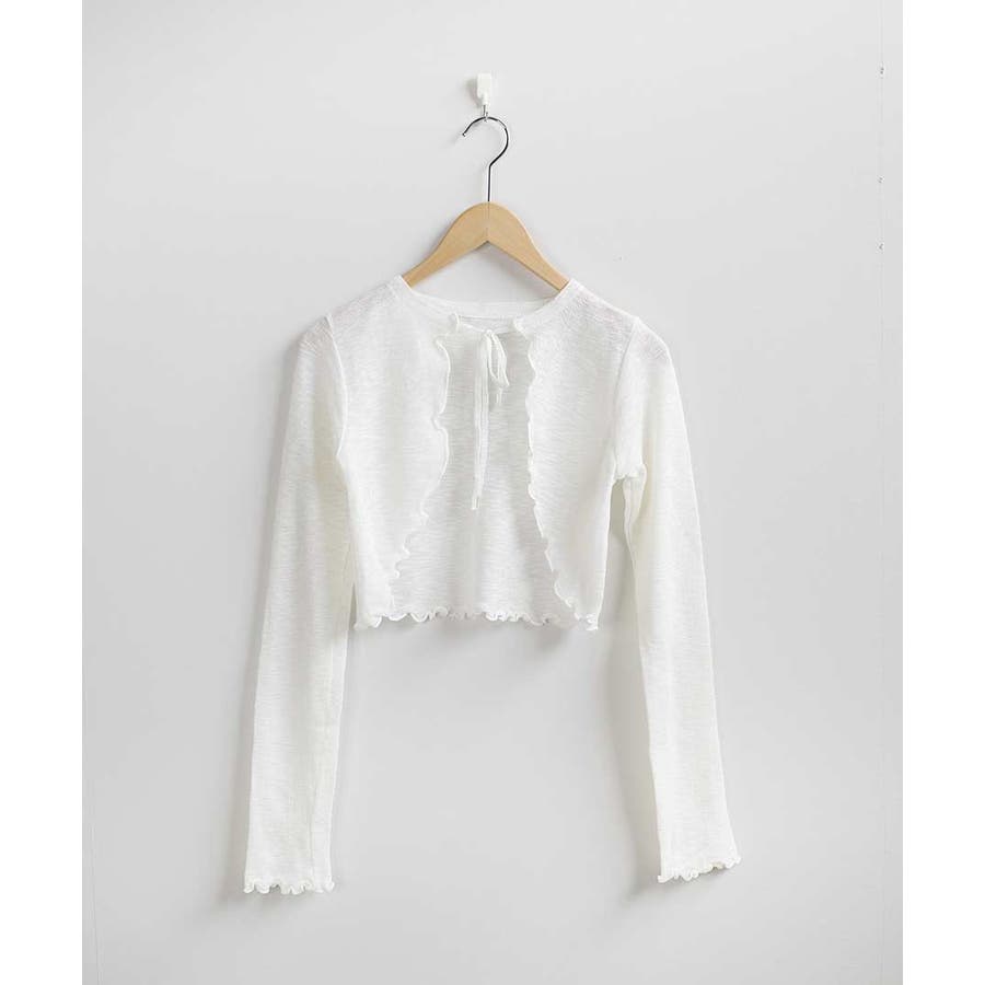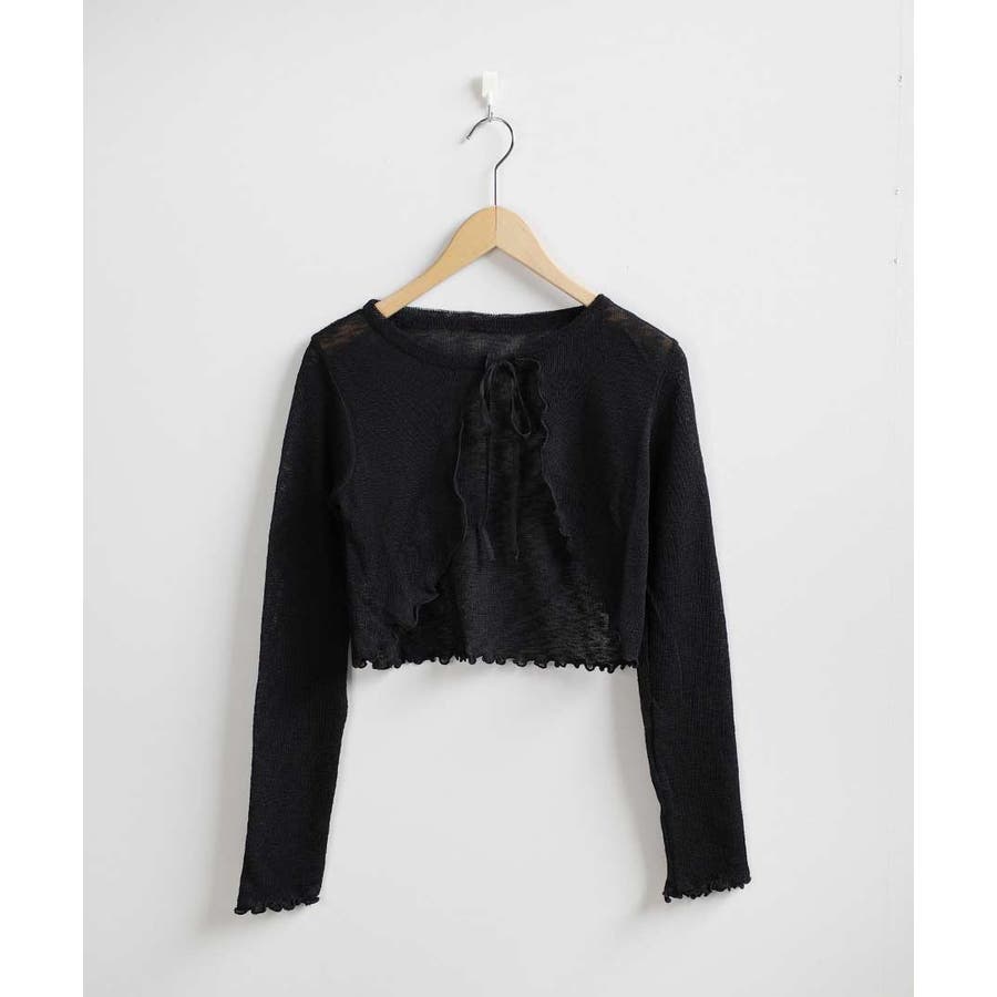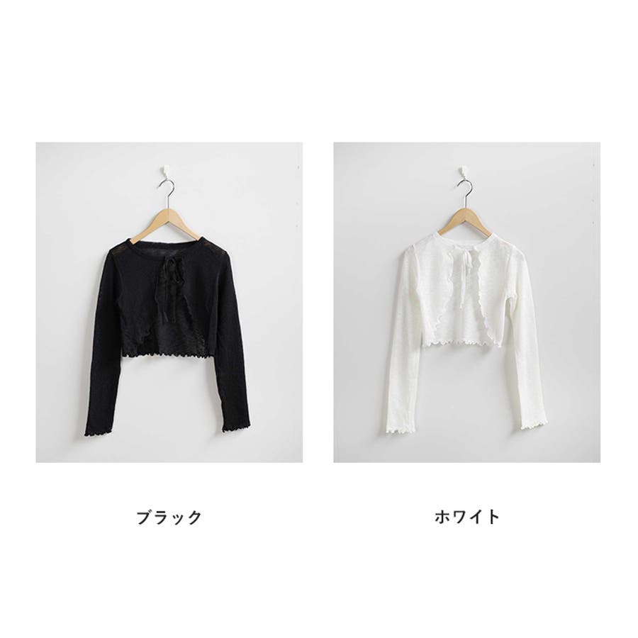 【ホワイト】冬新作 フロントリボン シアーボレロカーディガン