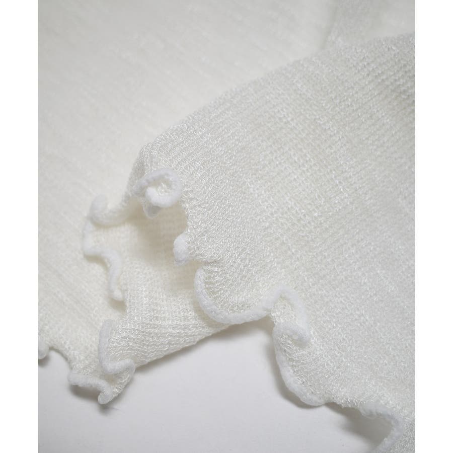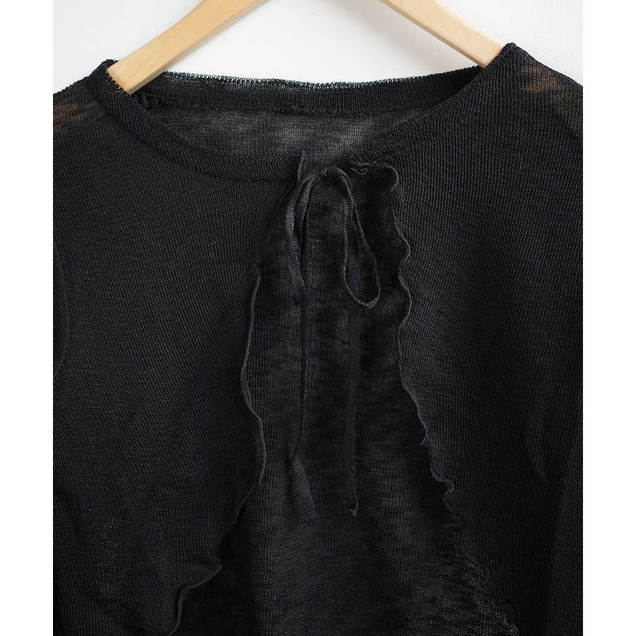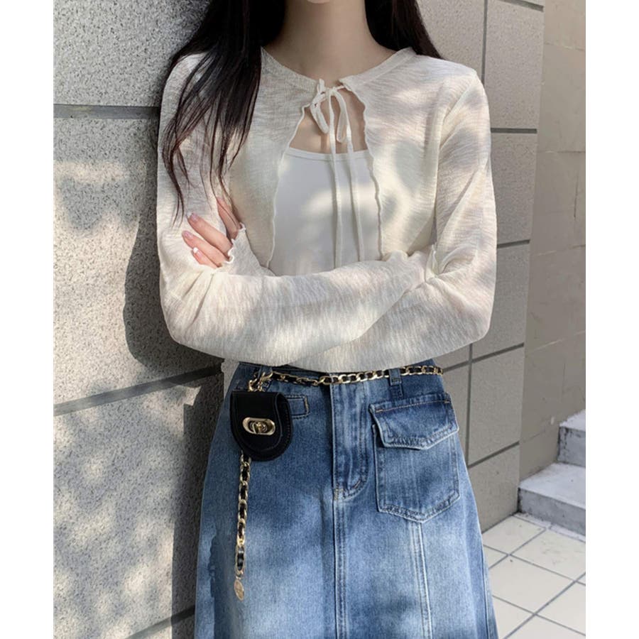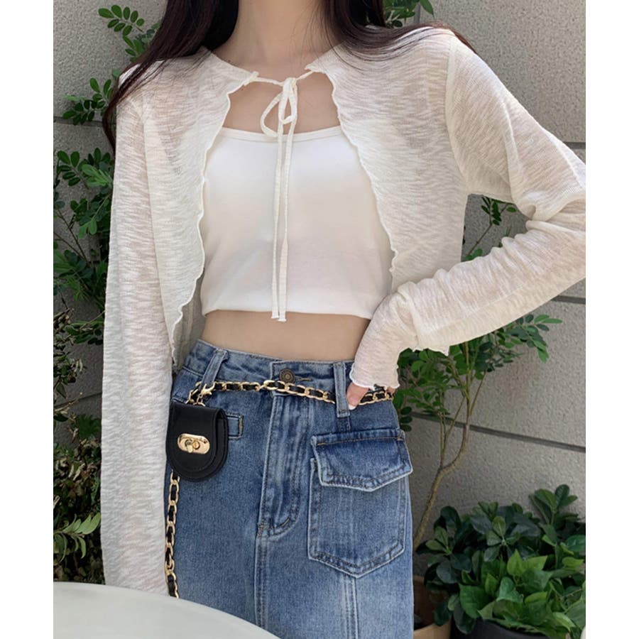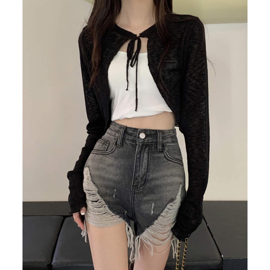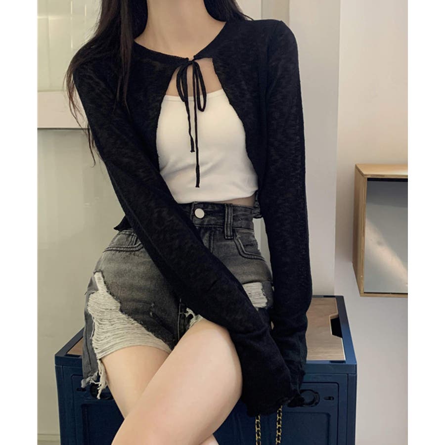 【ホワイト】冬新作 フロントリボン シアーボレロカーディガン