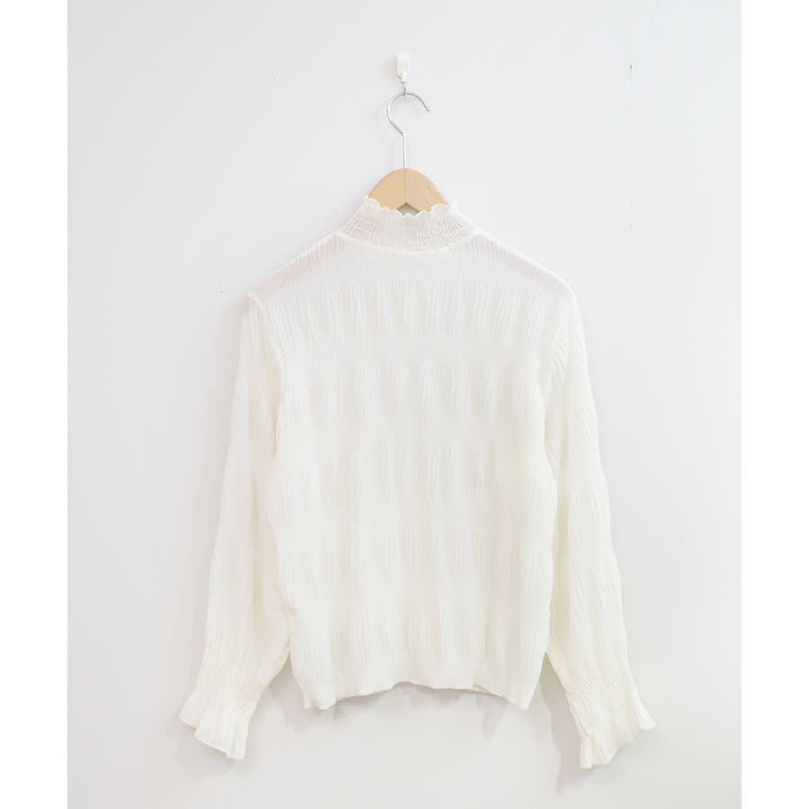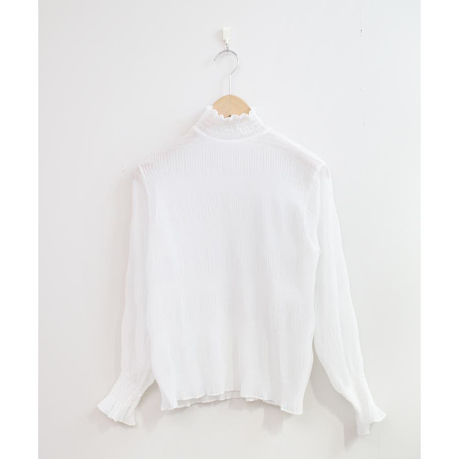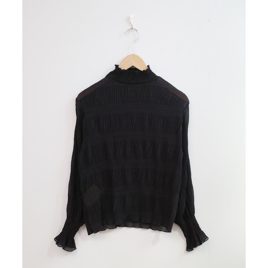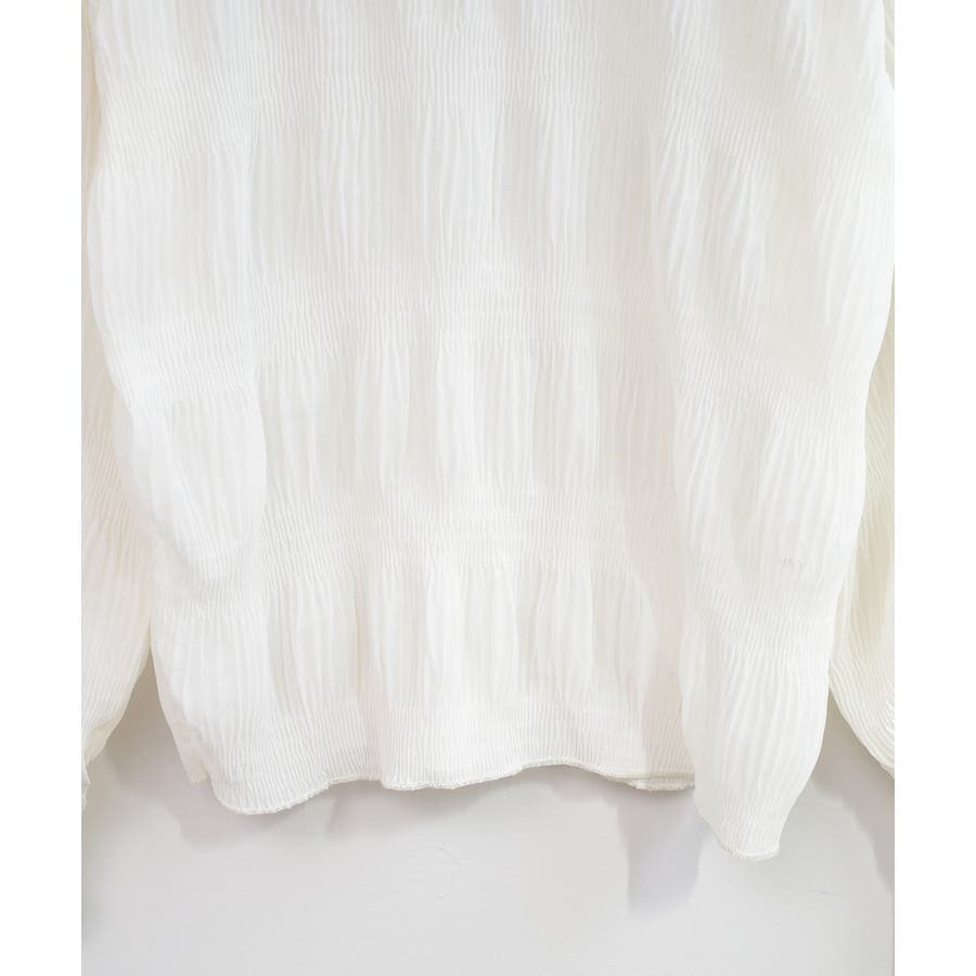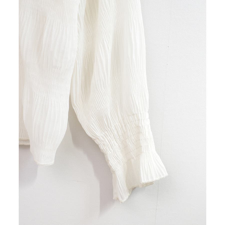 透け感のある細かなシャーリングが大人感を引き立てるブラウス。