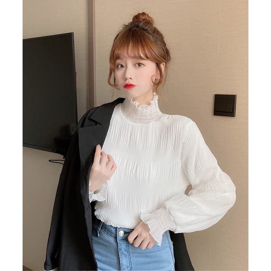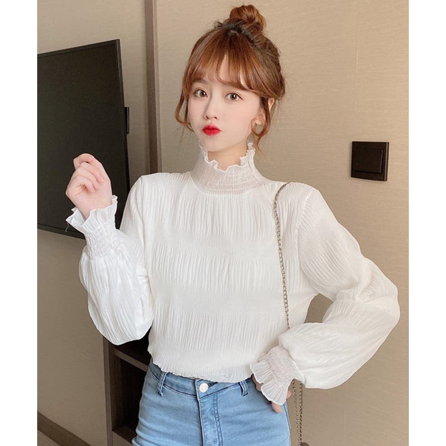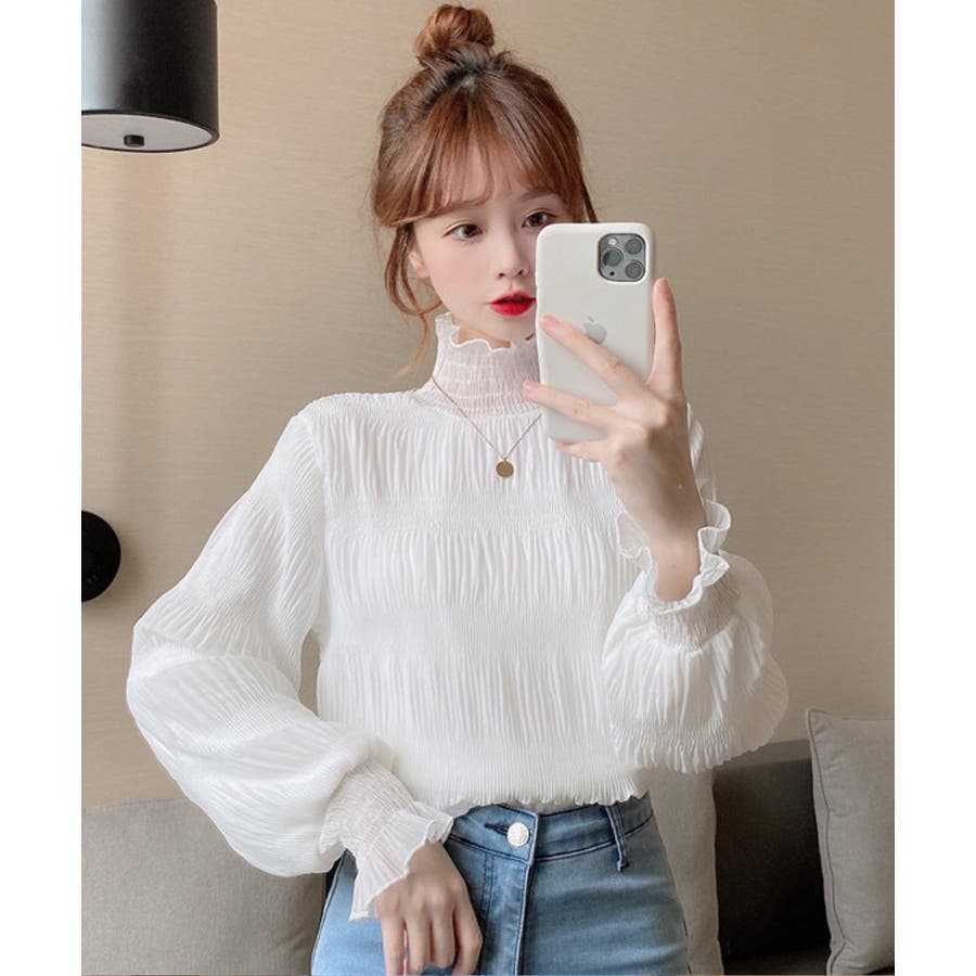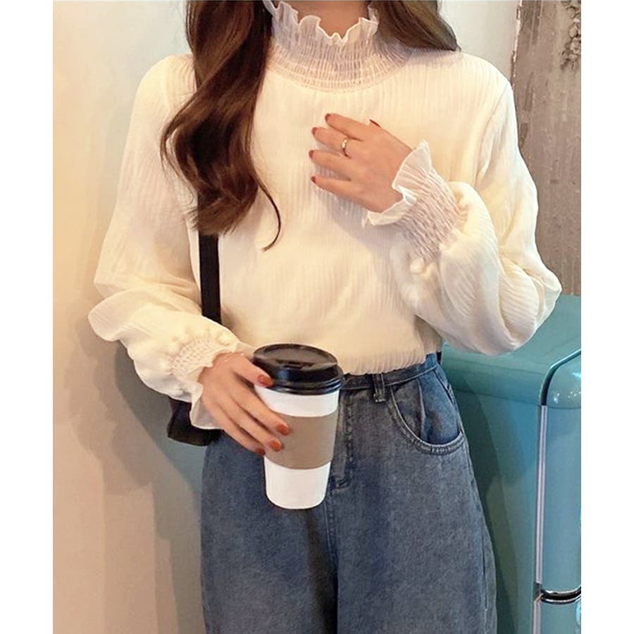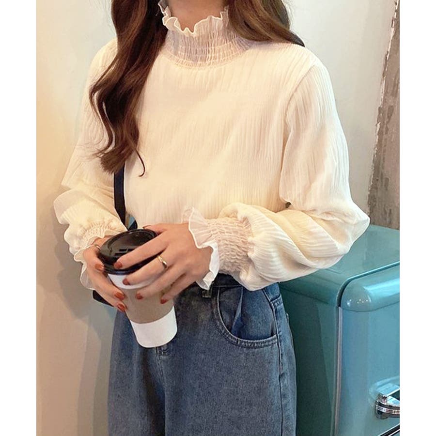 トレンドライクなギャザーデザインに首元と袖のフリルがポイント。