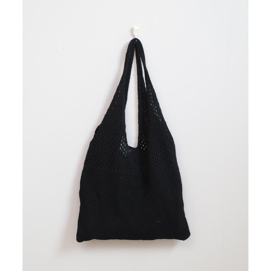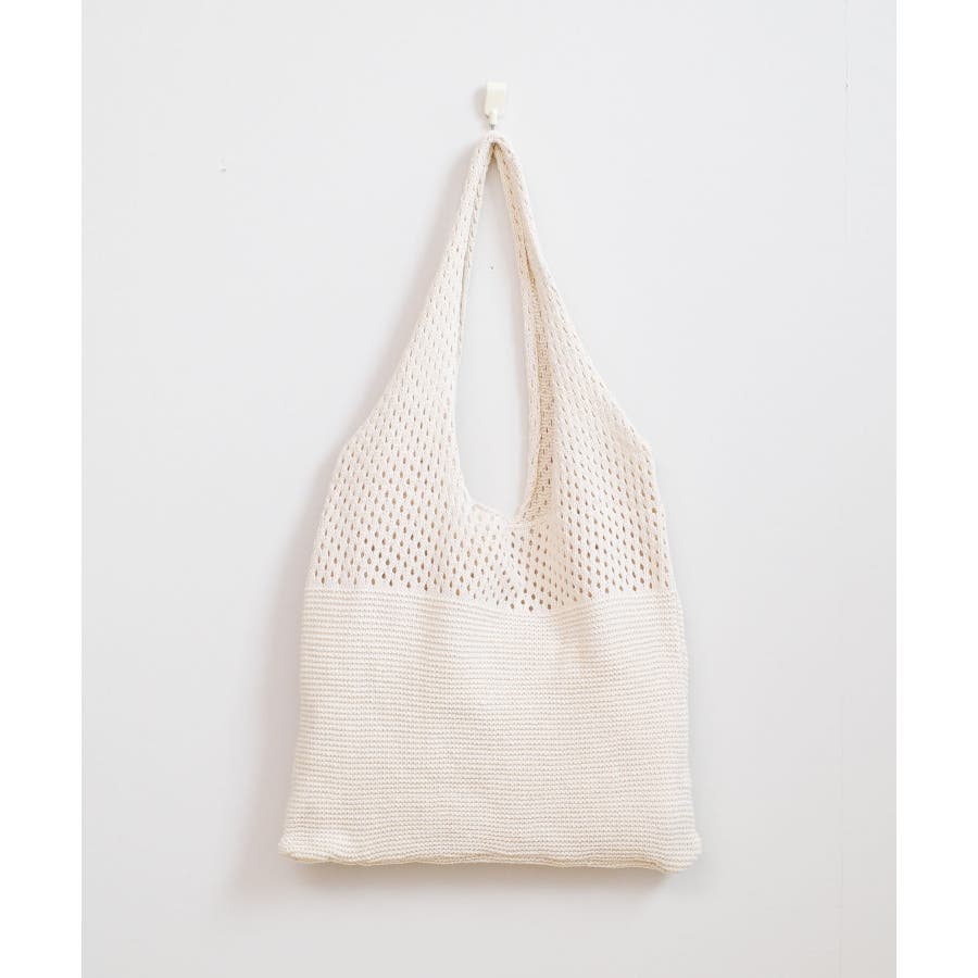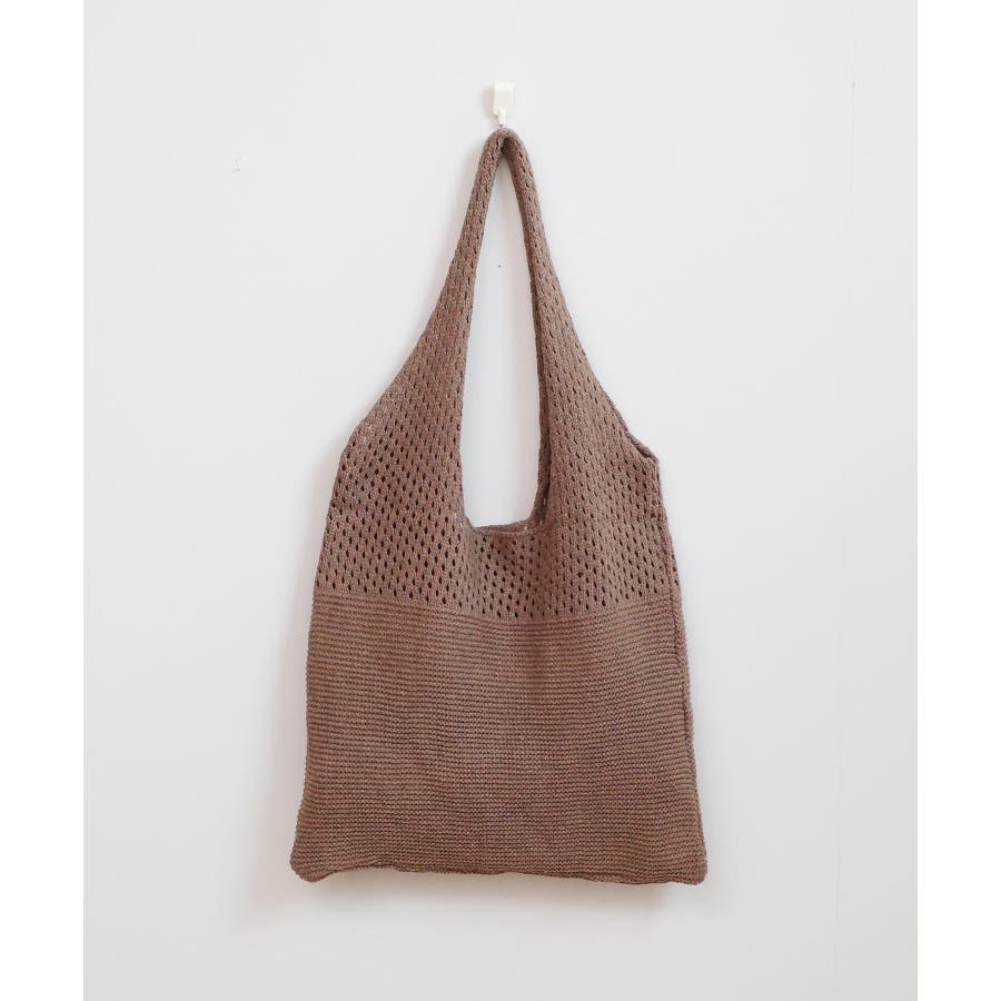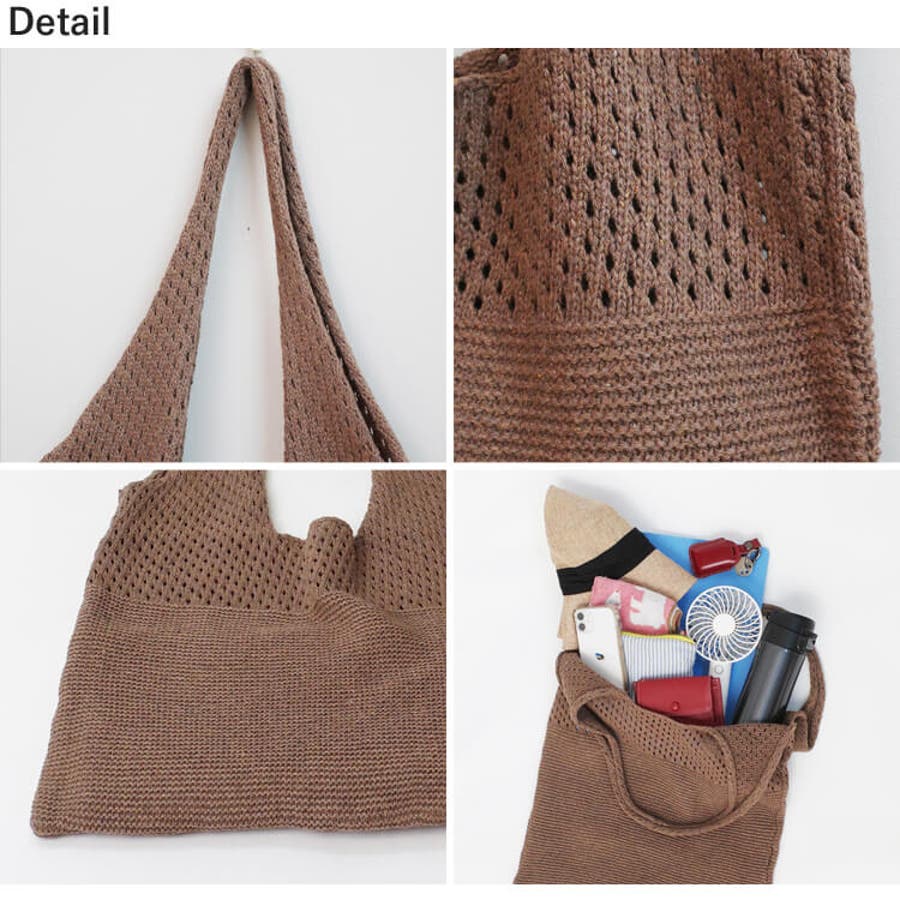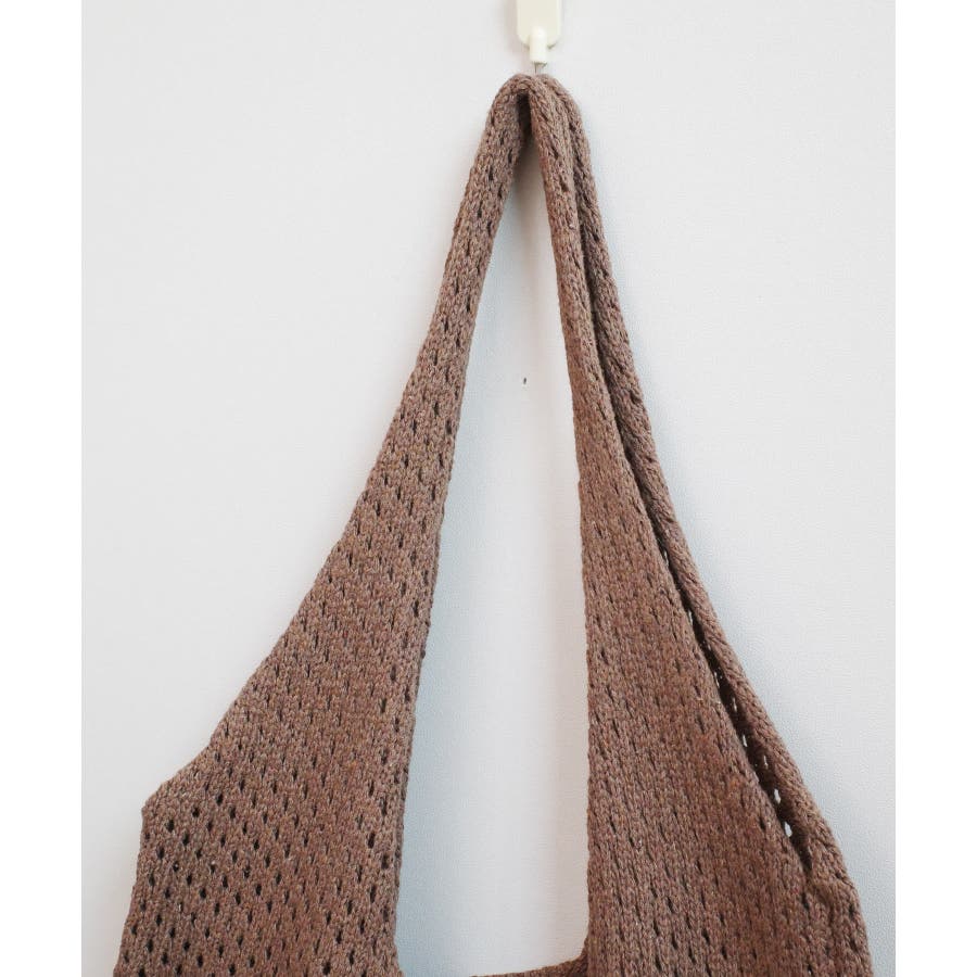 伸縮性のある柔らかなクロシェ編みトートバッグ。