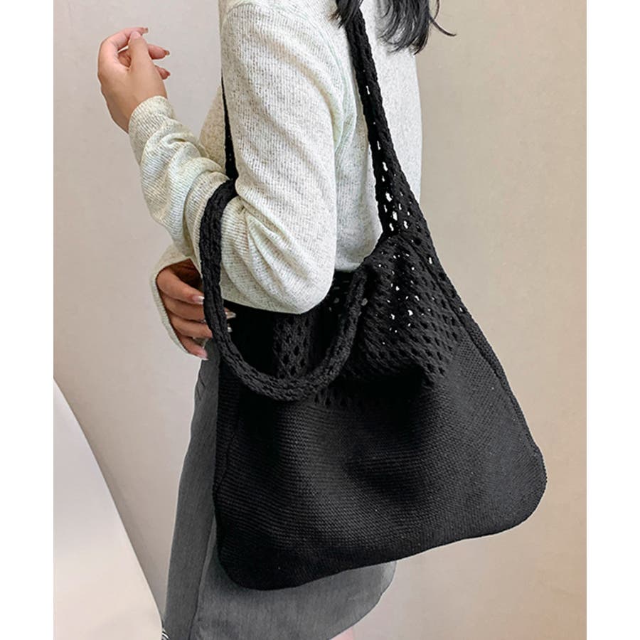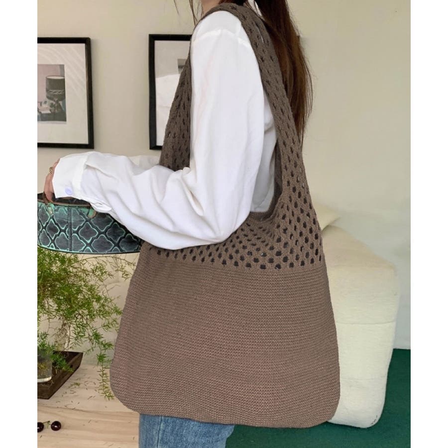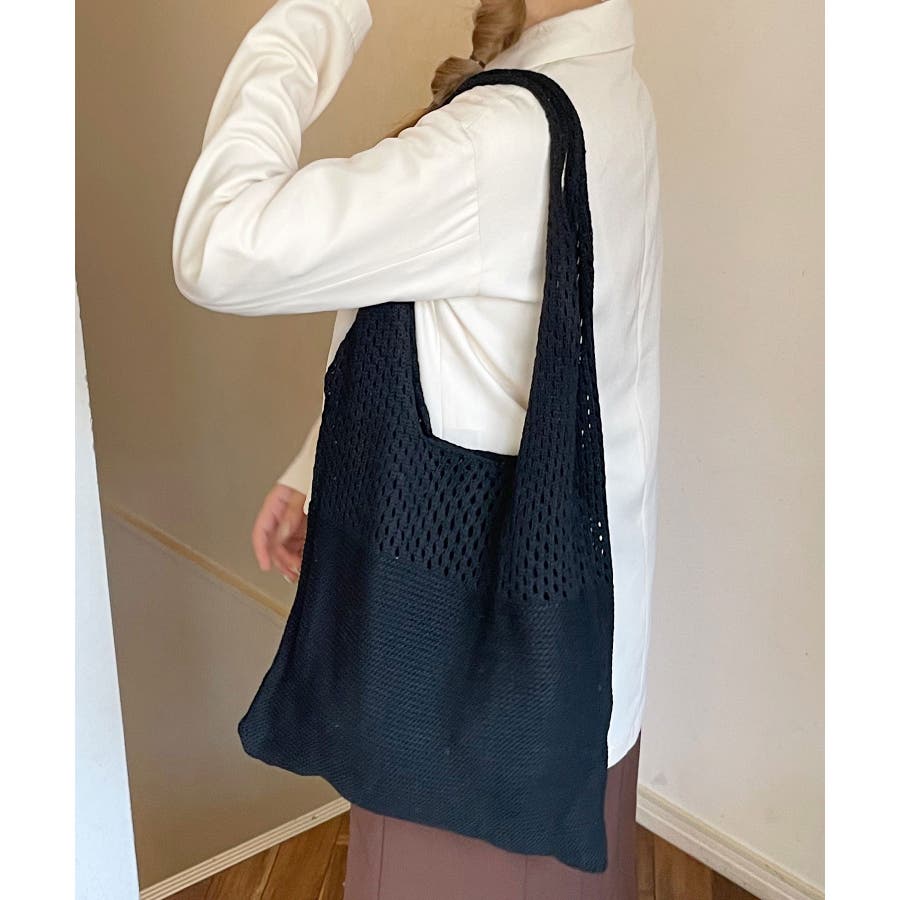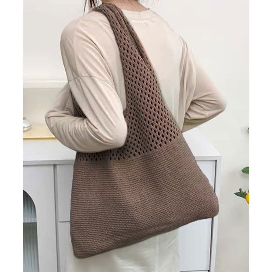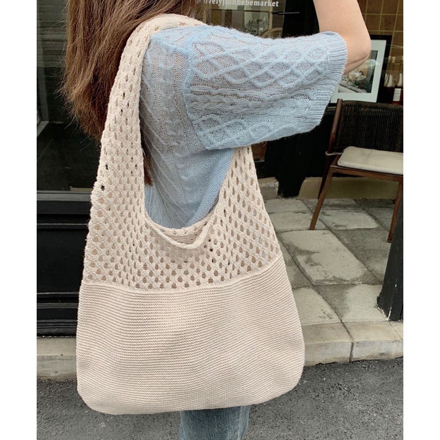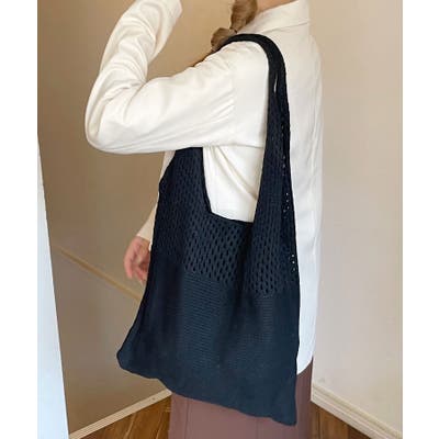 伸縮性のある柔らかなクロシェ編みトートバッグ。
