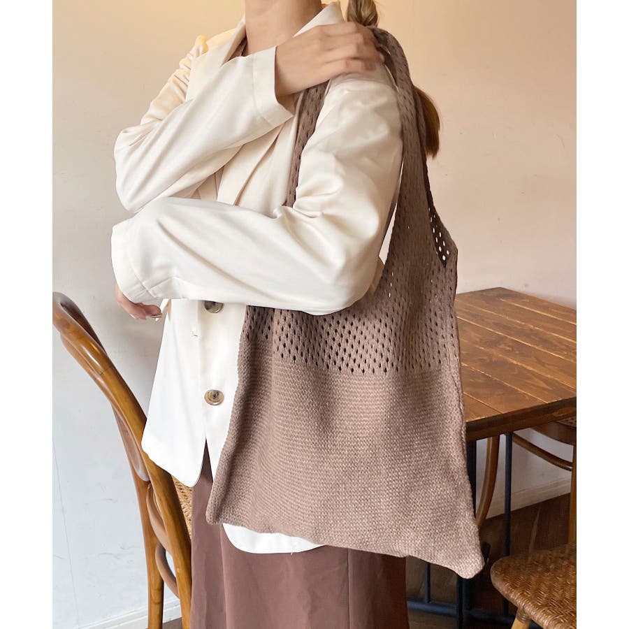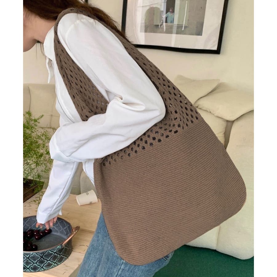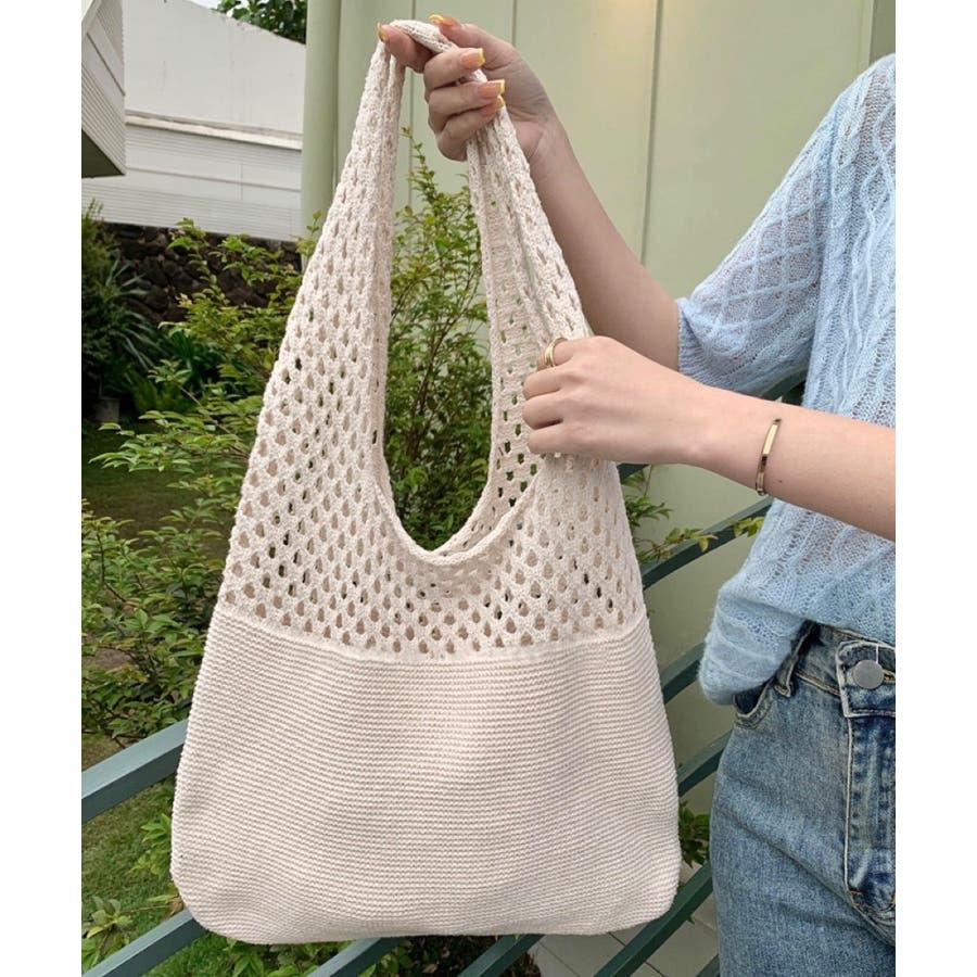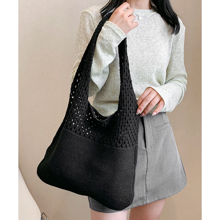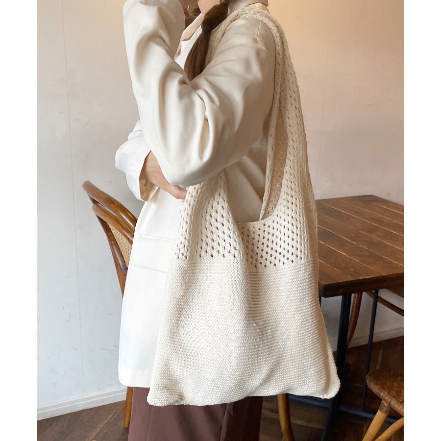 伸縮性のある柔らかなクロシェ編みトートバッグ。