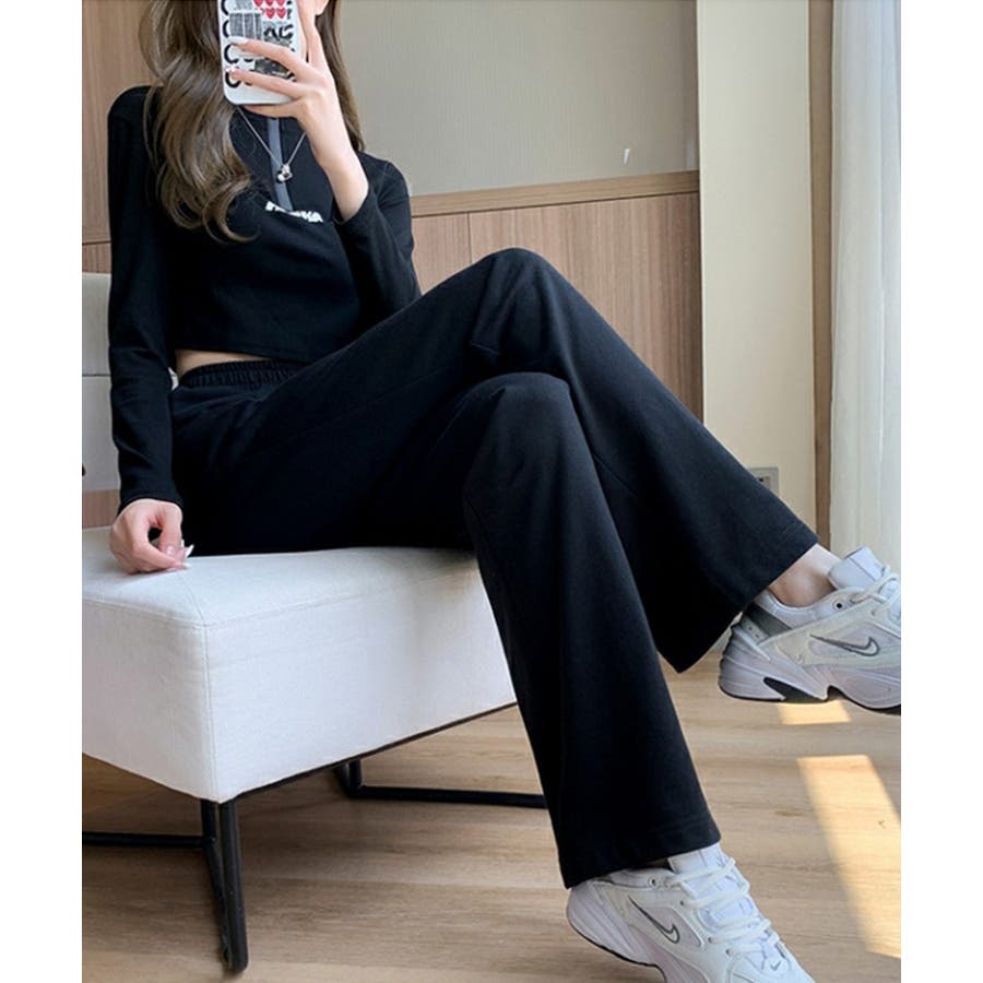 ハイウエストでクロップド丈との相性が良く脚長効果、スタイルアップが叶います。