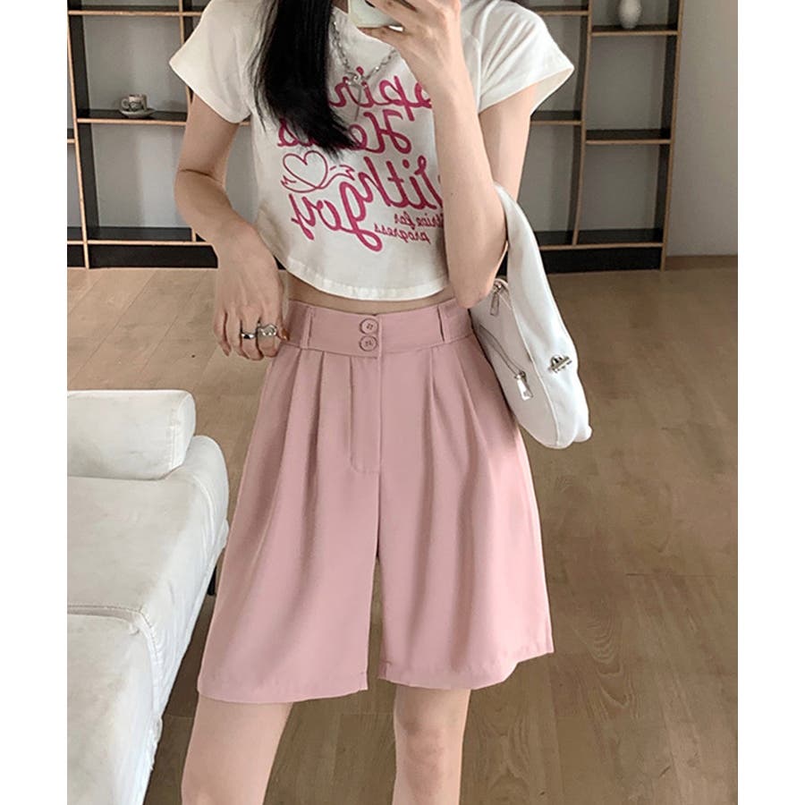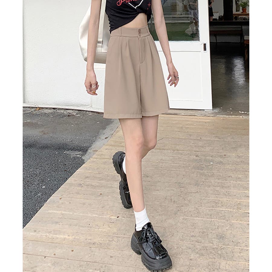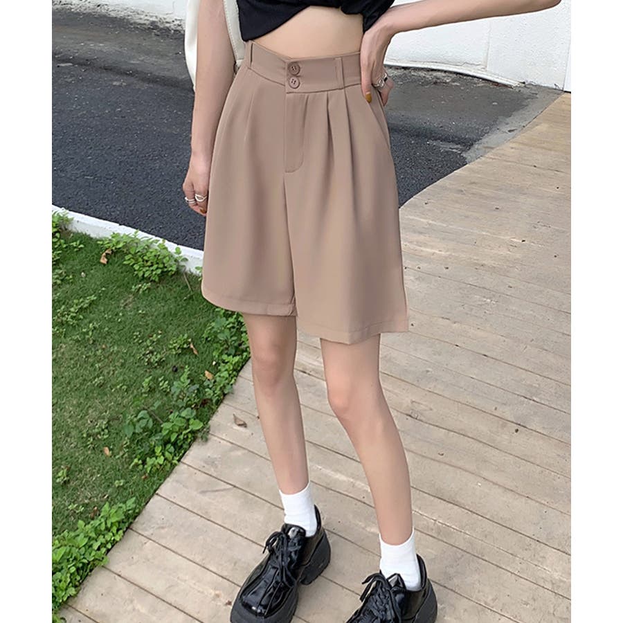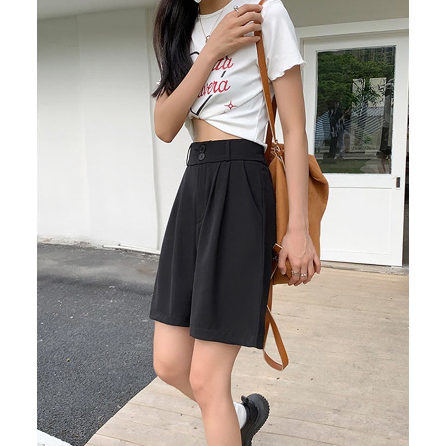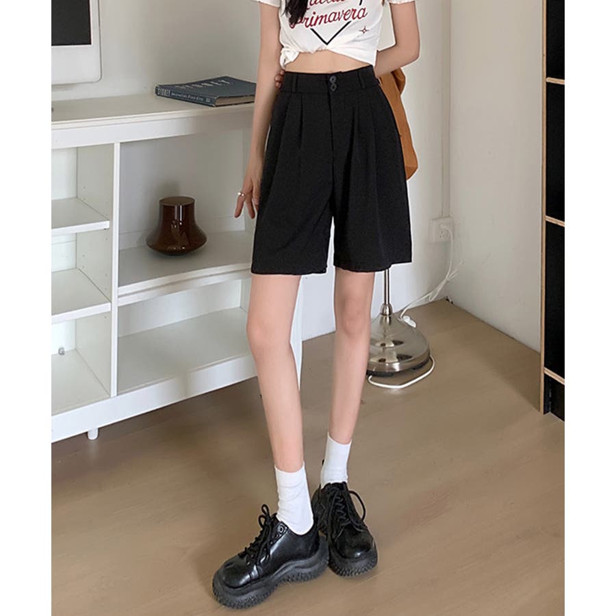 トレンド感のあるおしゃれな韓国風タックハーフパンツ。