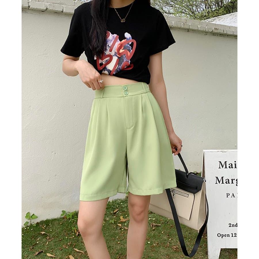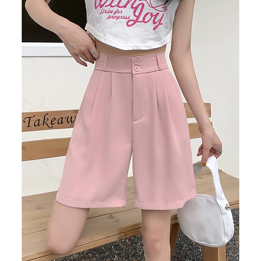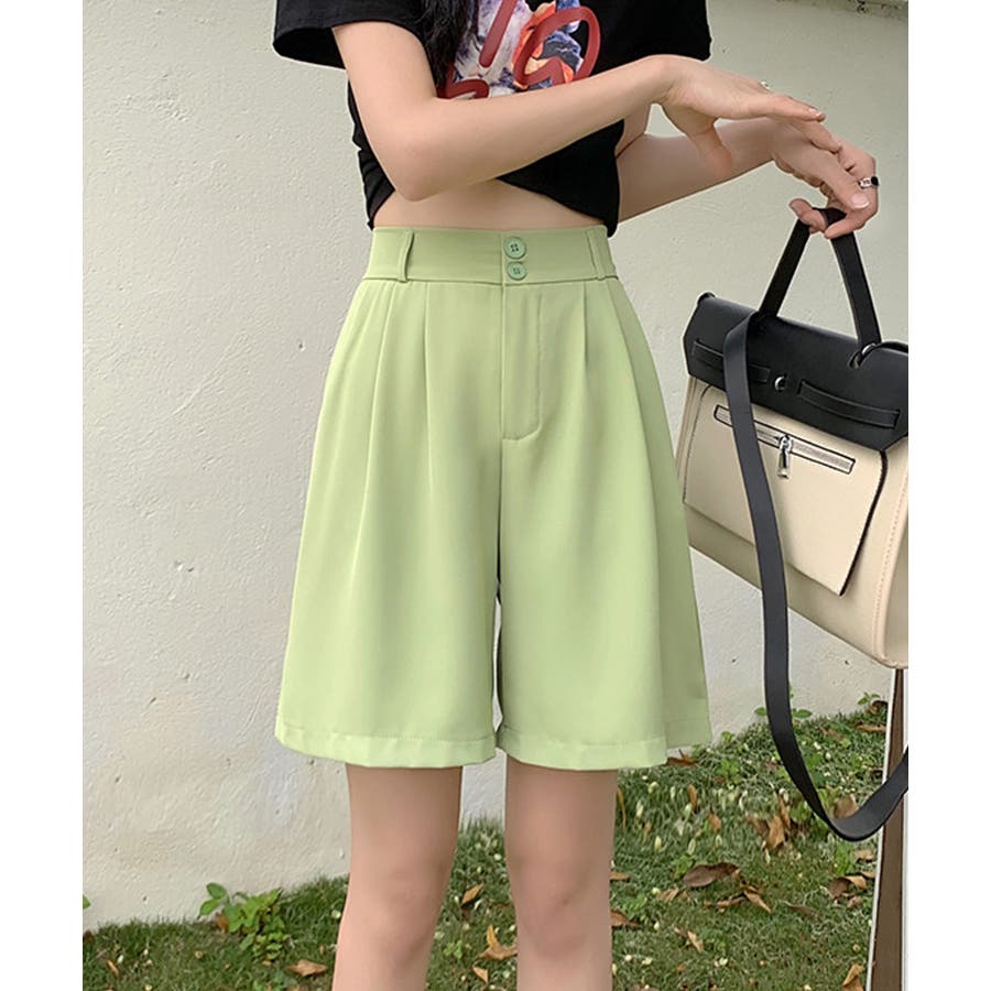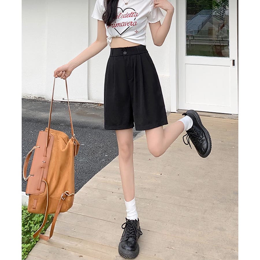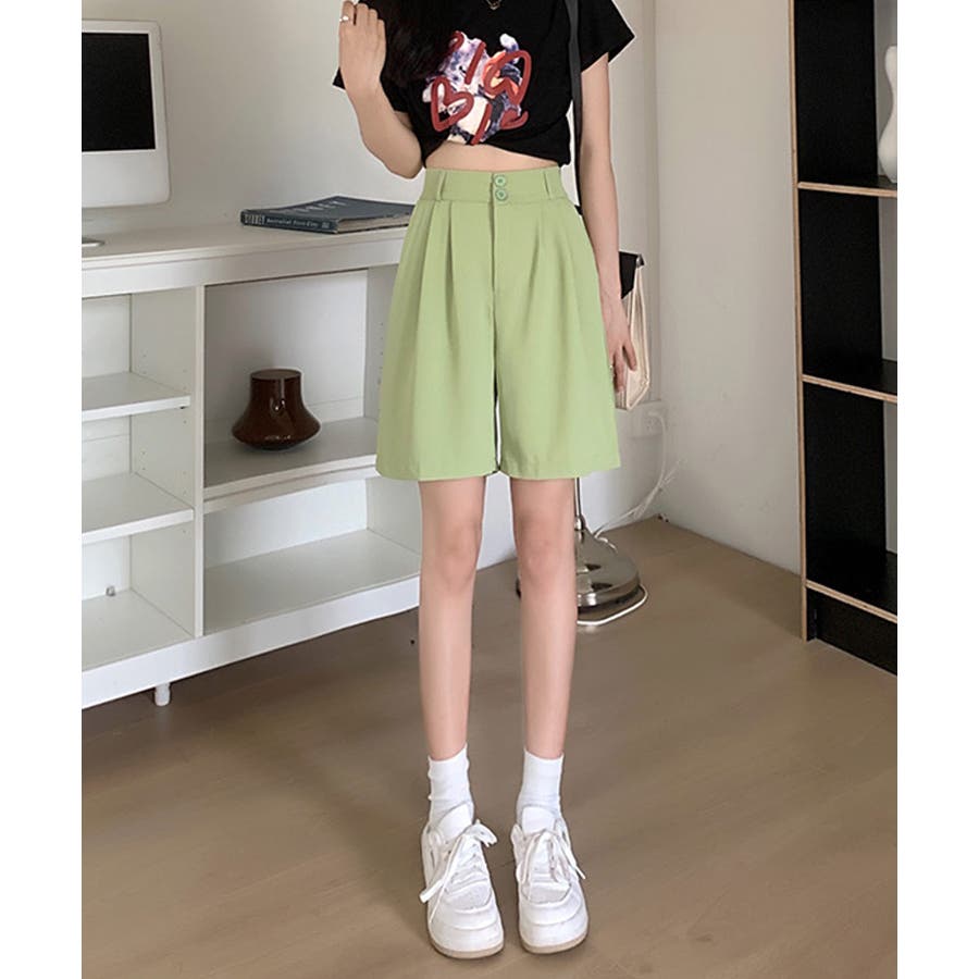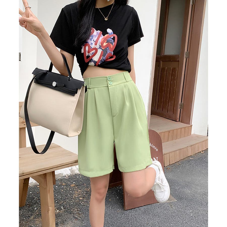 トレンド感のあるおしゃれな韓国風タックハーフパンツ。
