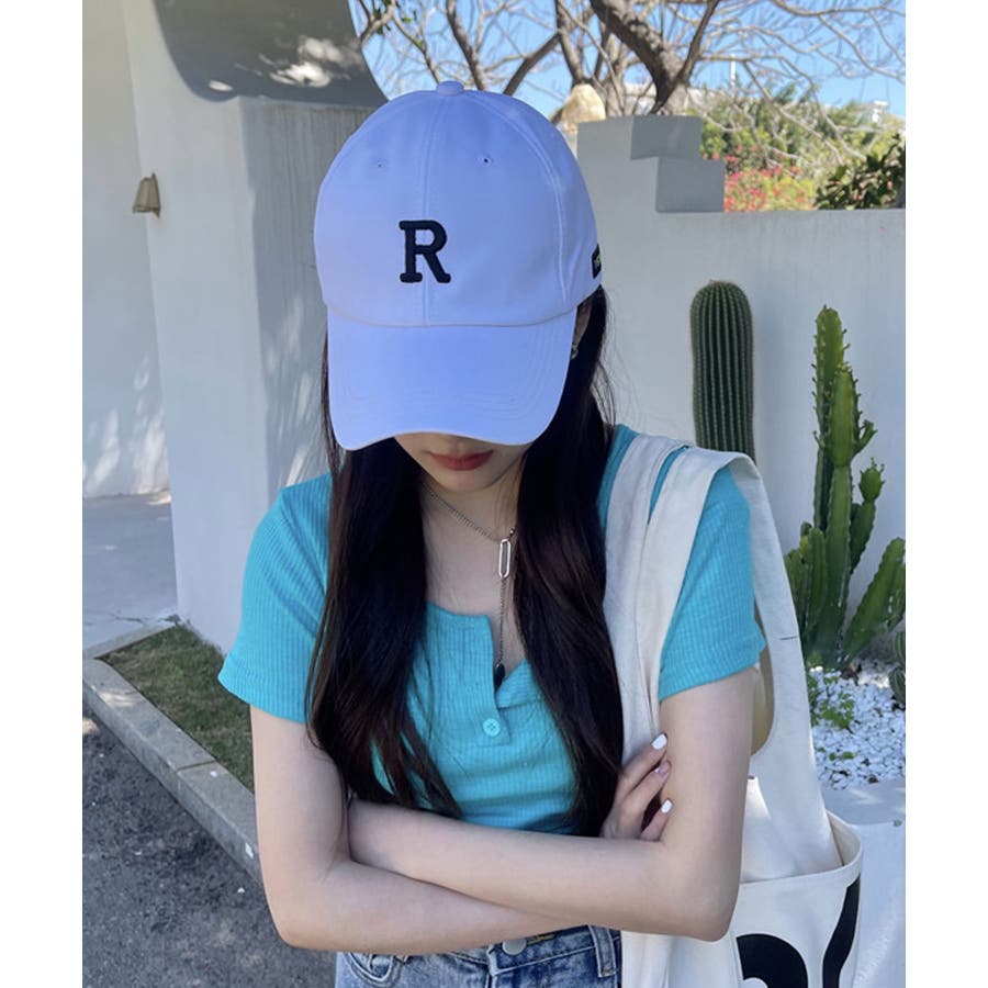 Rロゴ刺繍がポイントになった韓国っぽベーシックキャップ。