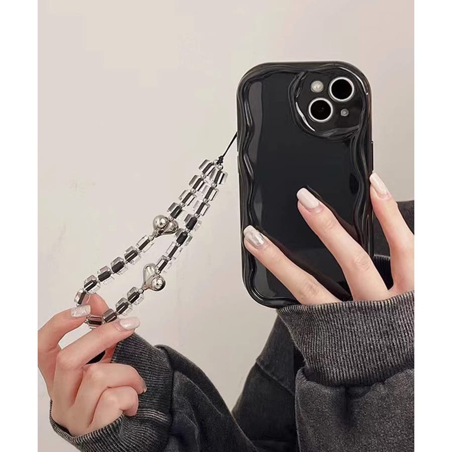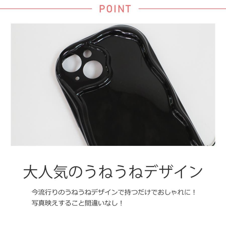 流行りのウェーブのようなうねうねフレームがかわいいiPhoneケース。