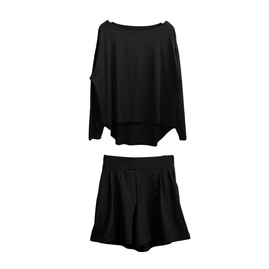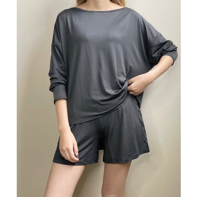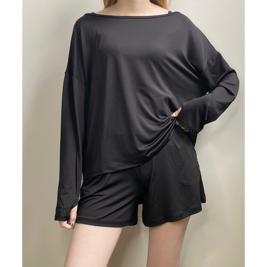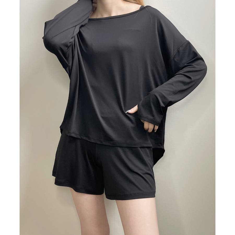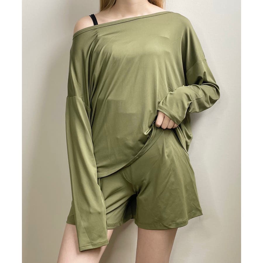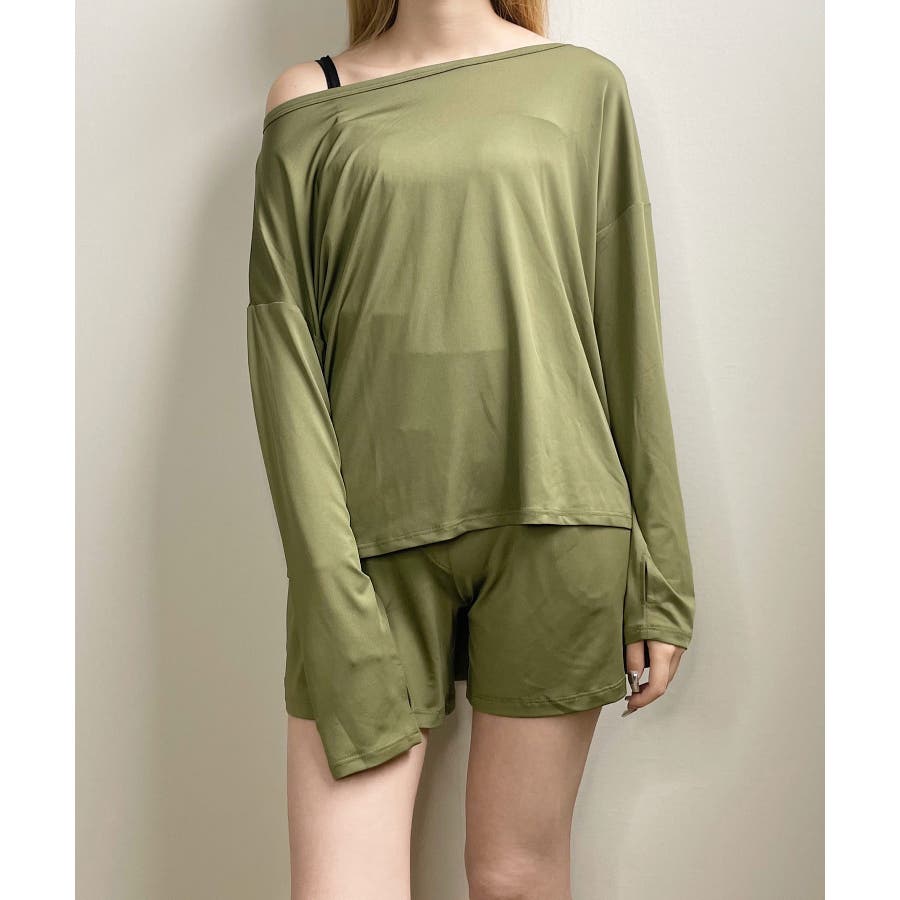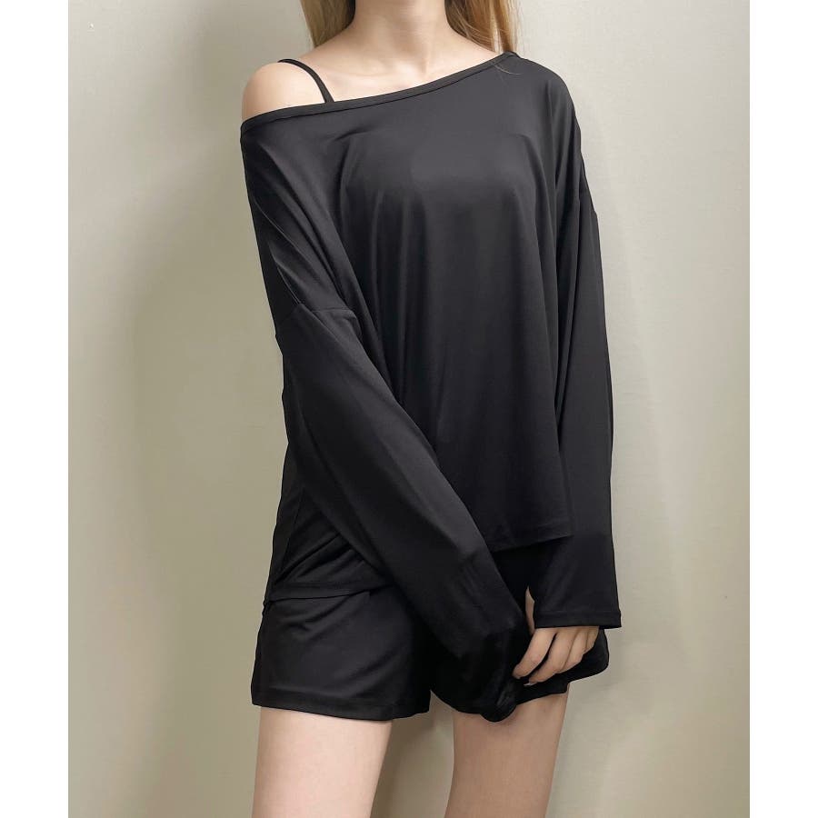 ゆっったりとしたオフショルで身体のラインを拾わず着やすい1枚。