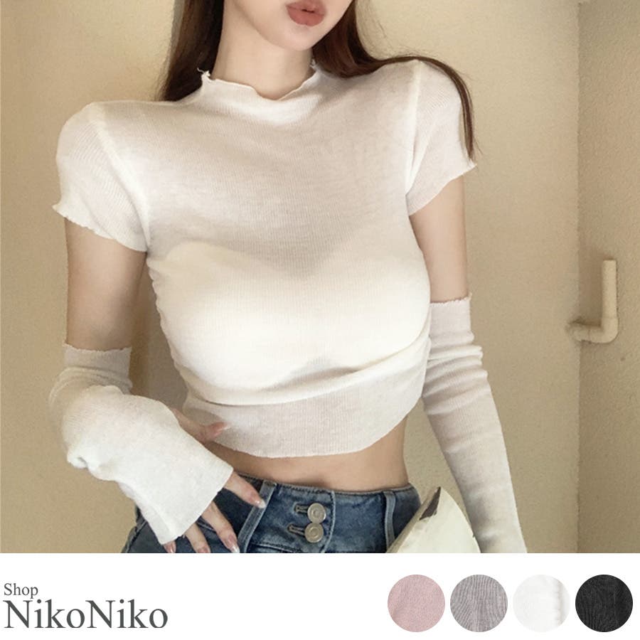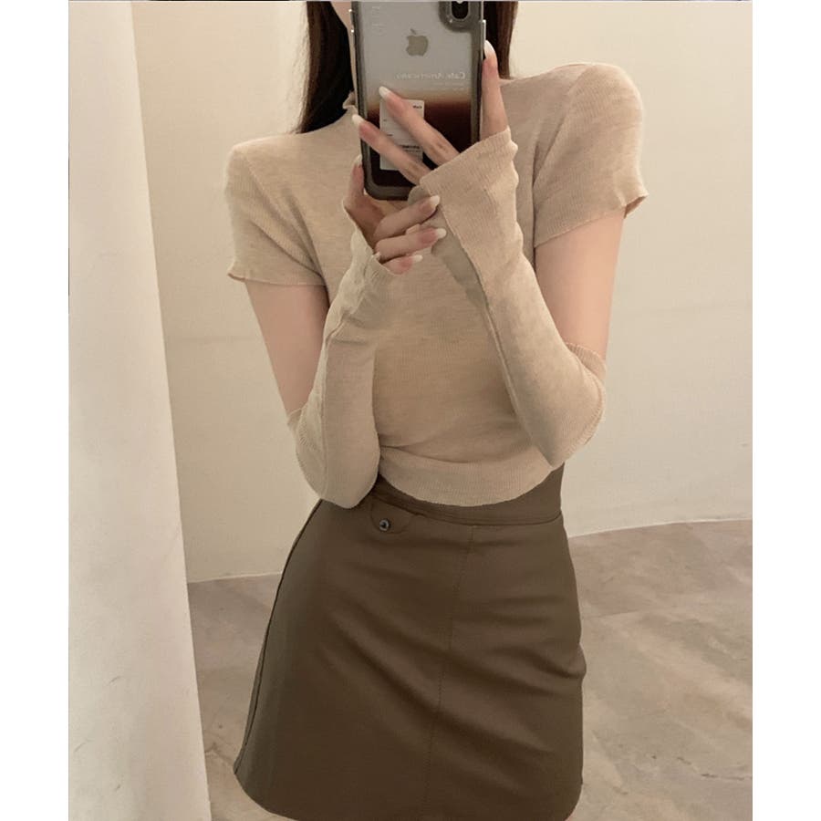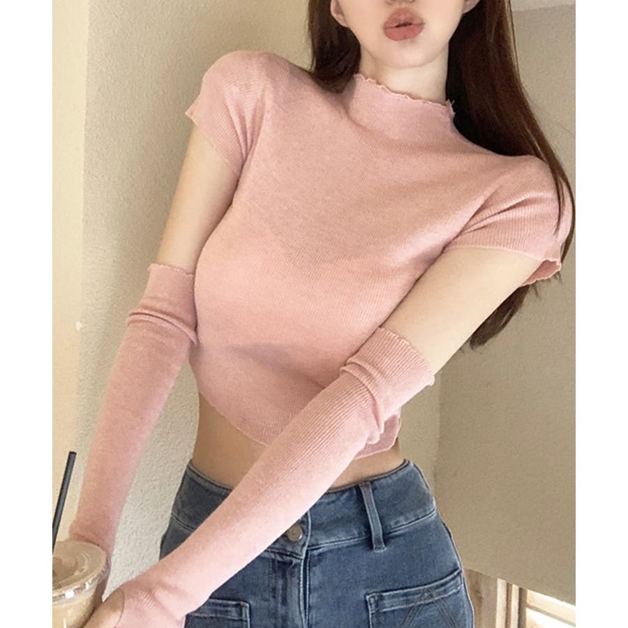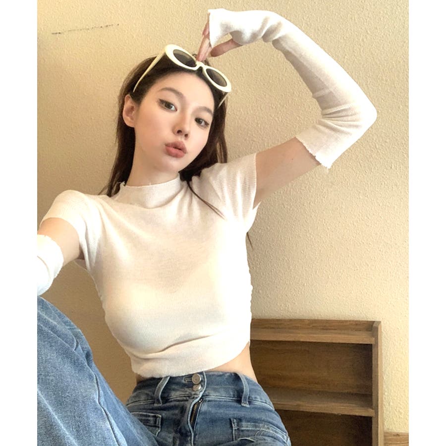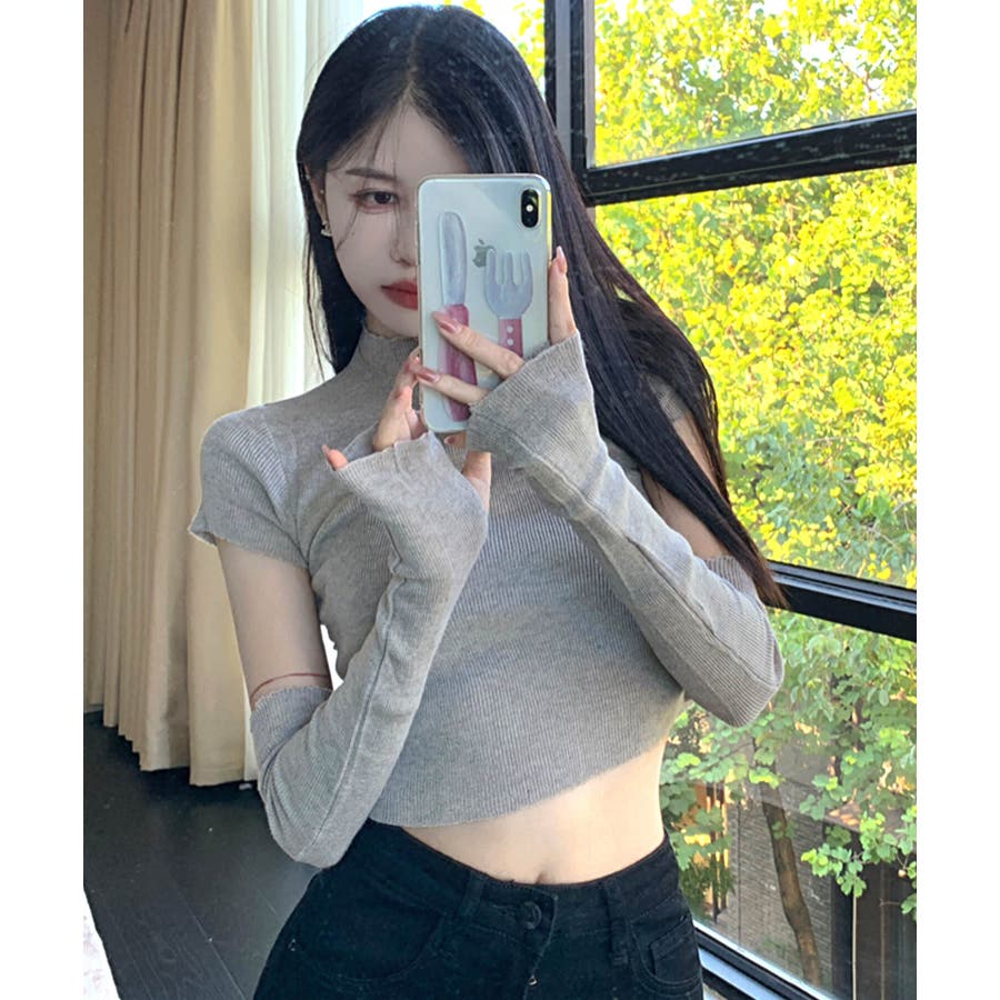 冬新作 アームカバー付き クロップド丈トップス