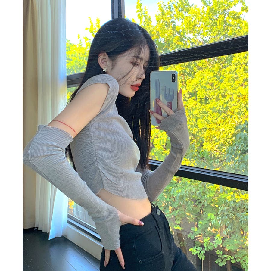 今流行りの韓国風アームカバー付きトップス。