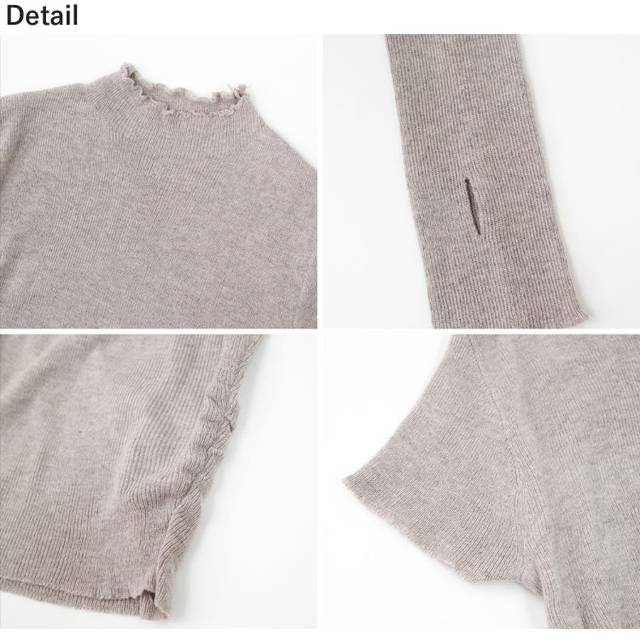 首元はロックミシンをかけたメロウ加工で女性らしいデザインに。