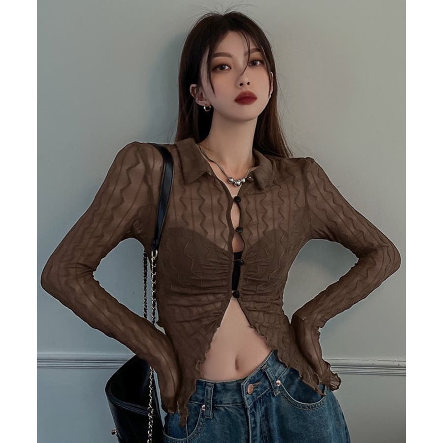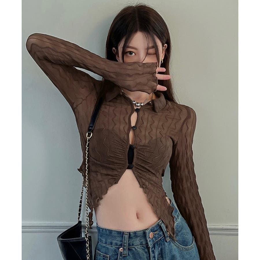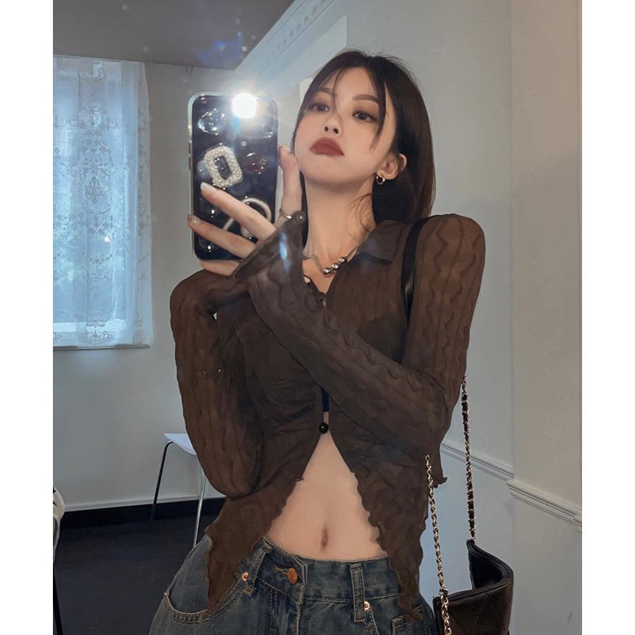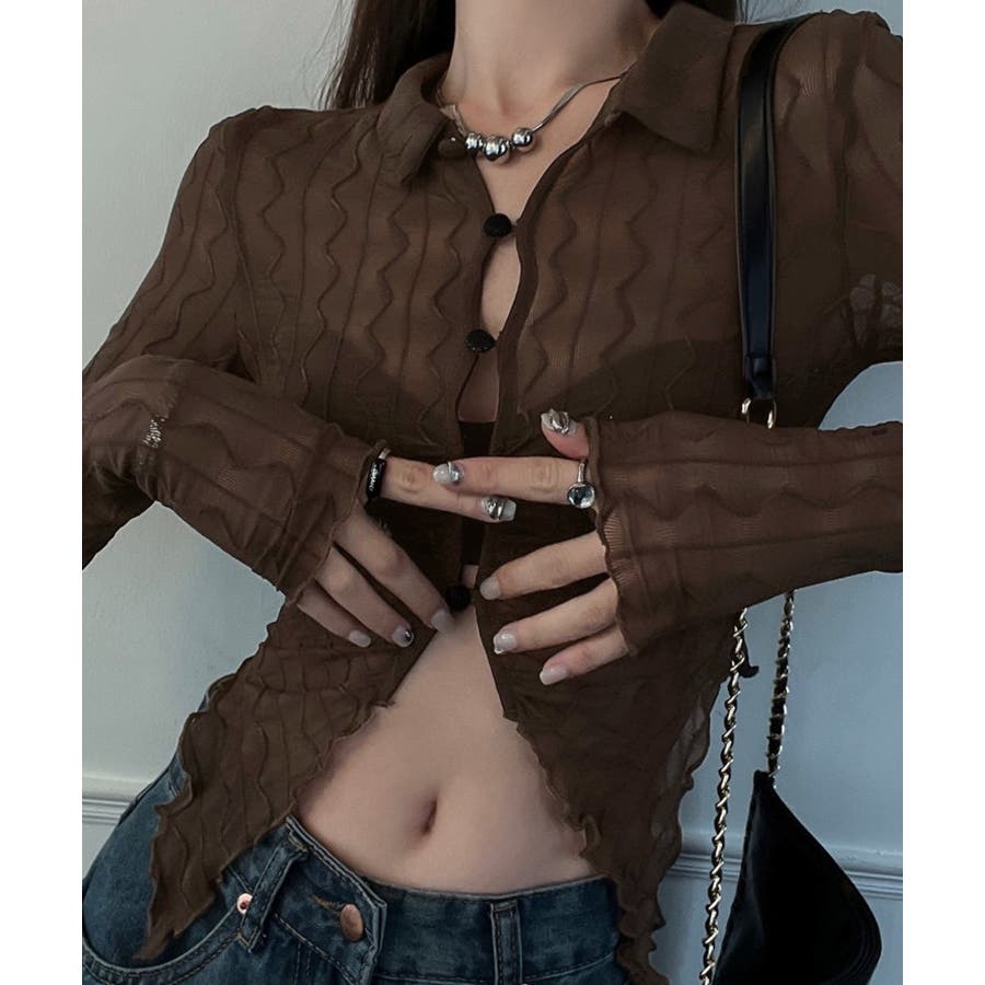 うねうね模様のデザインが目を惹くシアーカーディガン。