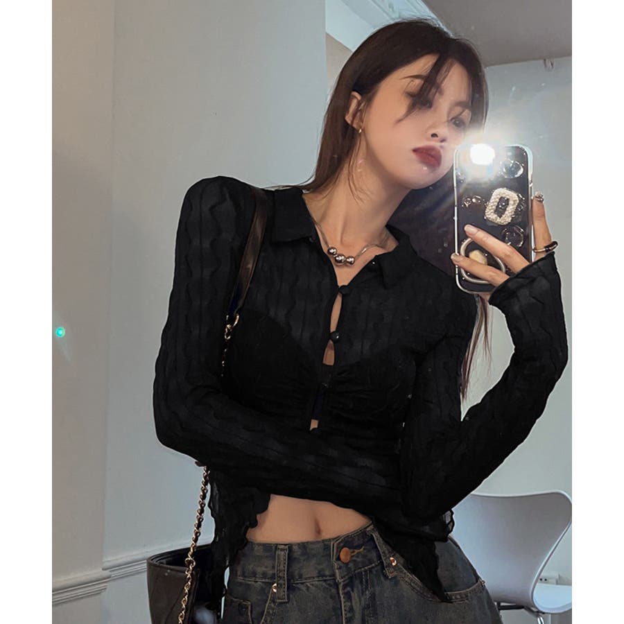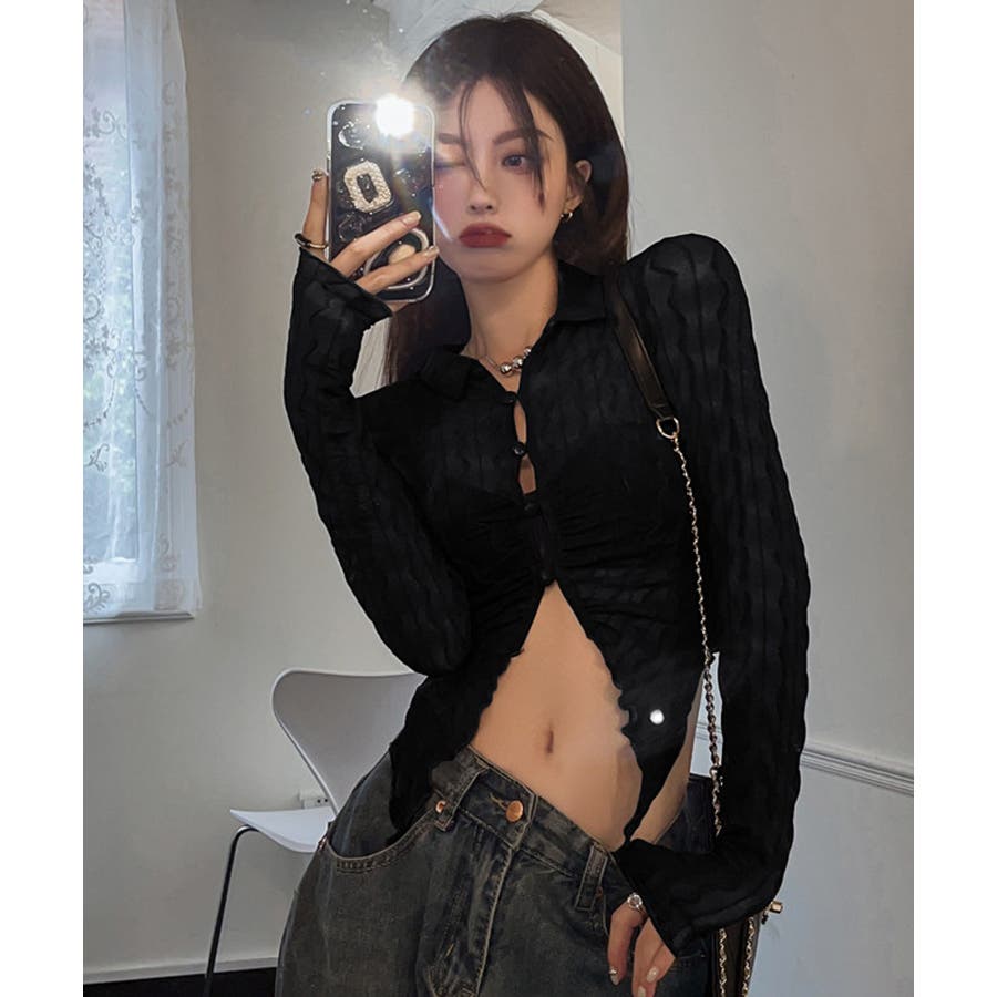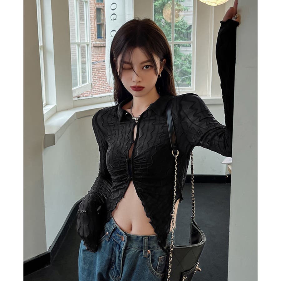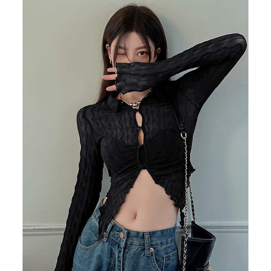 うねうね模様のデザインが目を惹くシアーカーディガン。