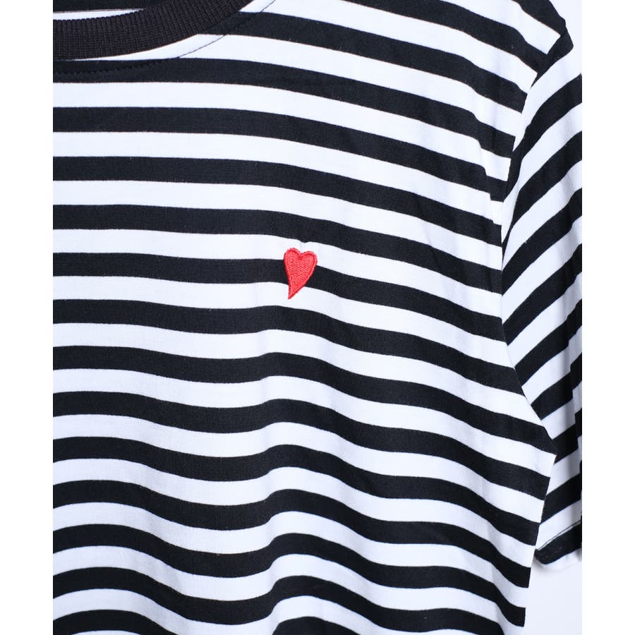 胸元のに施されたハートロゴ刺繍がポイント。
