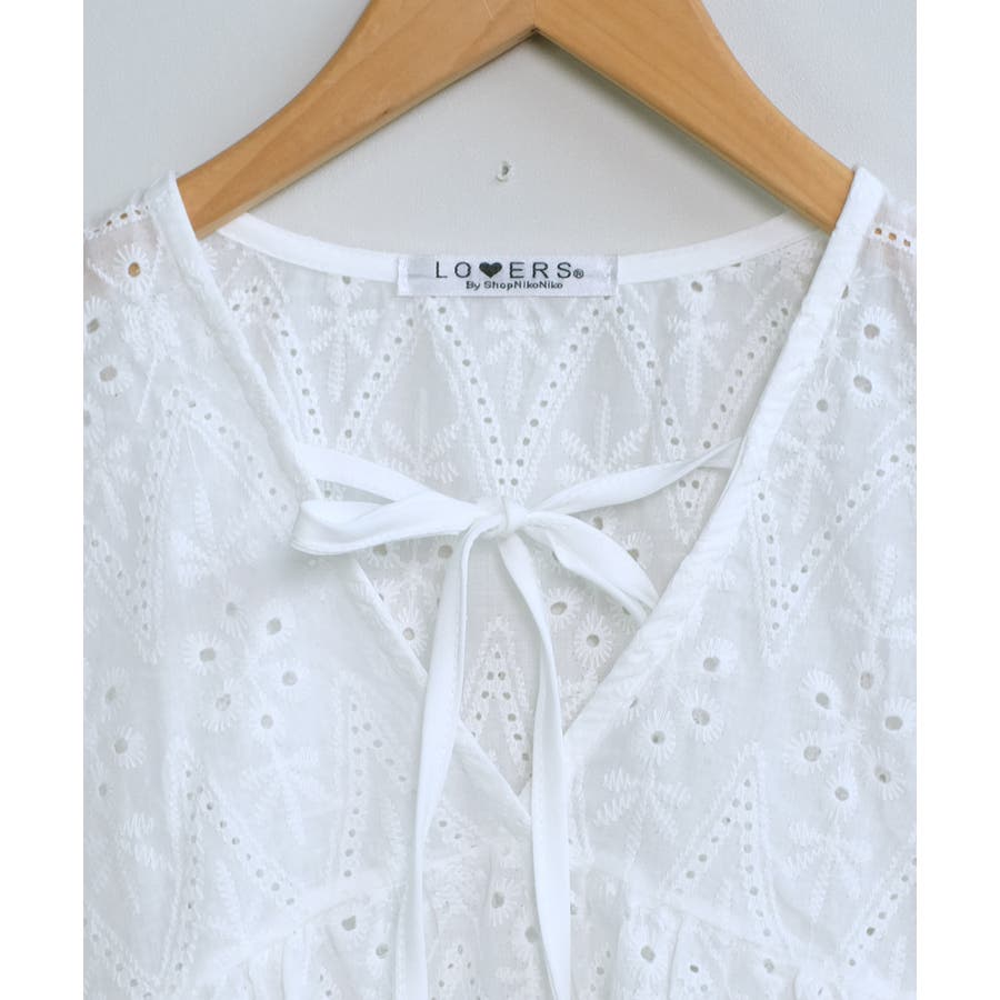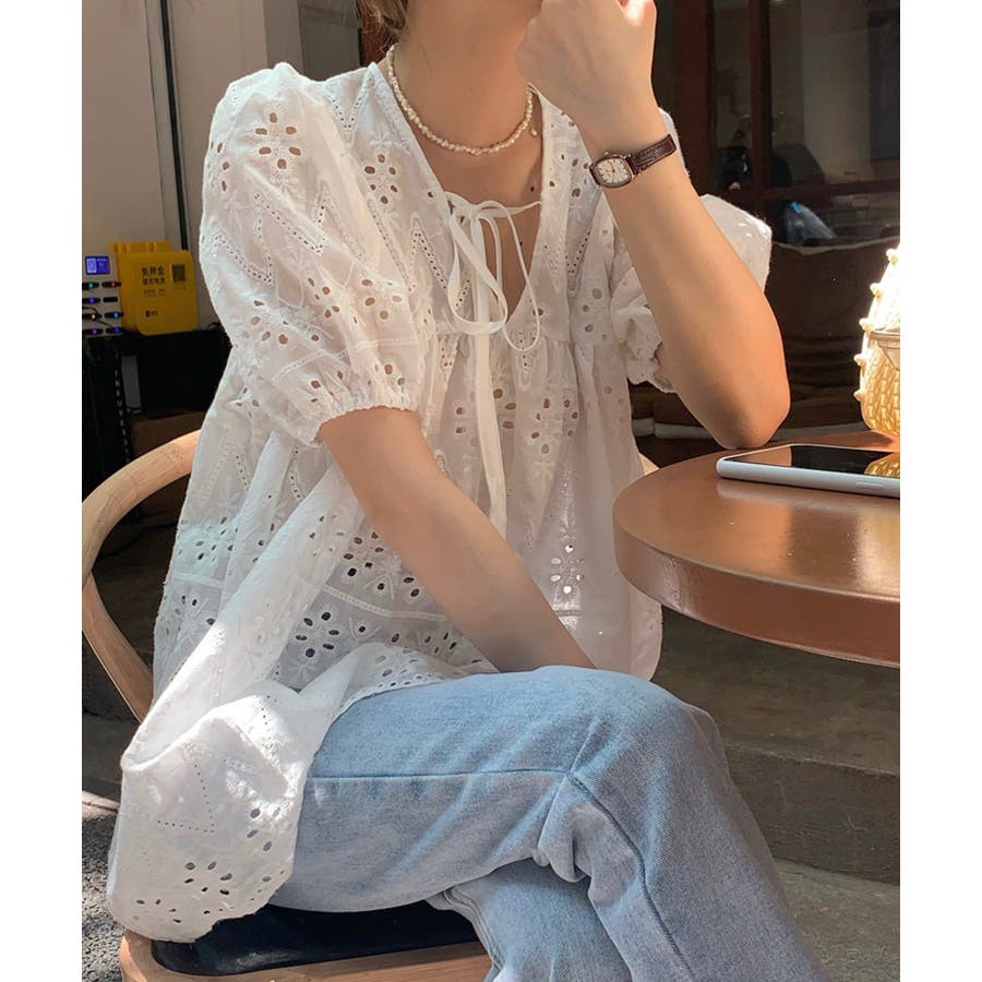 繊細なレース刺繍が魅力的な韓国っぽチュニックブラウス。