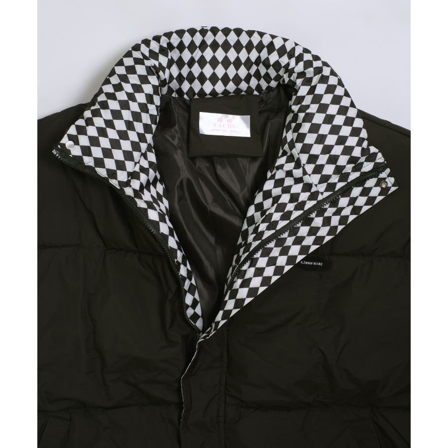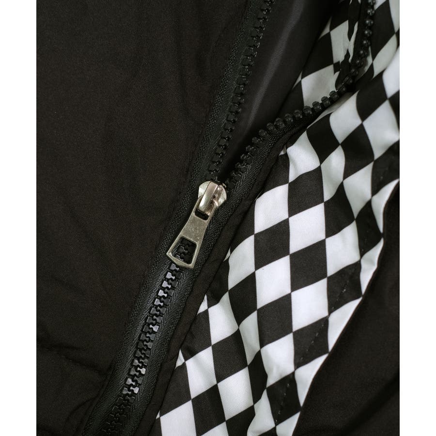 ジップを開けて着るとブロックチェックが見えるので