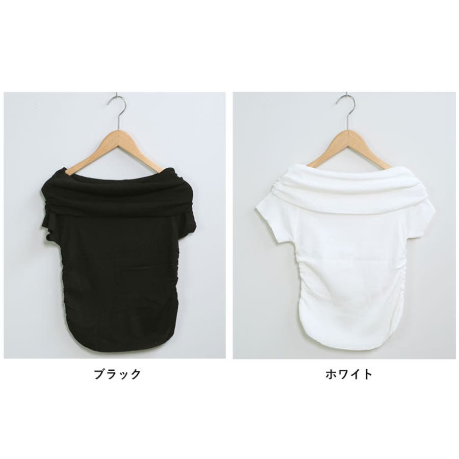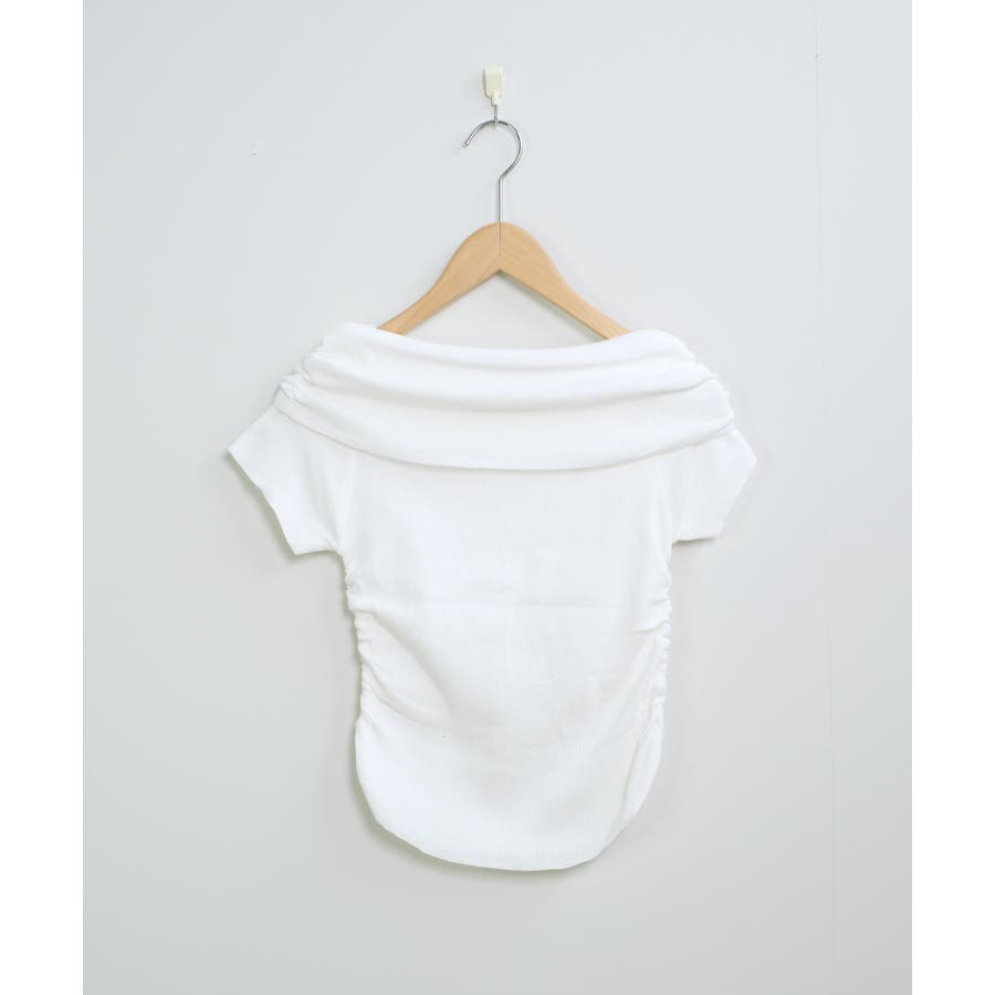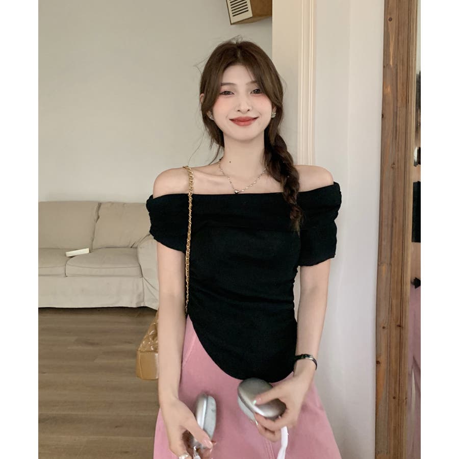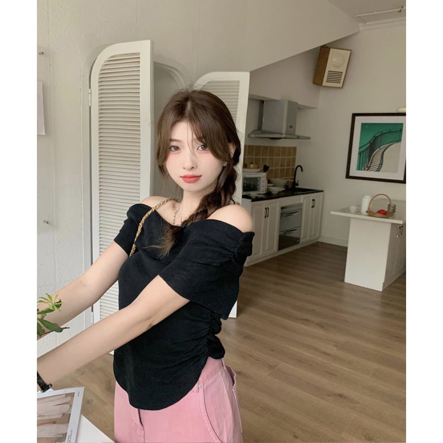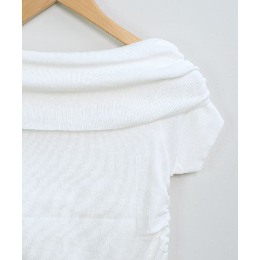 【ホワイト】春新作 サイドギャザー オフショルダー