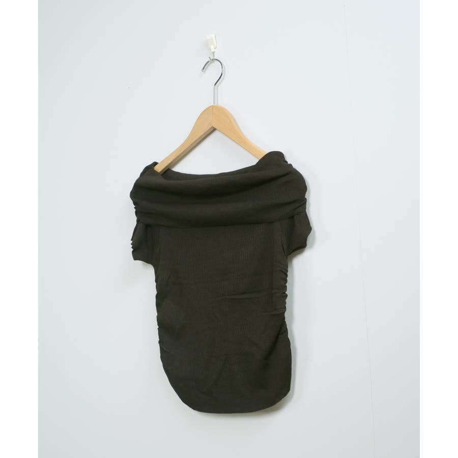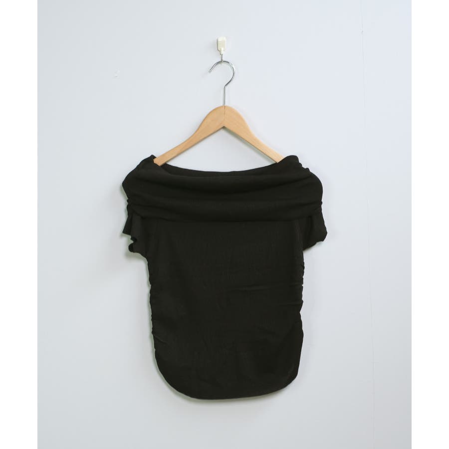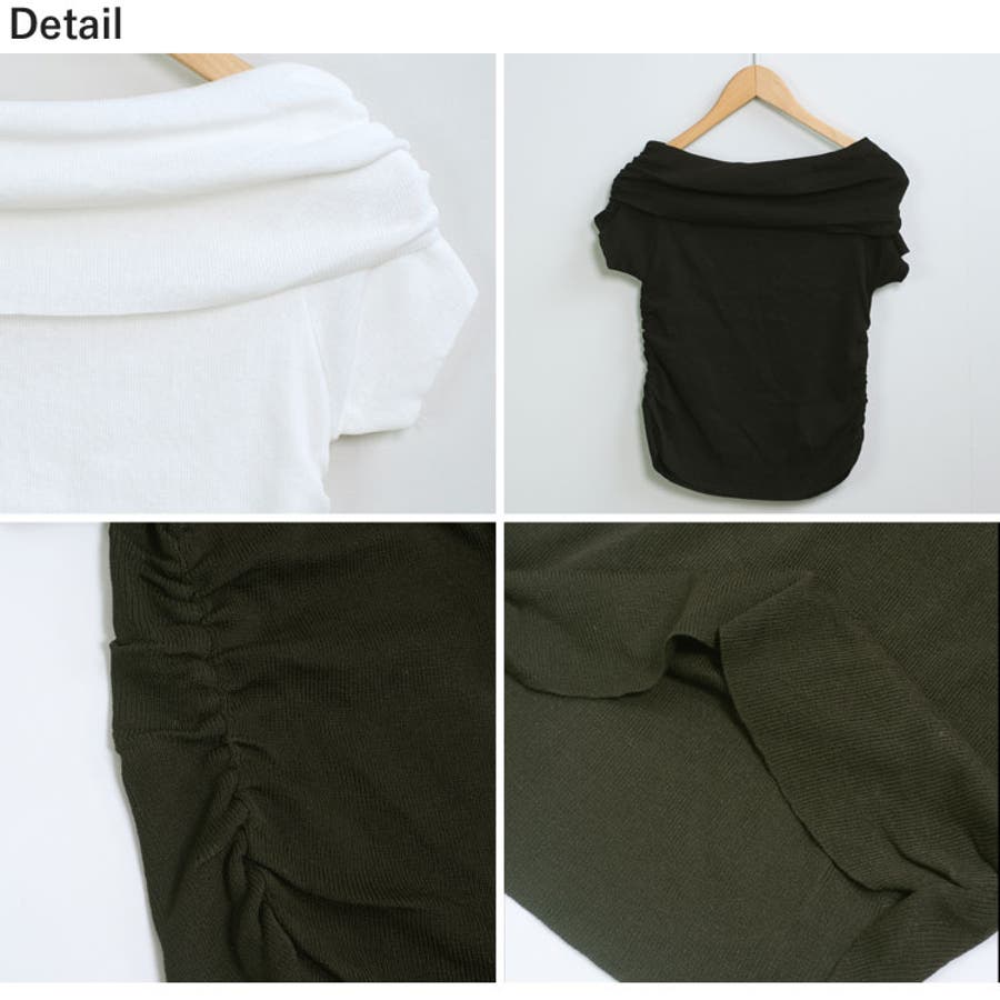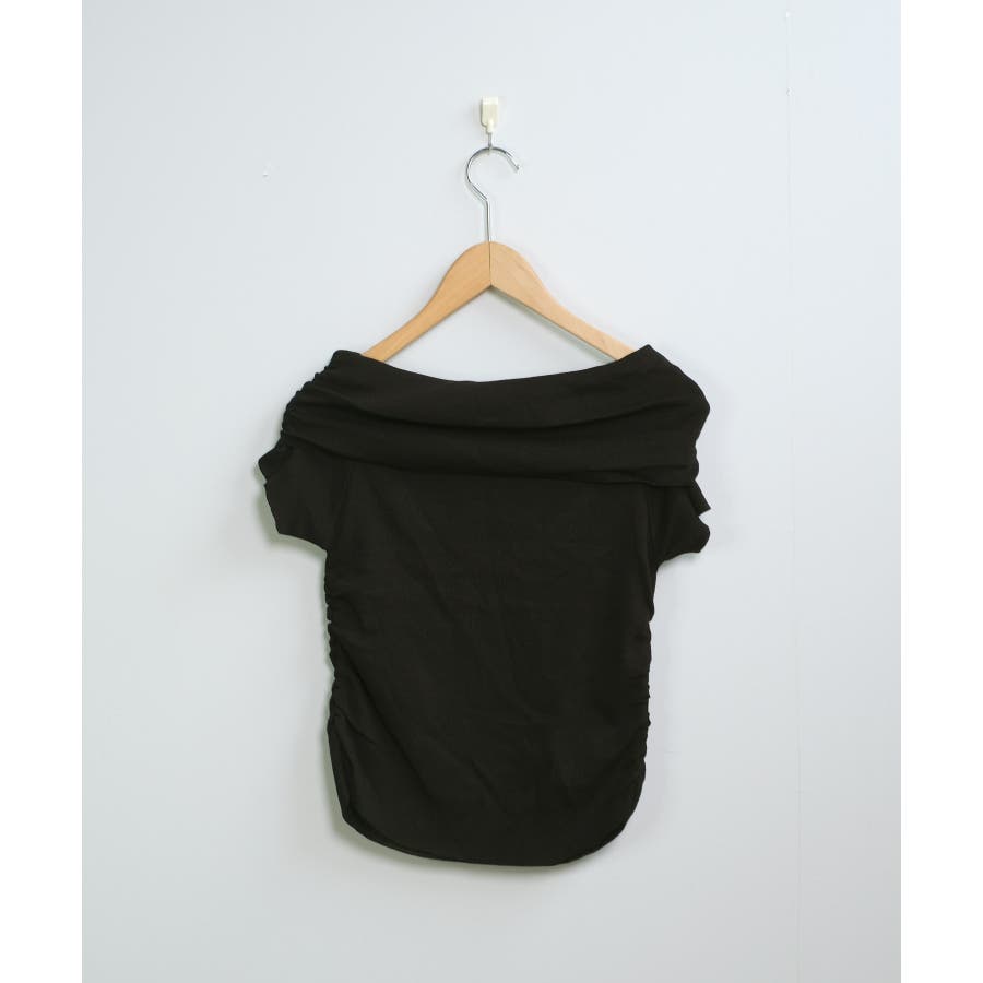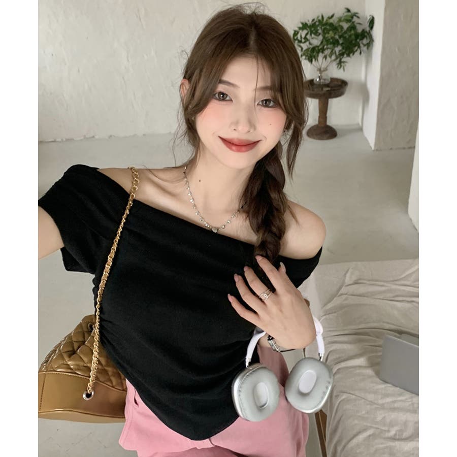 【ホワイト】春新作 サイドギャザー オフショルダー
