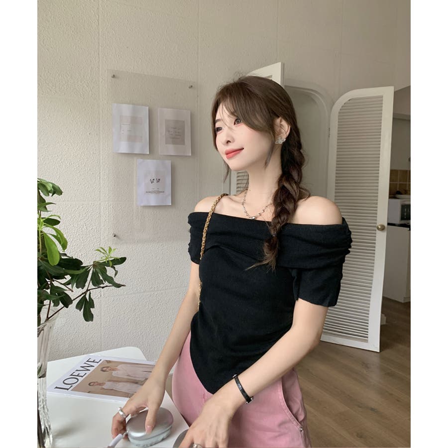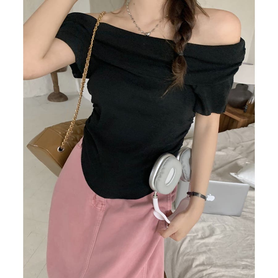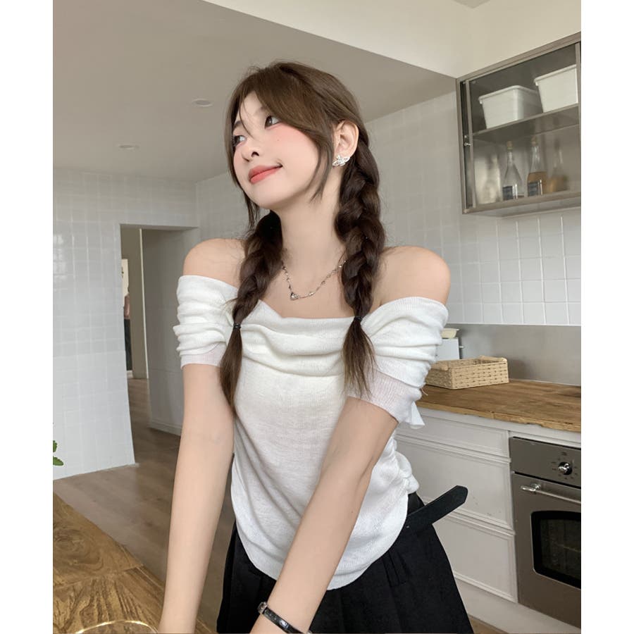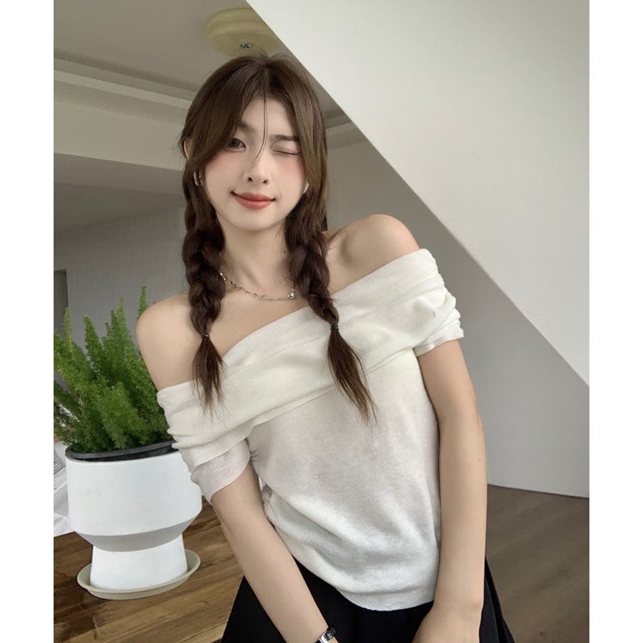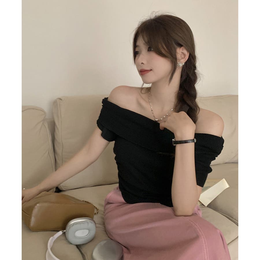 トレンドのオフショルダートップス。