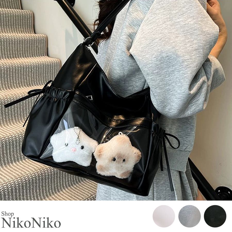 冬新作 サイドリボン クリアポケット付き