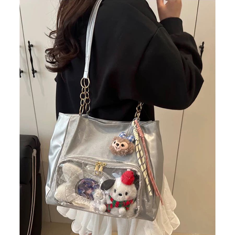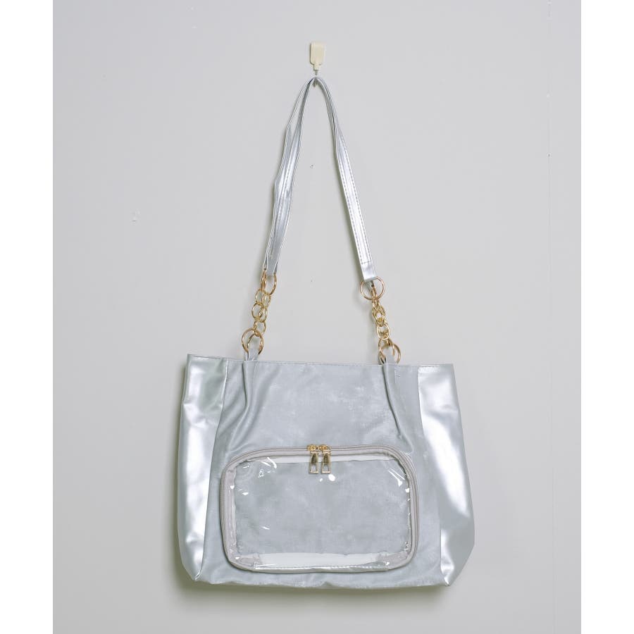 冬新作 チェーンハンドル クリアポケット付き